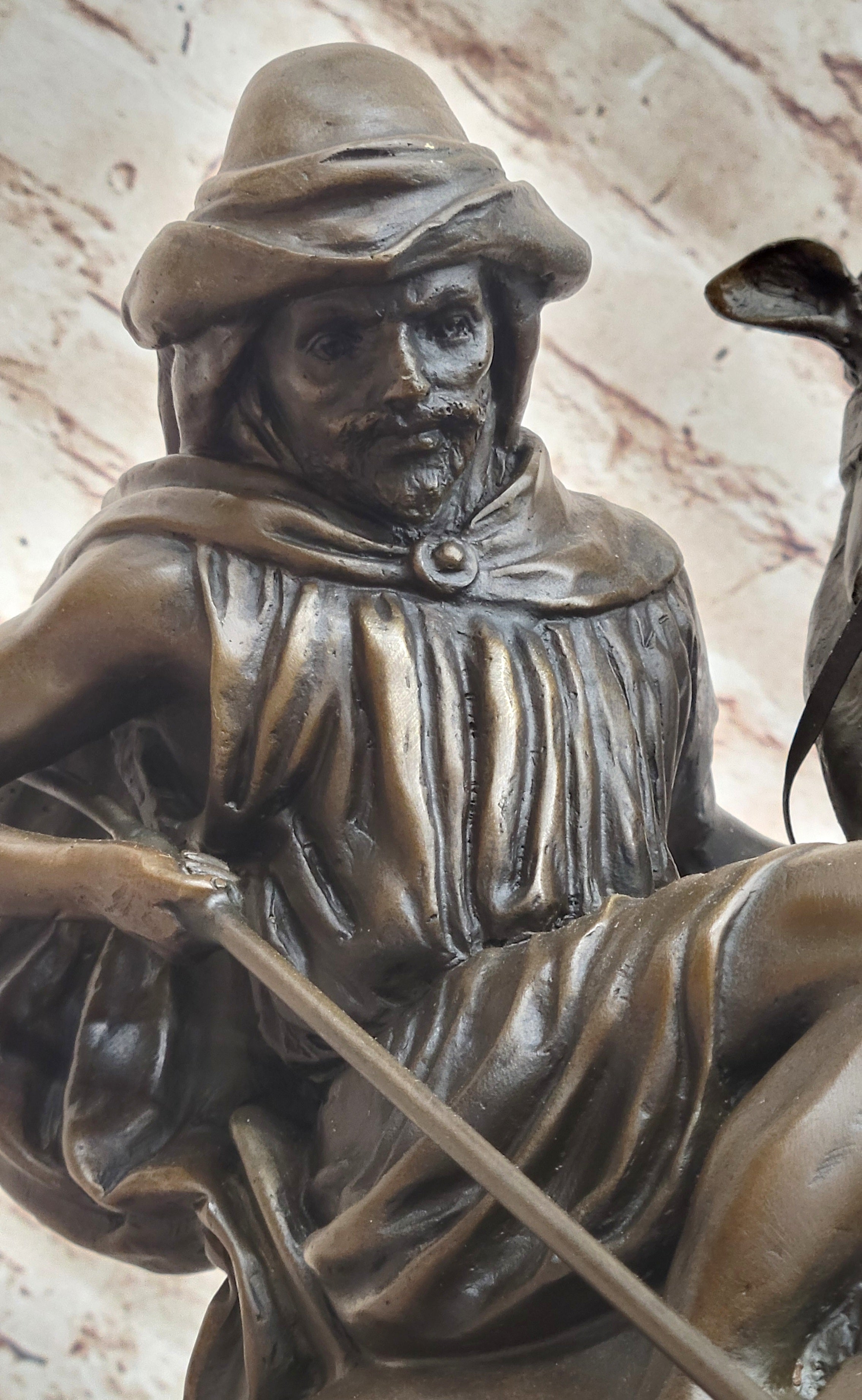 Handmade using the lost wax method, this sculpture embodies the artist's dedication to his craft, ensuring each detail is meticulously captured and preserved for generations to admire. Whether displayed as a focal point or nestled among other treasures, this masterpiece is sure to captivate viewers and spark conversation.Bronze Dimensions with Marble Base: Height 17" X Width 16"