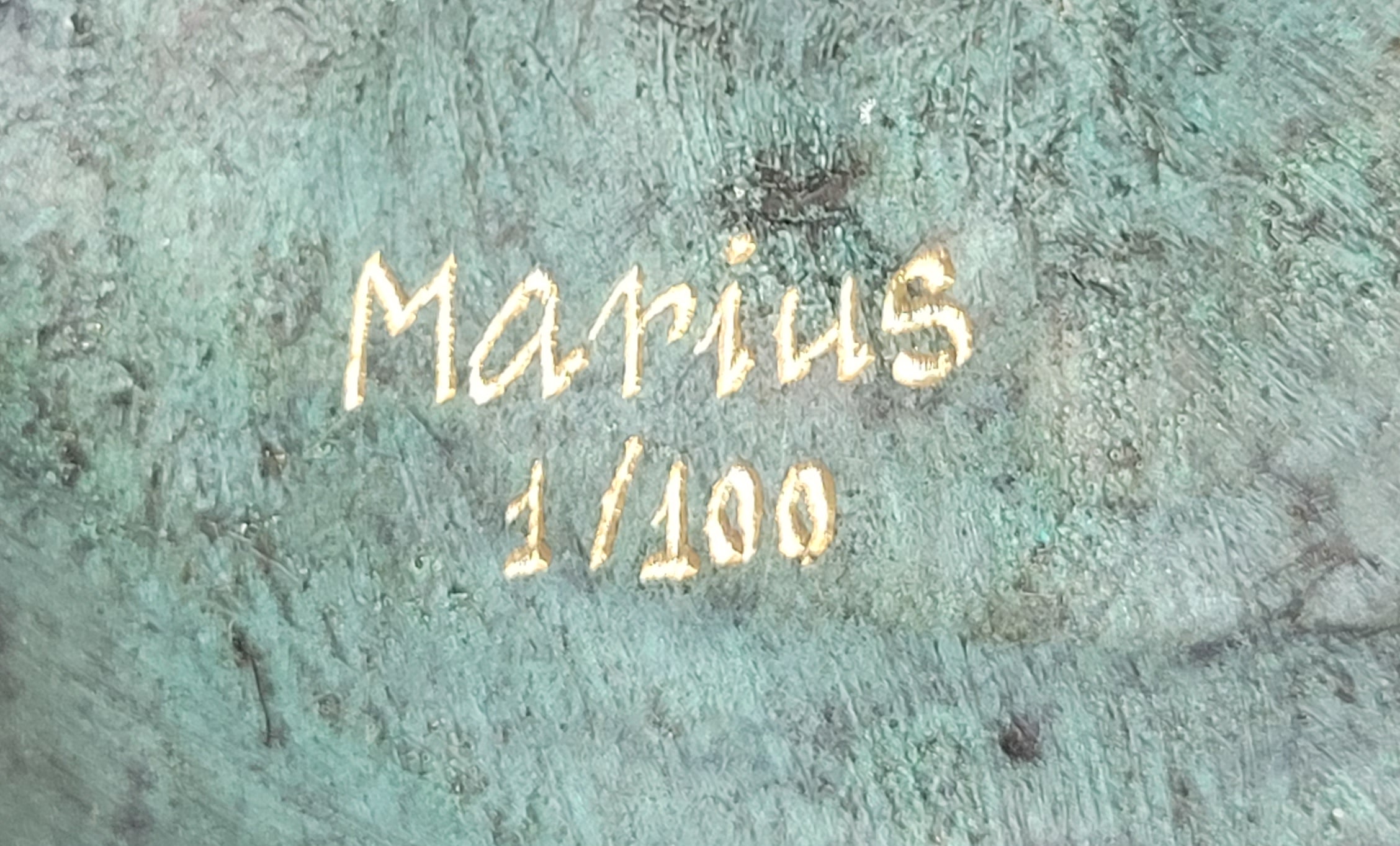 Crafted entirely from bronze, this sculpture is a testament to the artist Marius's skill and dedication to his craft. Employing the ancient and revered "Lost Wax Method," every intricate detail and nuance of the blue marlin's form is meticulously preserved. The sculpture is securely mounted on a substantial marble base, adding to its visual impact and stability. Each piece is individually signed and numbered by the artist Marius, ensuring its authenticity and uniqueness.
