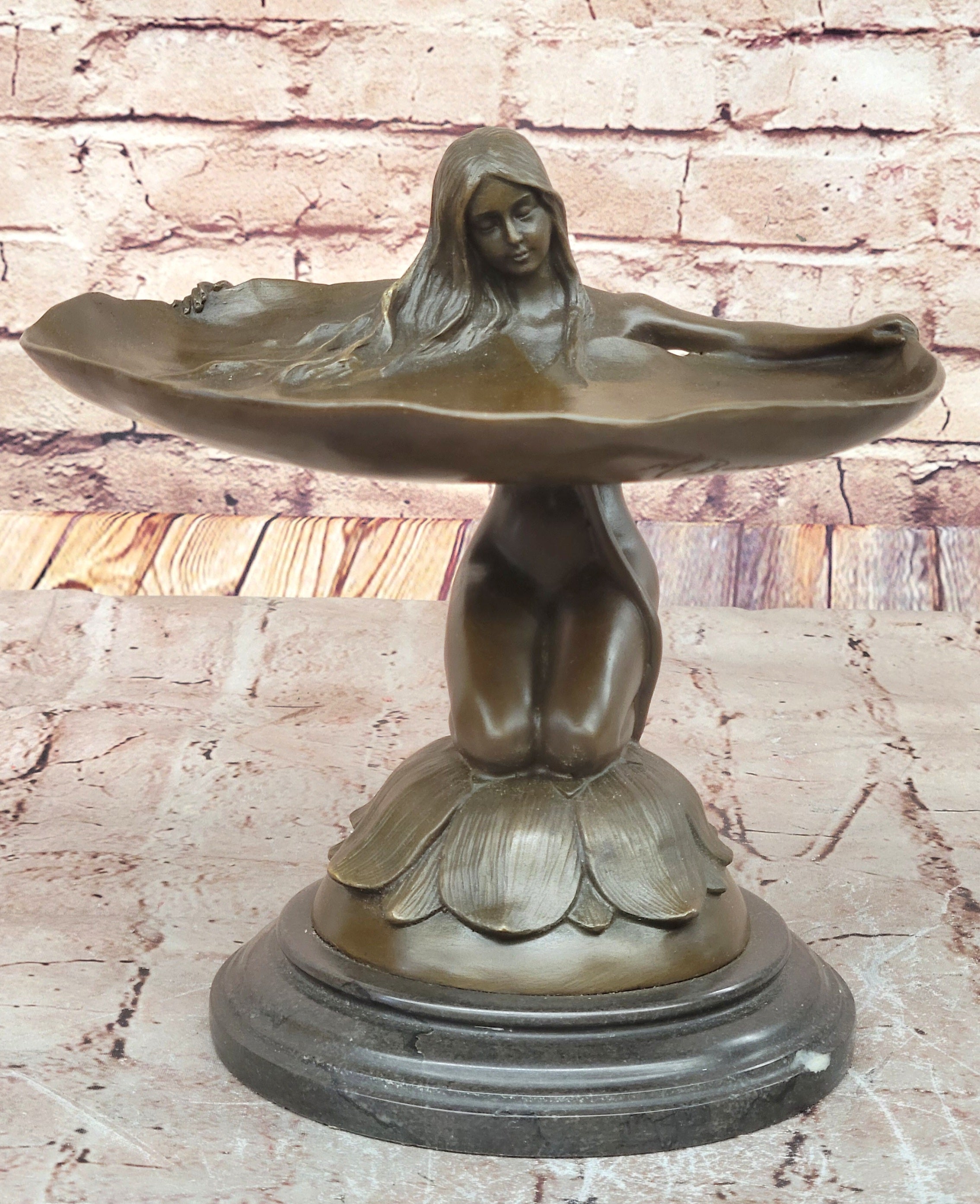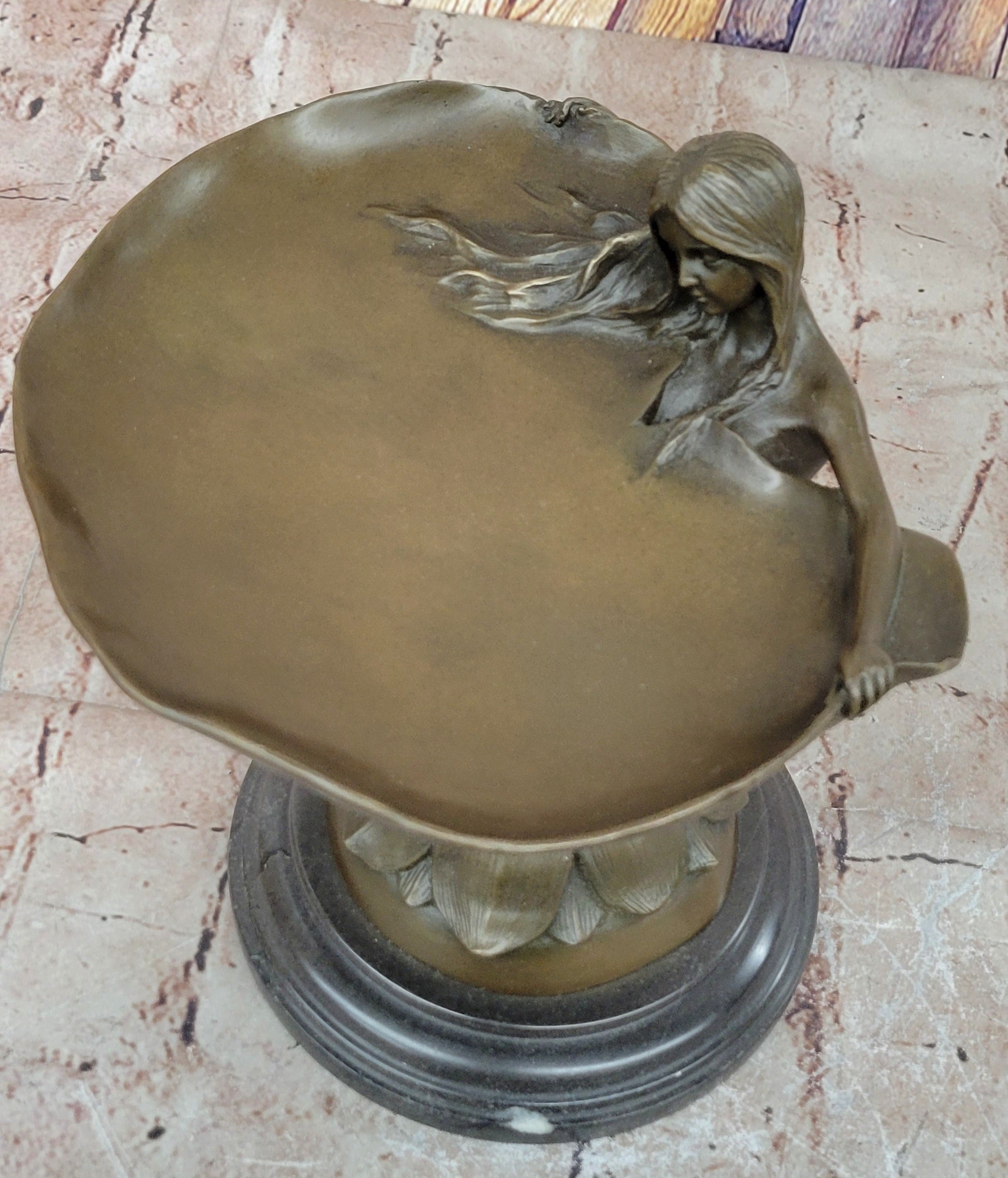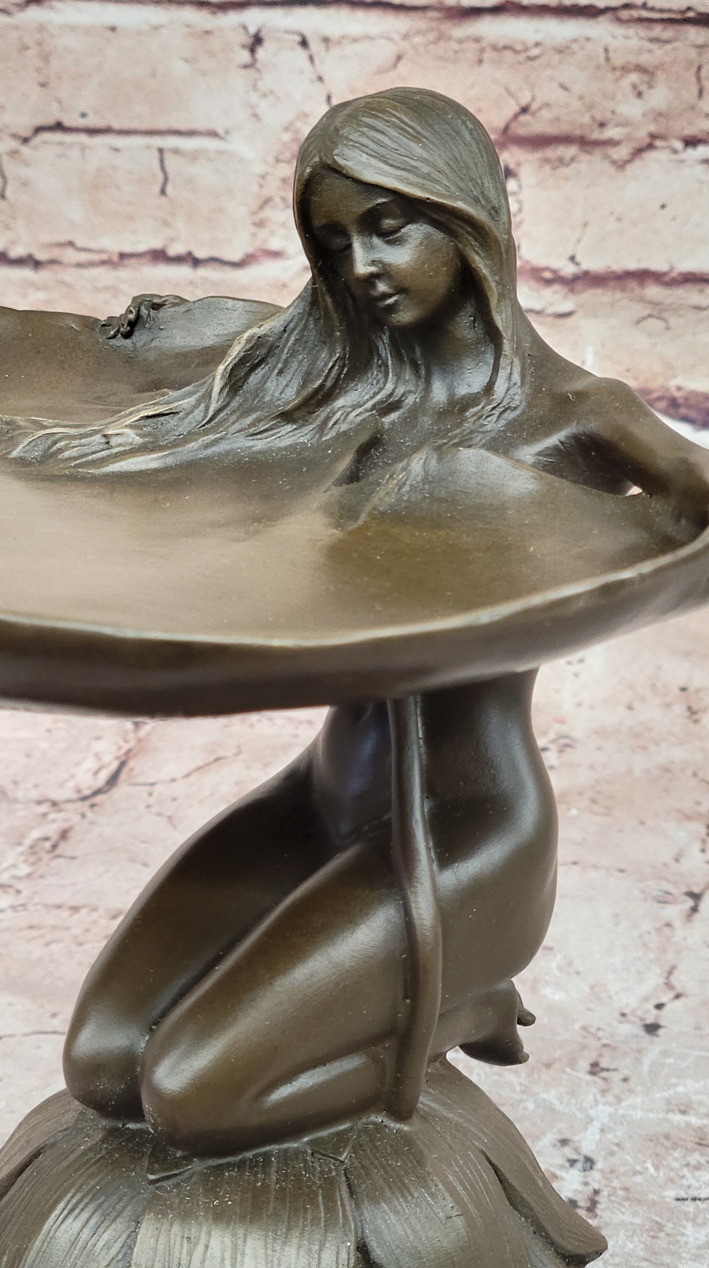 Maurice Bouval Art Nouveau Water Lilly Woman Bronze Business Card Tray