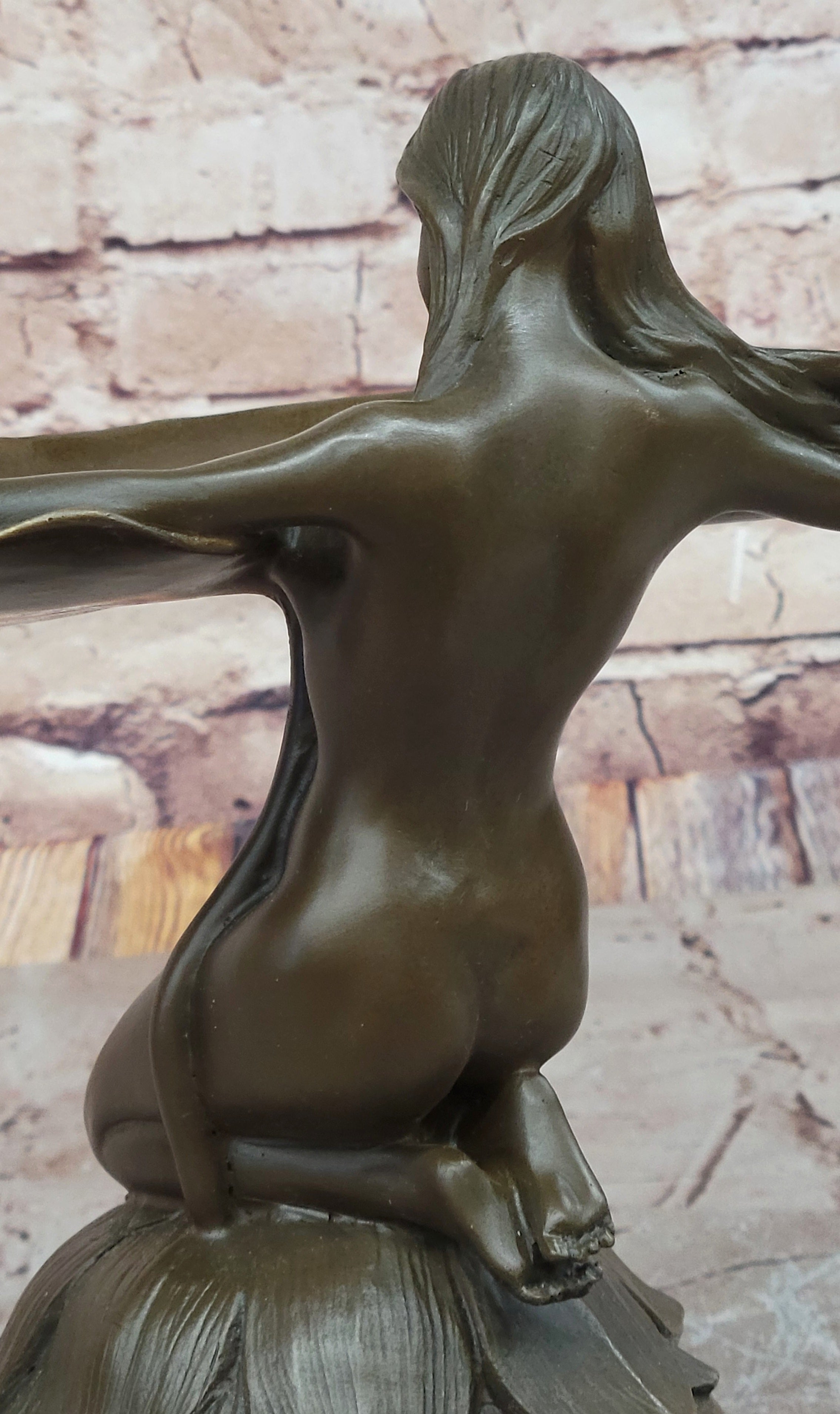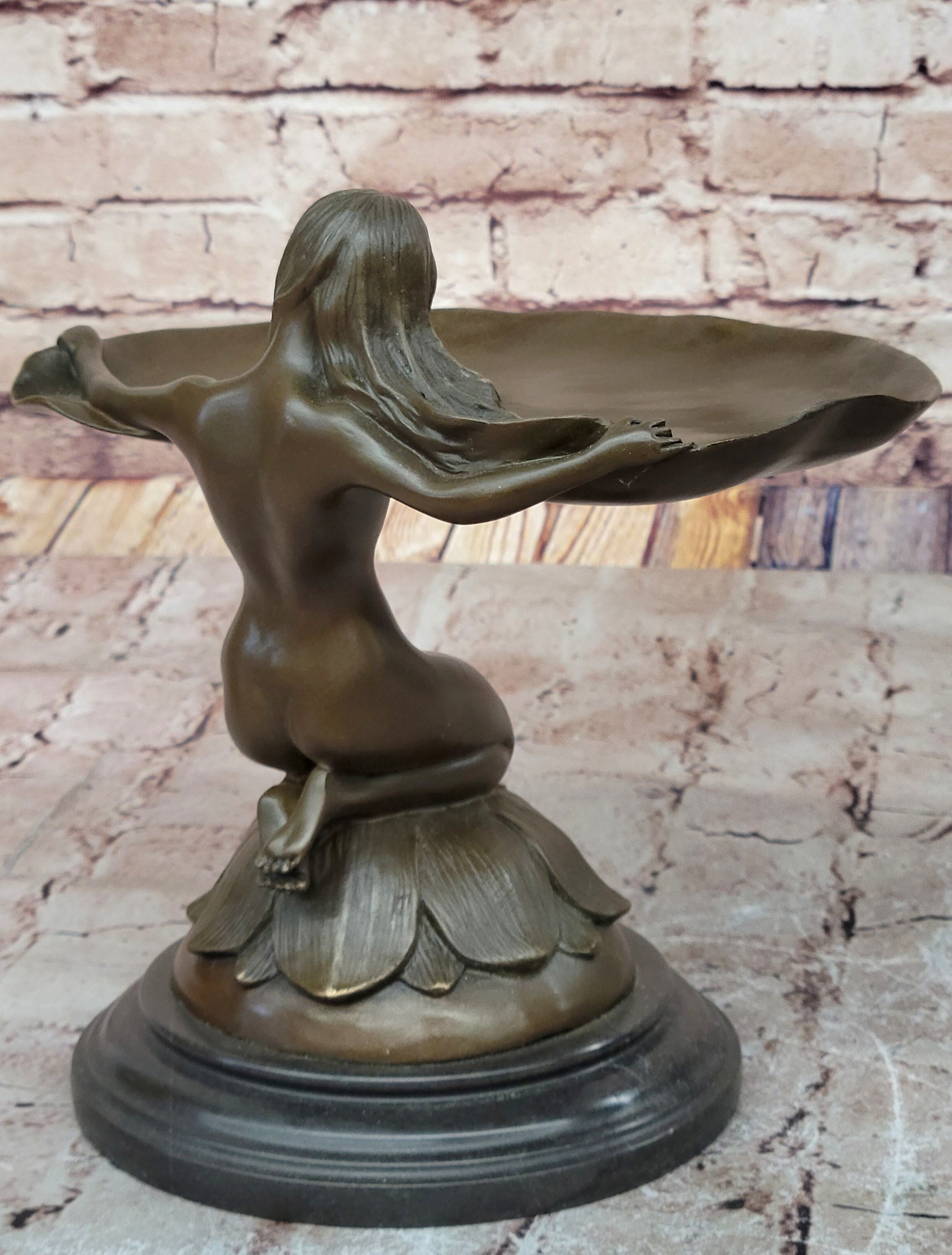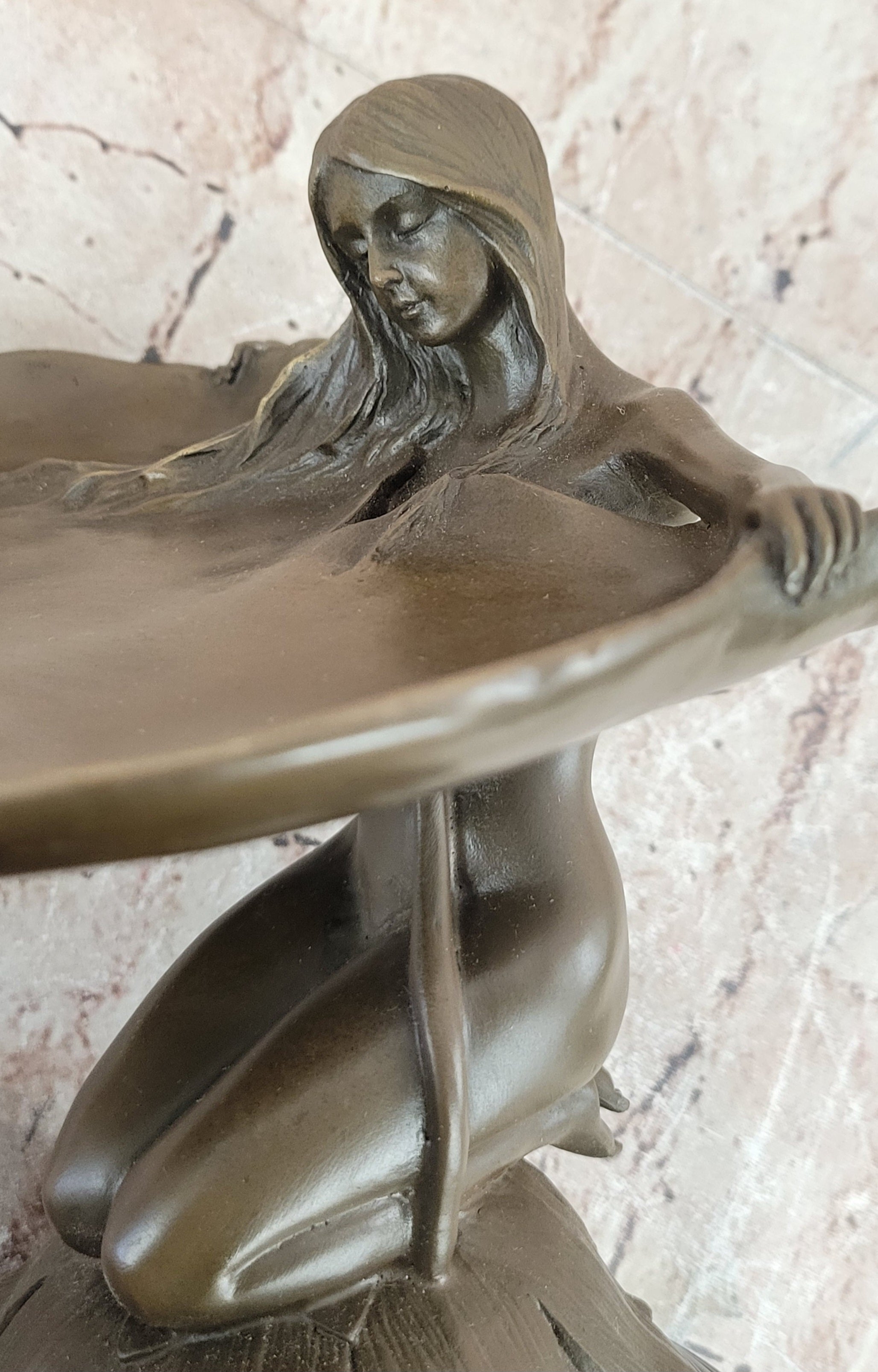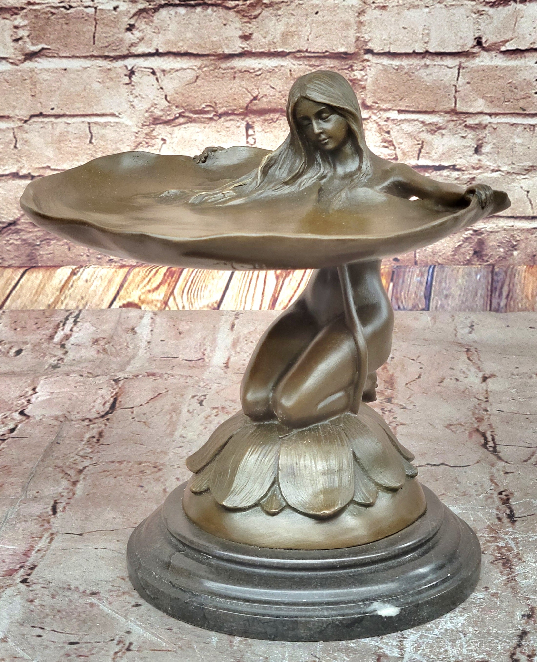 Maurice Bouval Art Nouveau Water Lilly Woman Bronze Business Card Tray