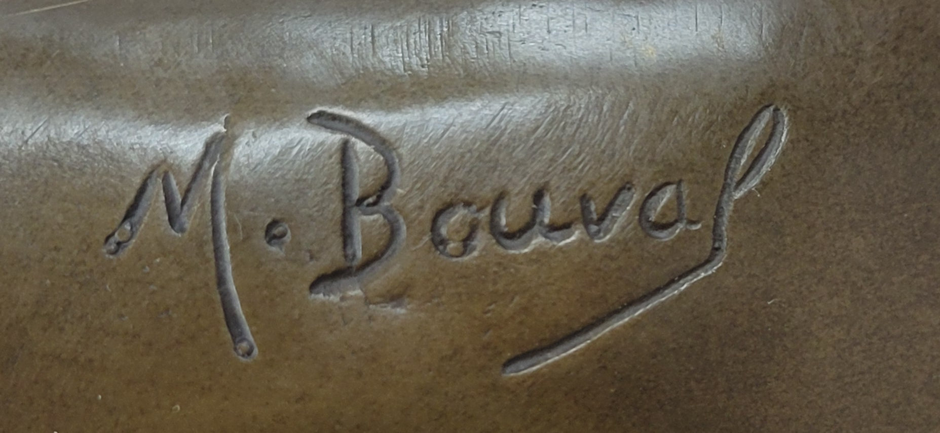 Perfect for an office, reception area, or as a thoughtful gift for art lovers, this handmade bronze business card tray seamlessly combines utility with timeless artistry. Whether used for its intended purpose or displayed as a decorative accent, it serves as a tribute to Bouval’s mastery and the enduring beauty of the Art Nouveau style.Bronze Dimensions with Marble Base:9" X Width 8.5"
