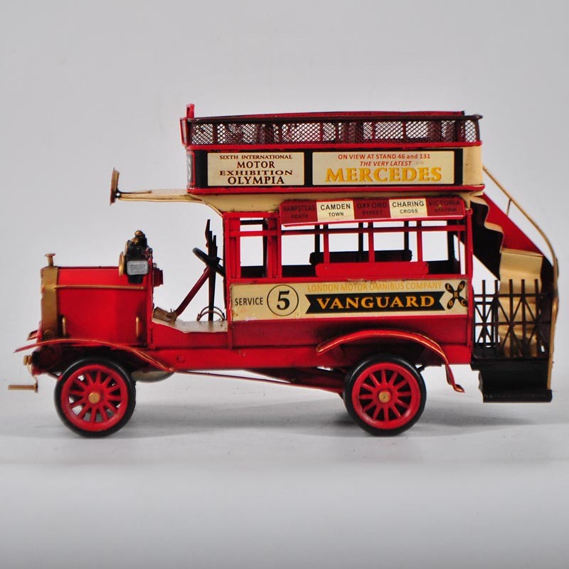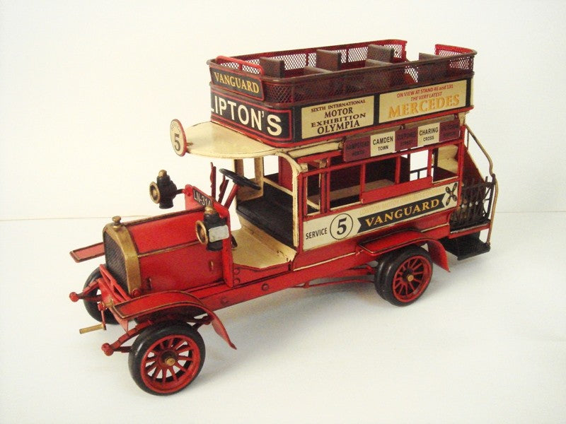 Decorate for any table, desk, or shelf in sporty fashion with Our Rustic Mercedes Benz Bus. Featuring a rustic iron frame, this charming vintage Classic Car includes a fine detail's. The Red and Beige metal interior are finished in natural colors. For more than 20 years, European Finery has been providing high quality sculpture, accessories, and decor for any room for its customers' homes. Based in New York area, We grown to become one of the largest importers and wholesalers of home decor and hand made sculptures in the country. Whether you're looking for accent Sculpture, wall decor, vintage Toys, or just about any outdoor lifestyle sculpture , We Became a proven and trustworthy name that has become synonymous with superiority.2. Overall measurement (approx. H X W) : 8 x 13 Inches