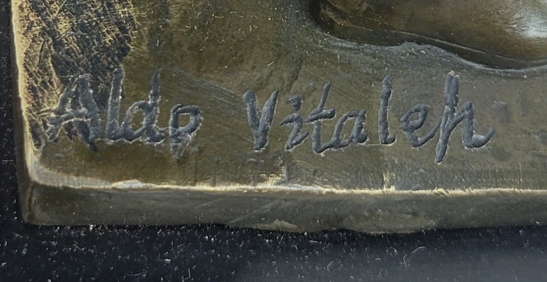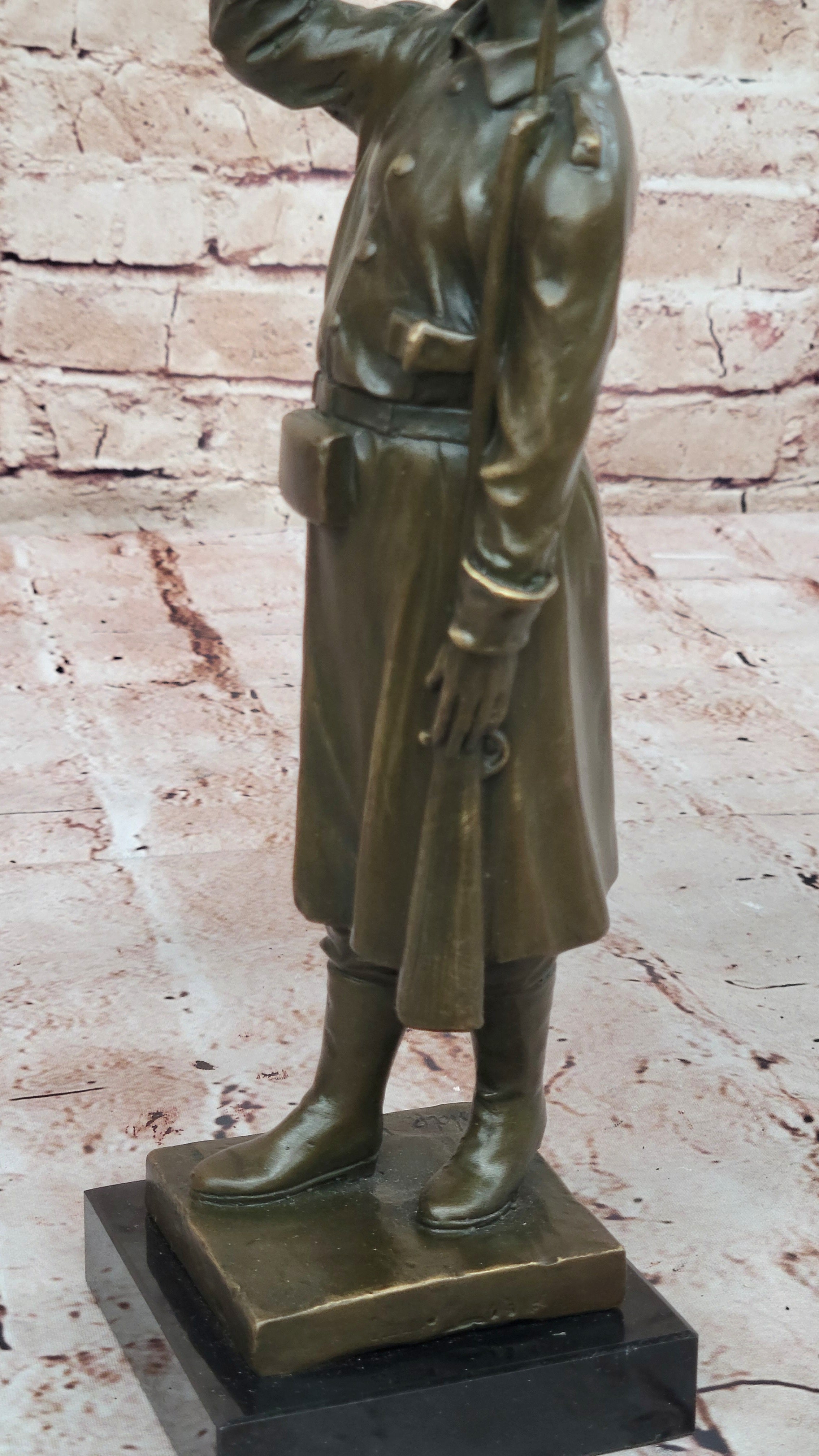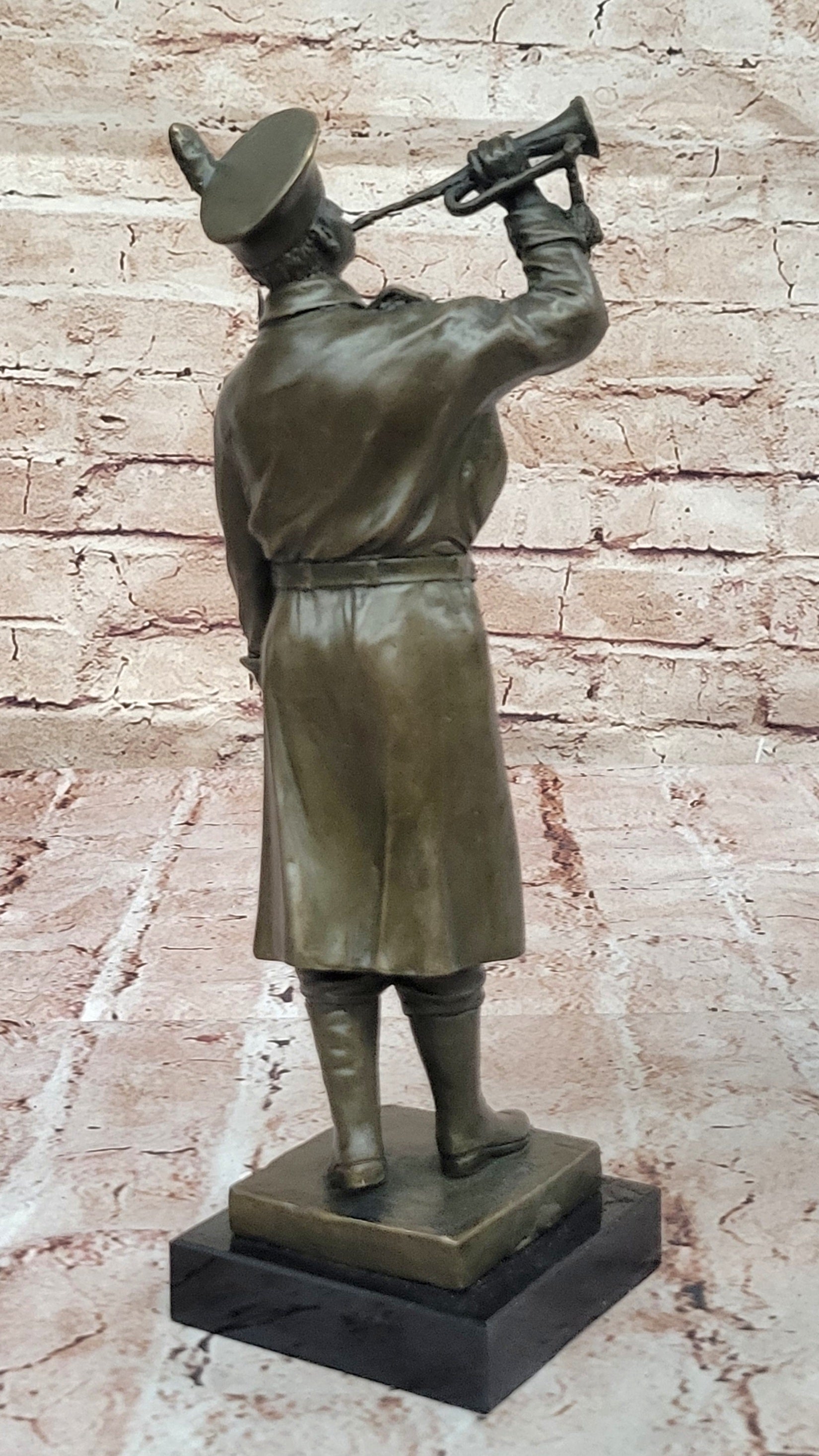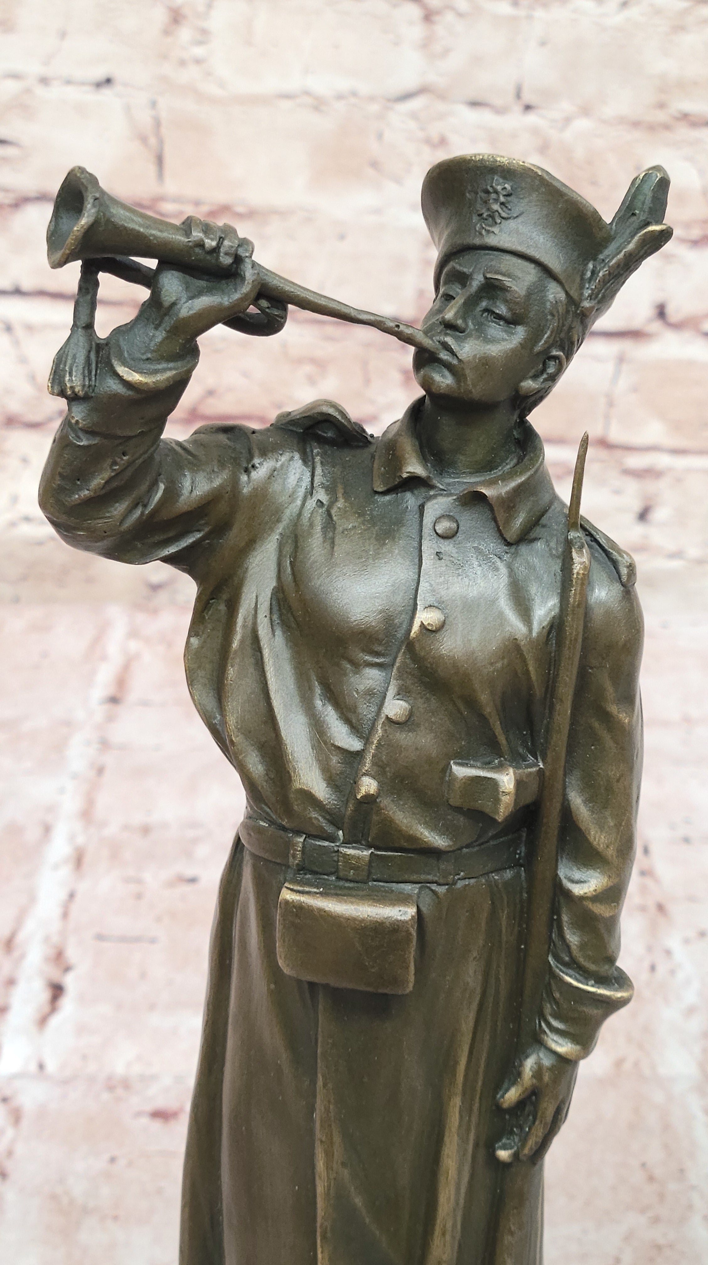 Military Soldier with Bugle Bronze Statue on Marble Base - Vintage Army Trumpeter Figurine