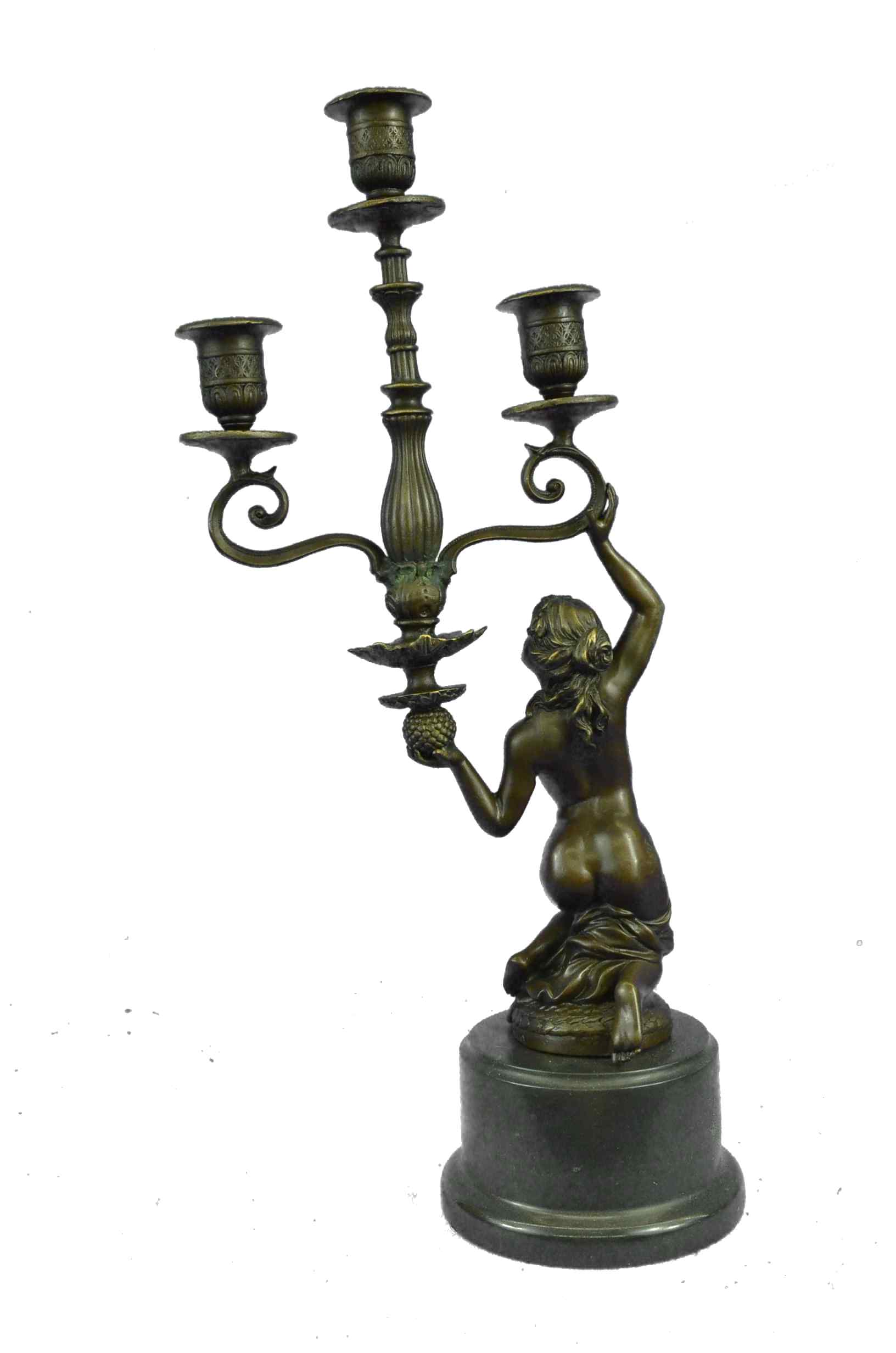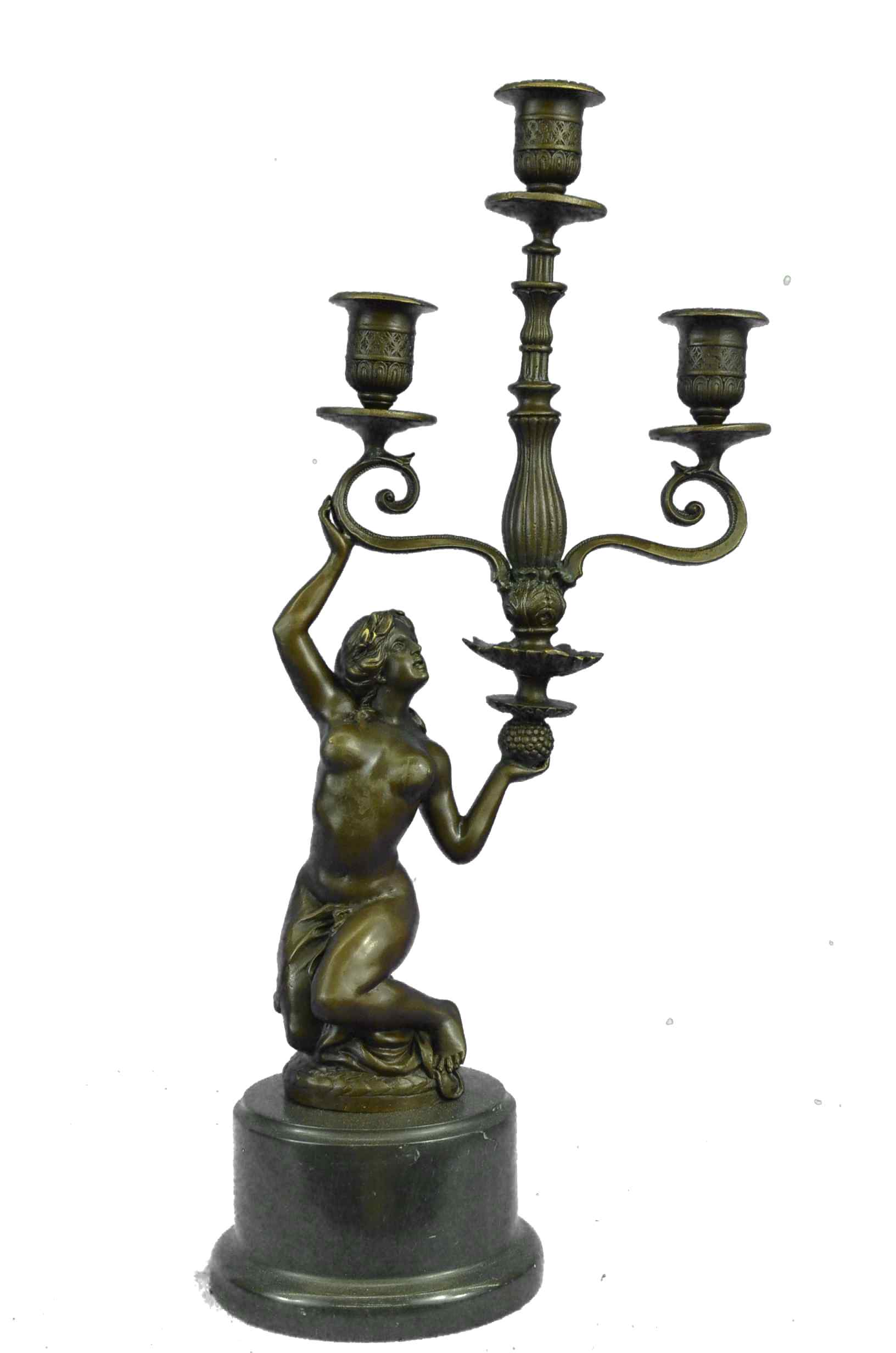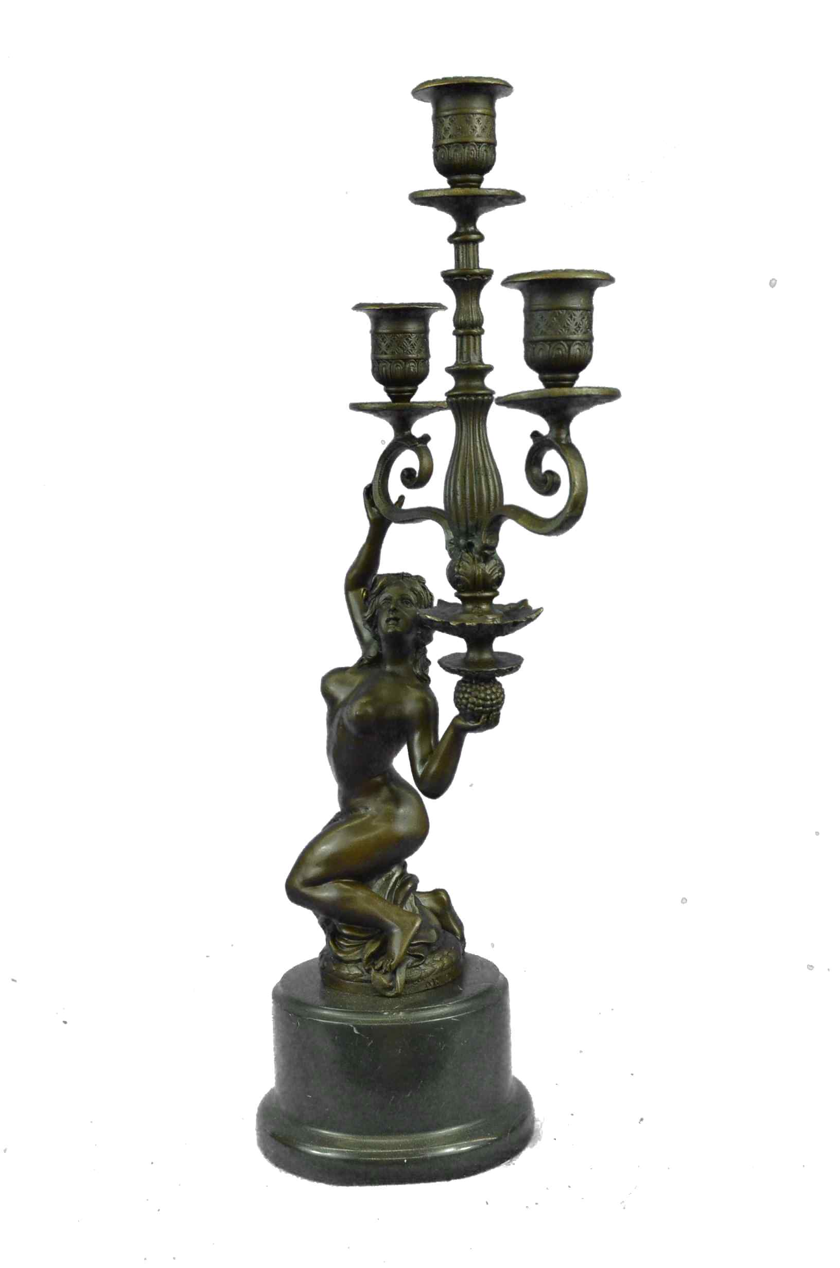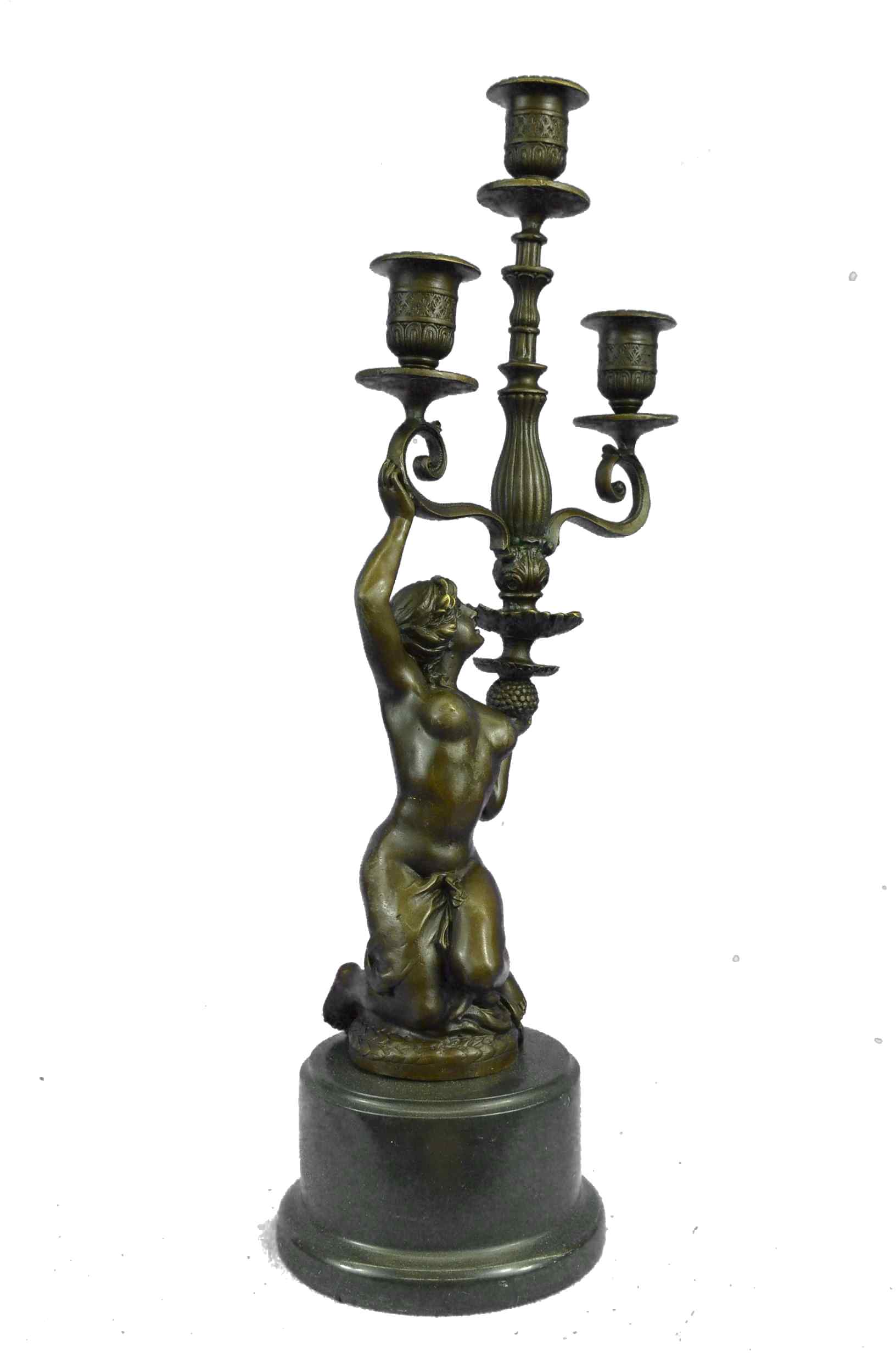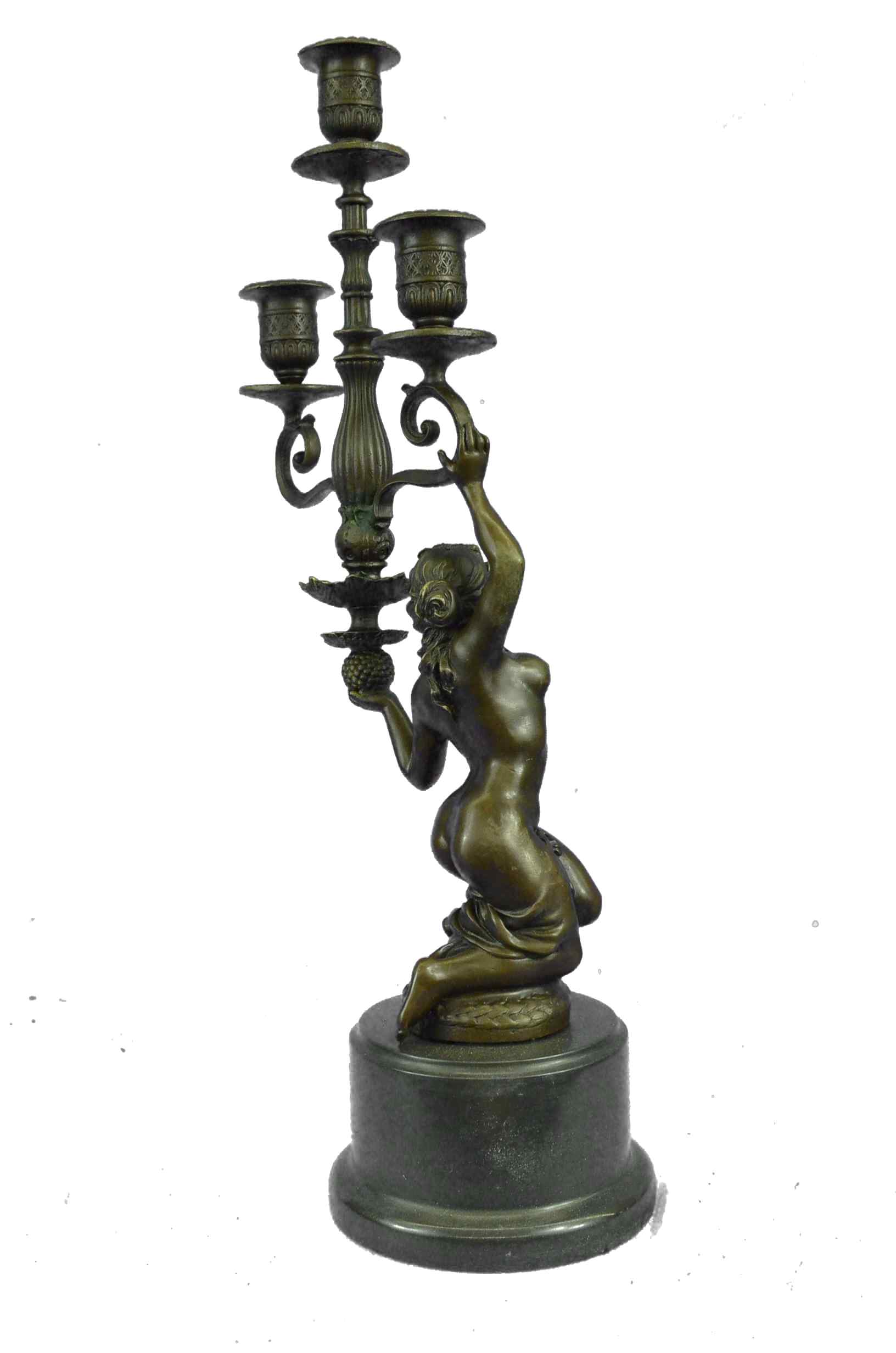 MILO EROTIC NUDE NYMPH BRONZE CANDLE HOLDER VINTAGE HOT CAST CLASSIC ARTWORK ART