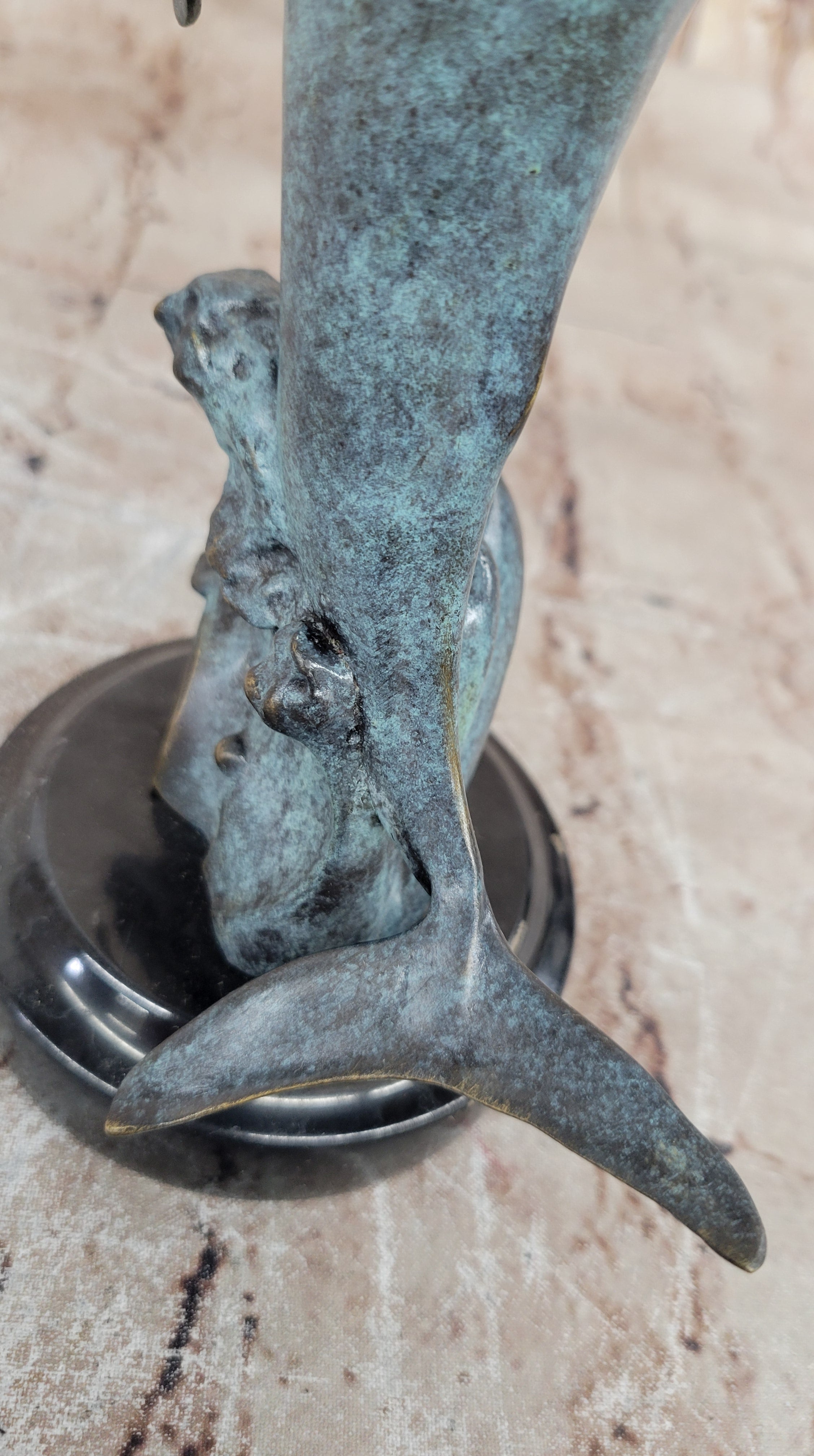 This signed original artwork is perfect for marine life enthusiasts and those who appreciate fine bronze sculptures. Ideal for a living room, office, or study, this timeless piece serves as a beautiful tribute to the majesty of the natural world.Bronze Dimensions with Marble Base: Height 9" X Width 6.5"