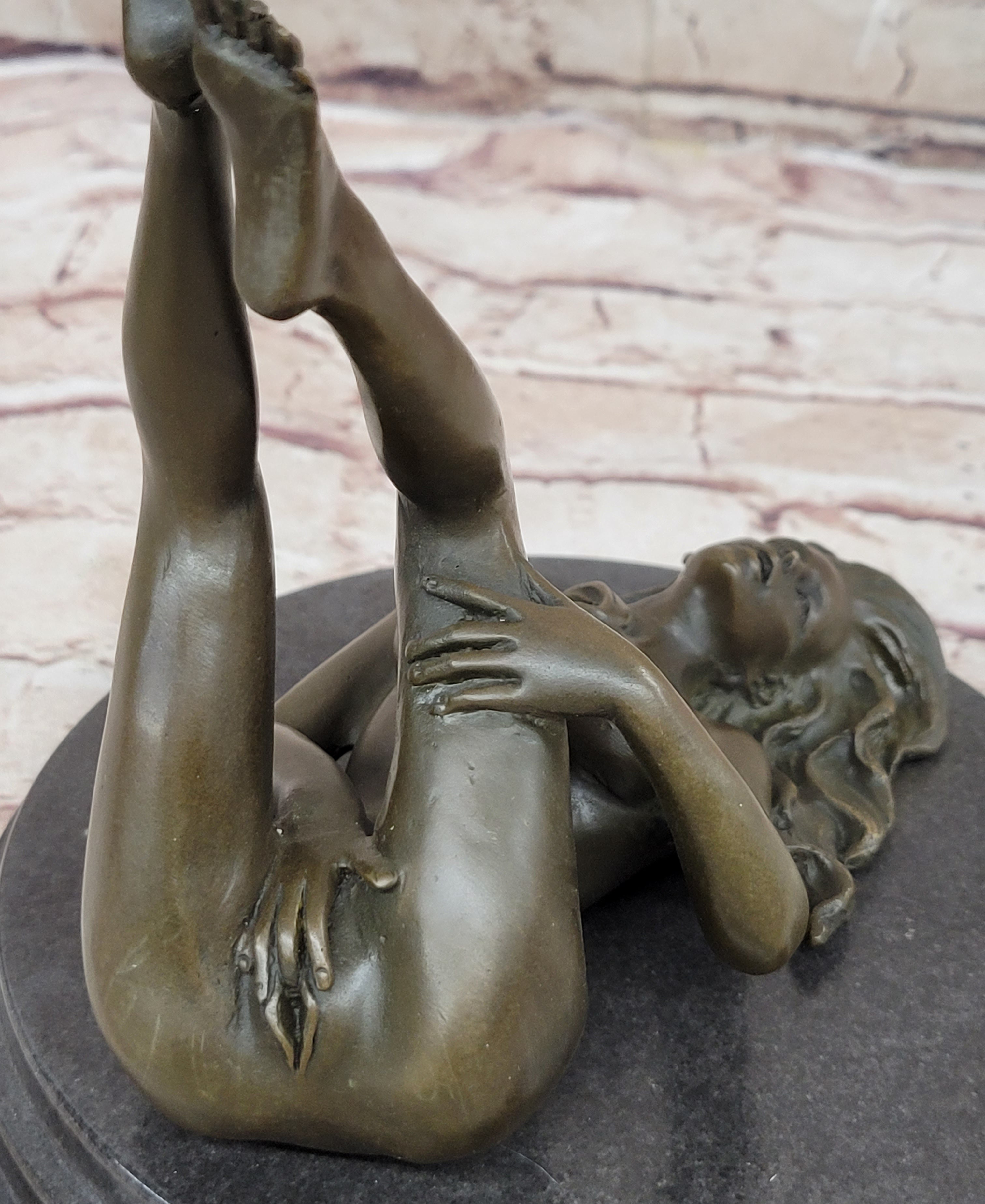 Nude Erotic Figurine Girl Legs in Air Signed Original Bronze Sculpture Statue Mavchi 8" x 8"
