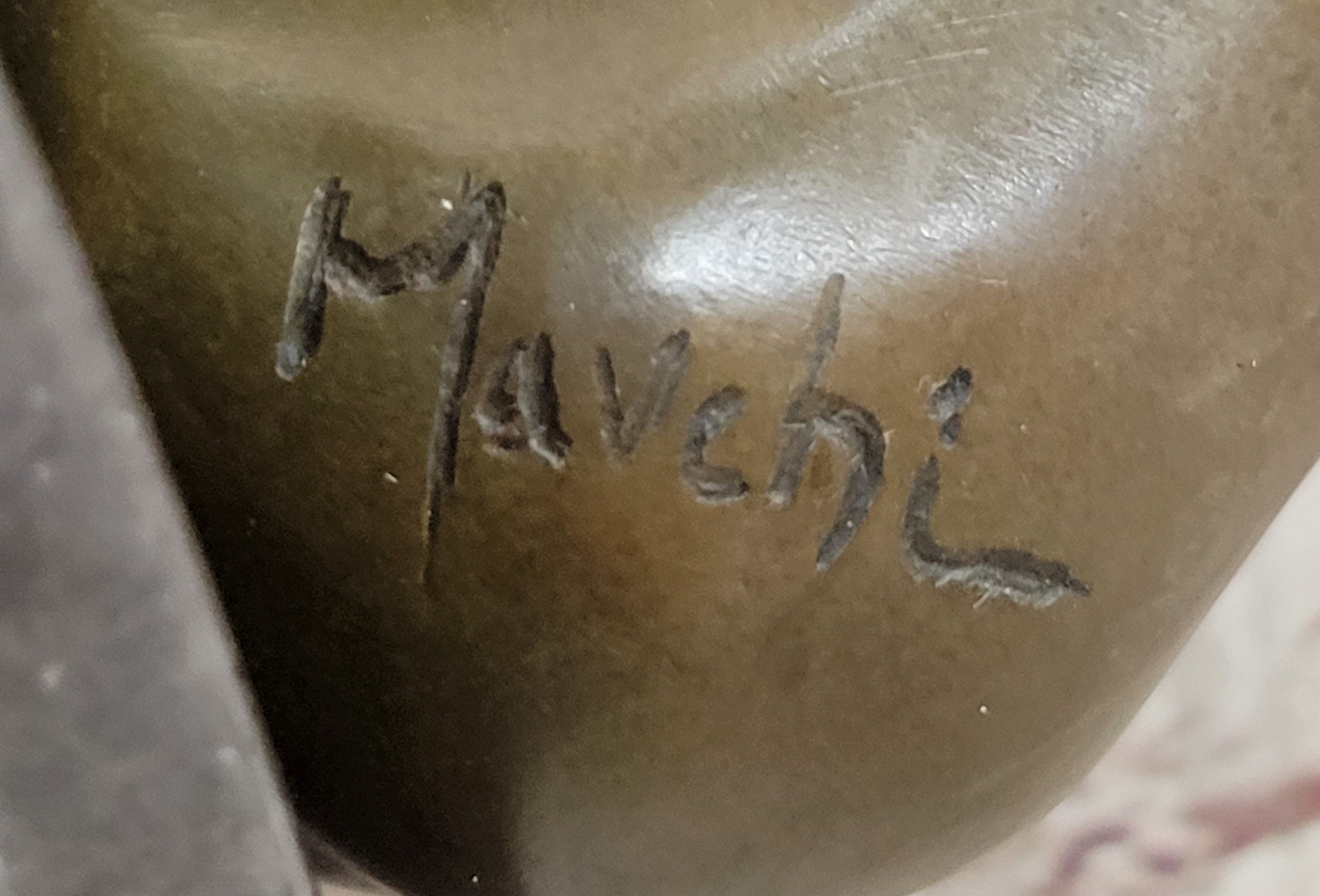 Crafted using the early method of lost-wax casting, this sculpture exemplifies the rich tradition of bronze artistry. The brown patina finish not only adds depth and character to the piece but also serves to preserve its allure for generations to come. Resting gracefully on a black marble base, this sculpture proudly bears the signature of the artist Mavchi, confirming its authenticity and artistic value.