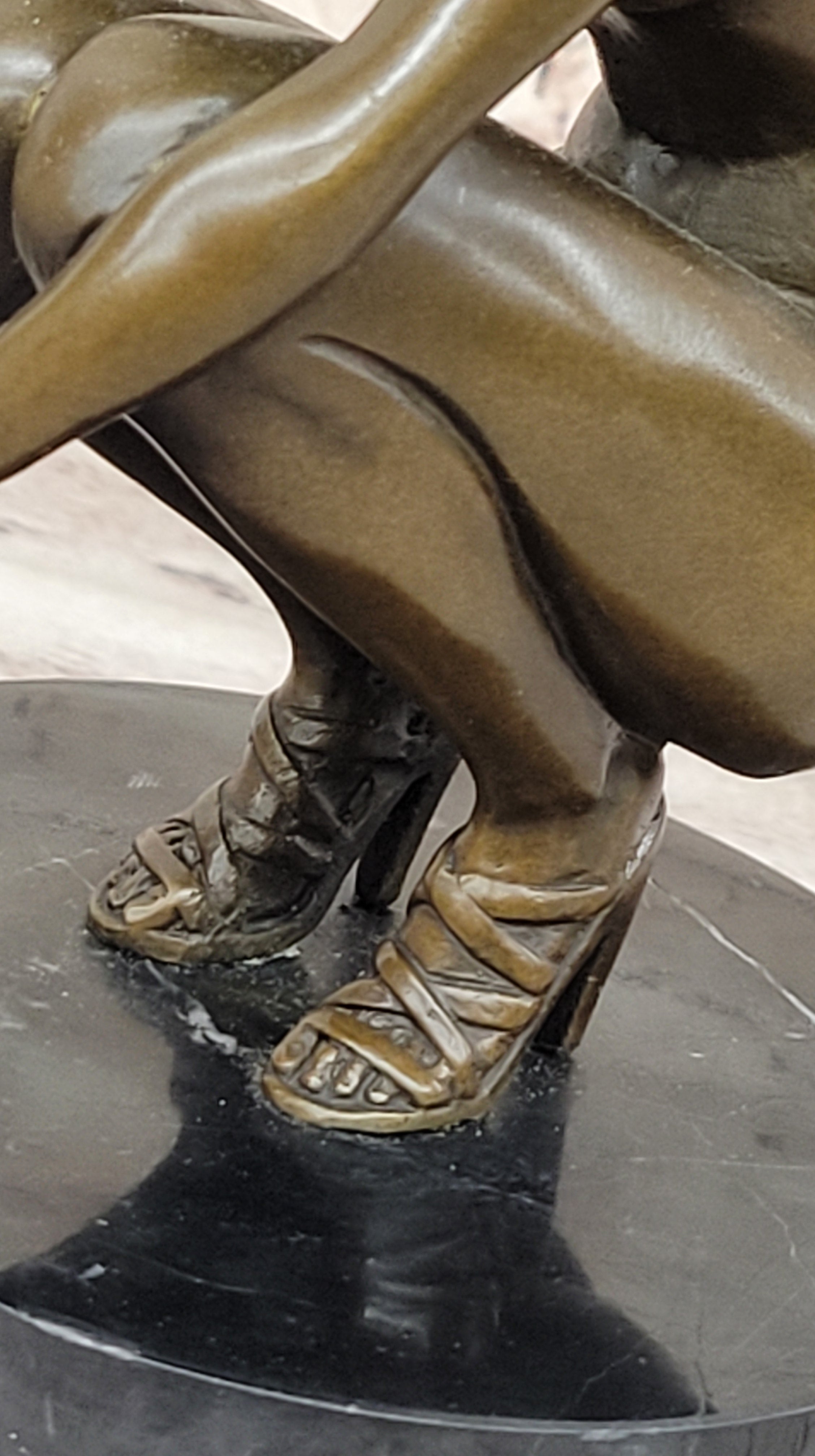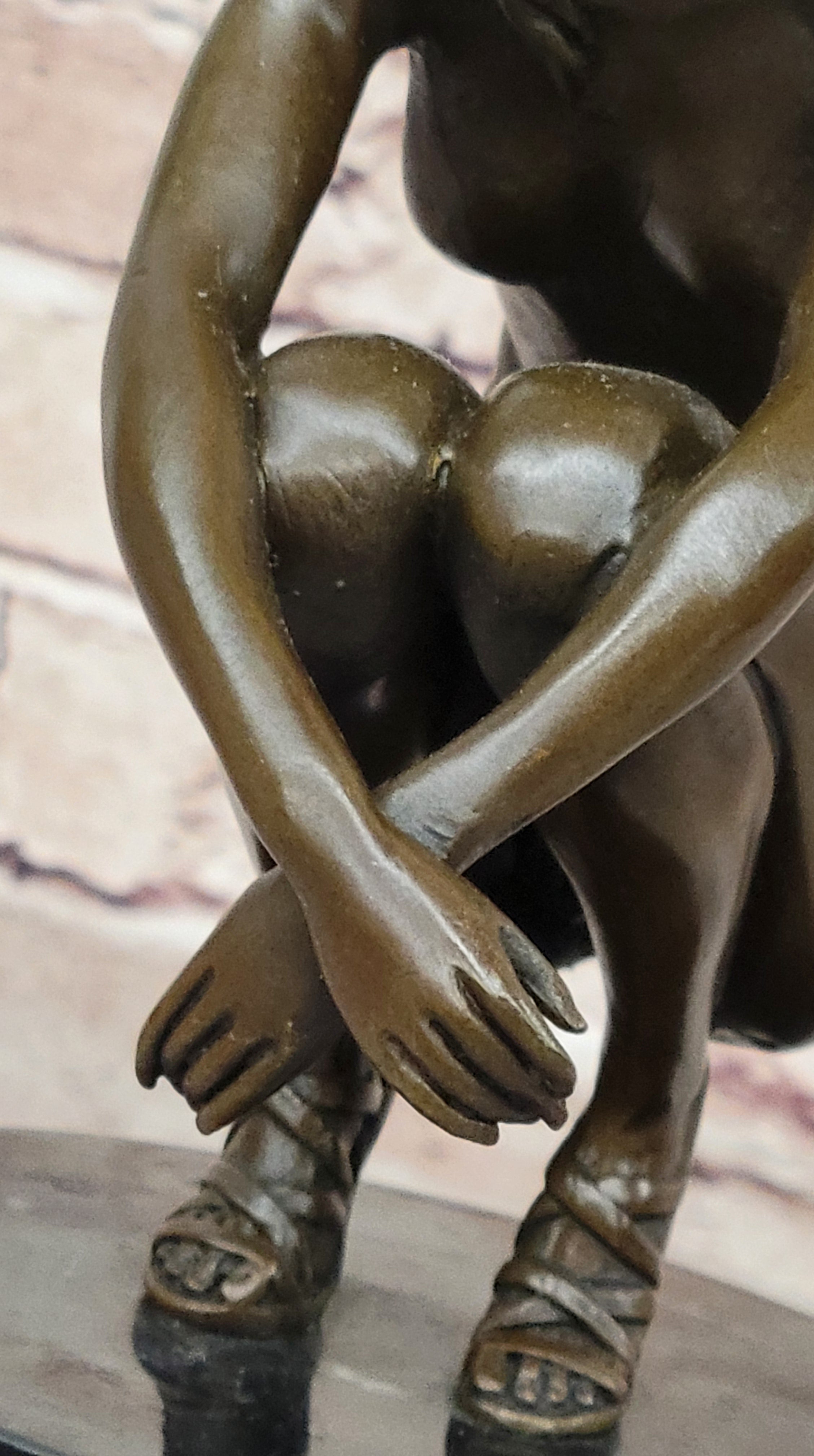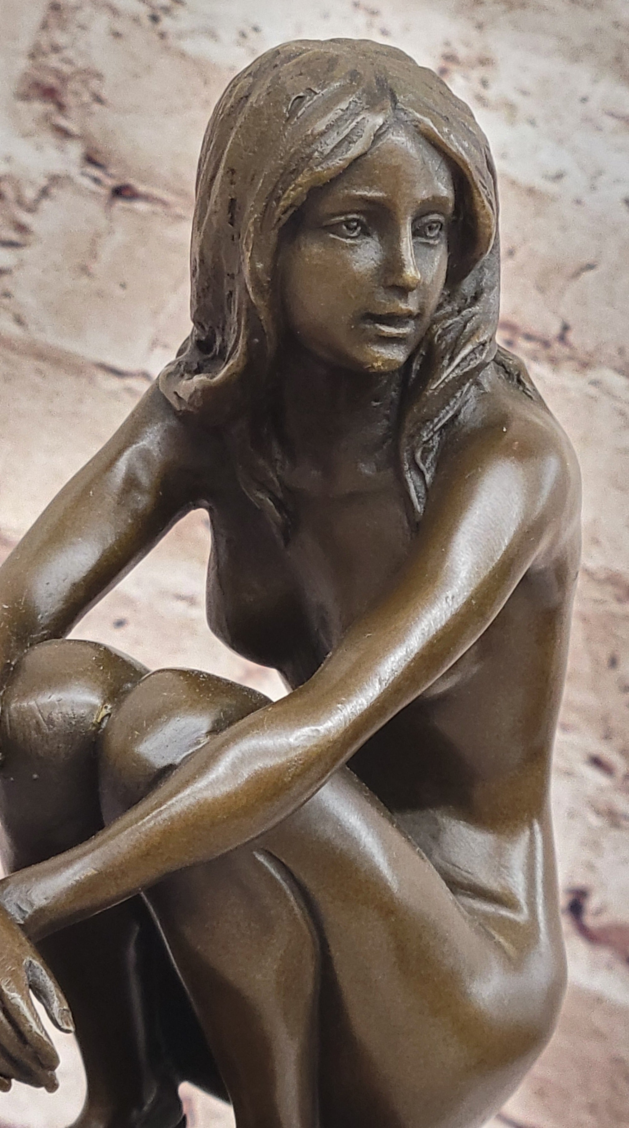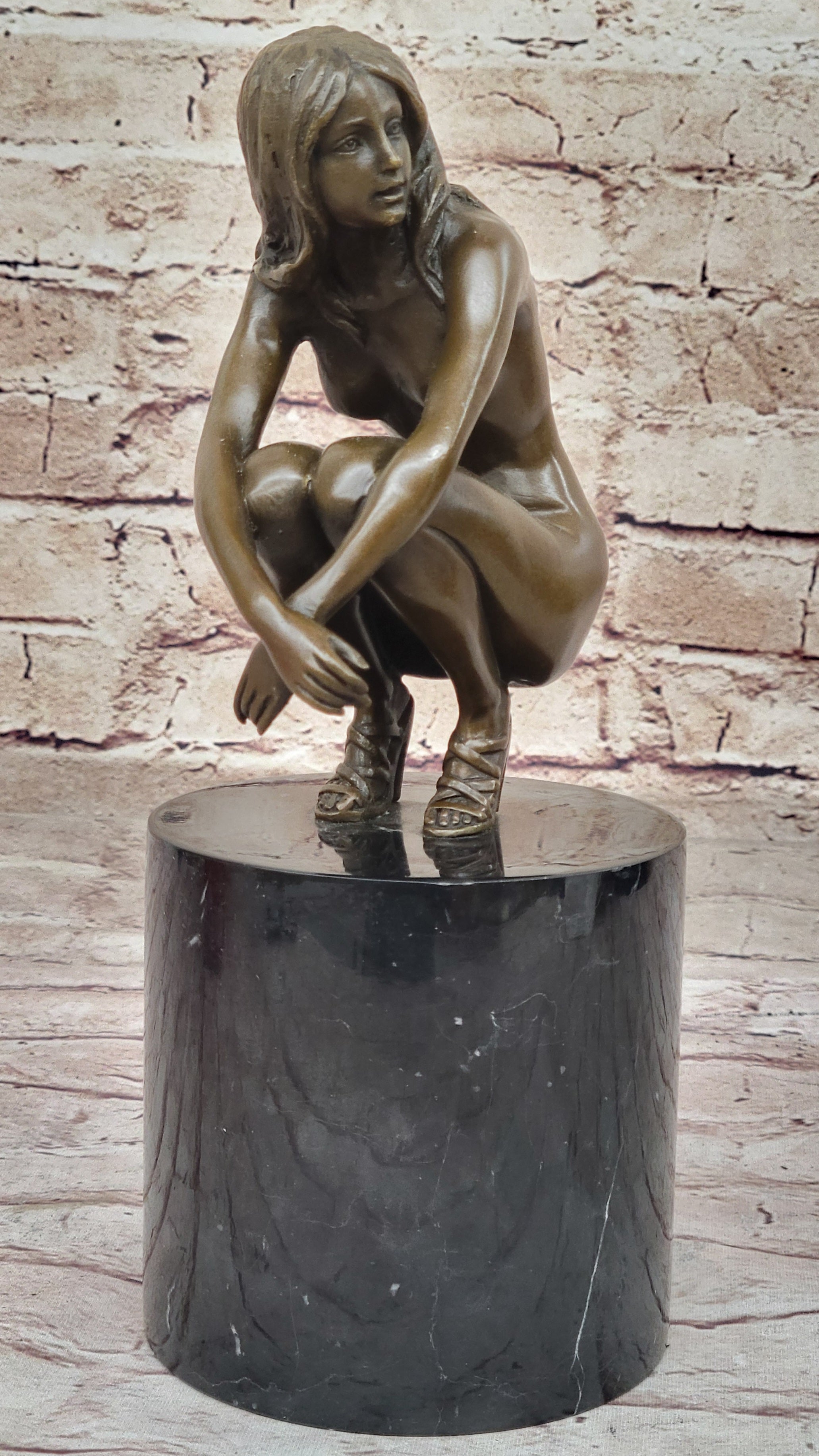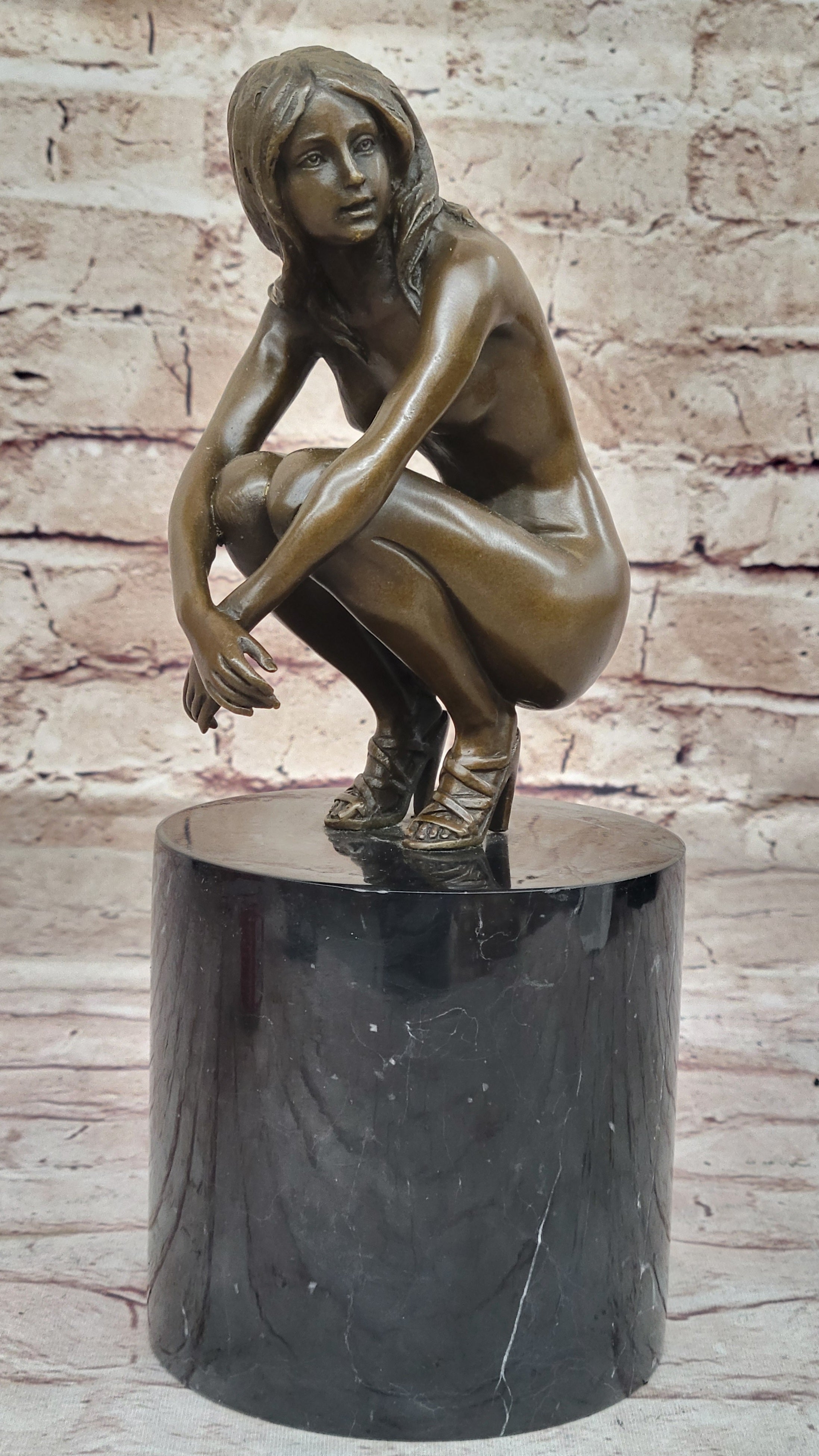 Nude Crouching Sexy Girl Hot Cast Bronze Sculpture by Milo on Marble Base