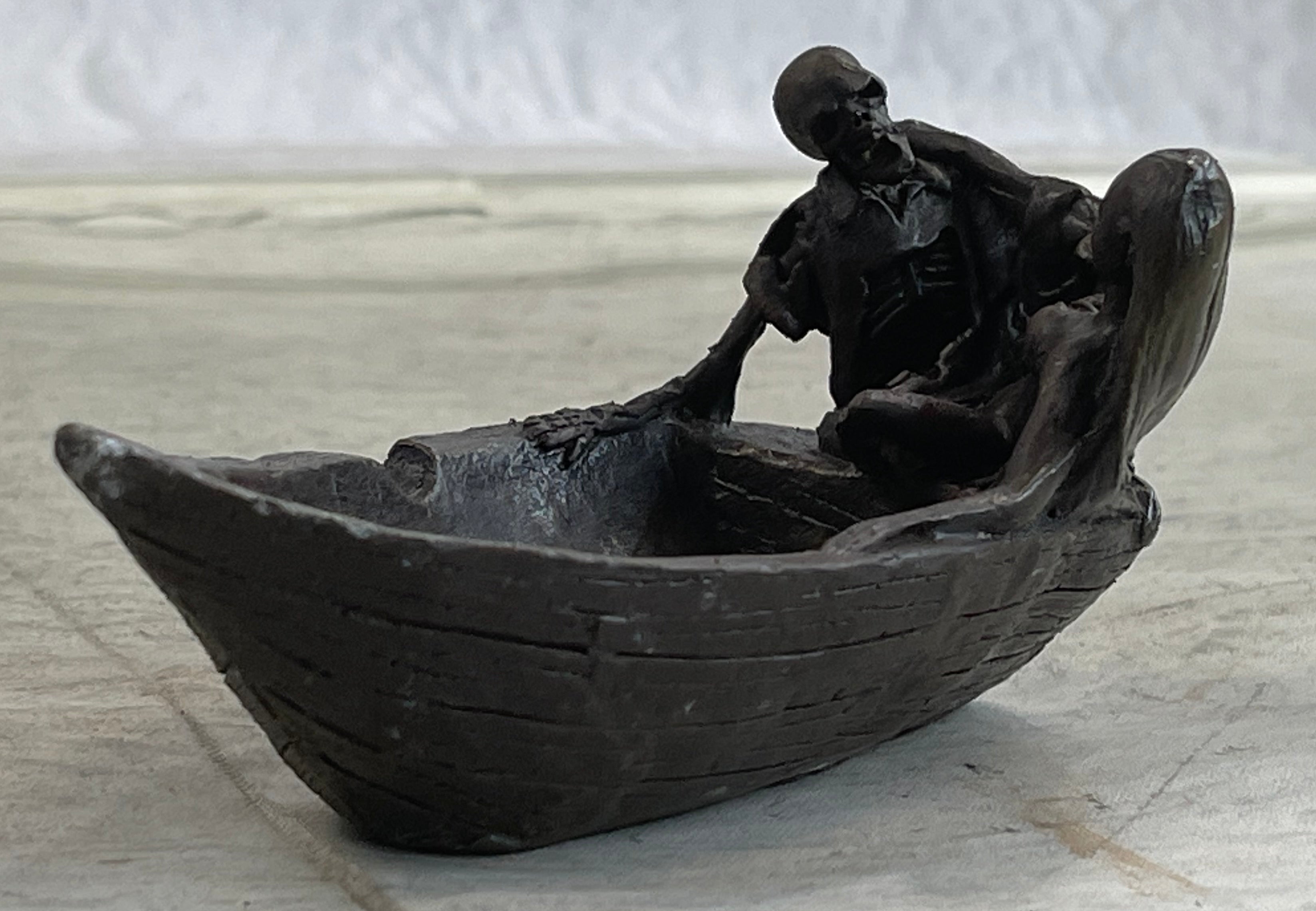 Nude Female Figure & Skeleton Bronze Ashtray Sculpture Decor Original Art