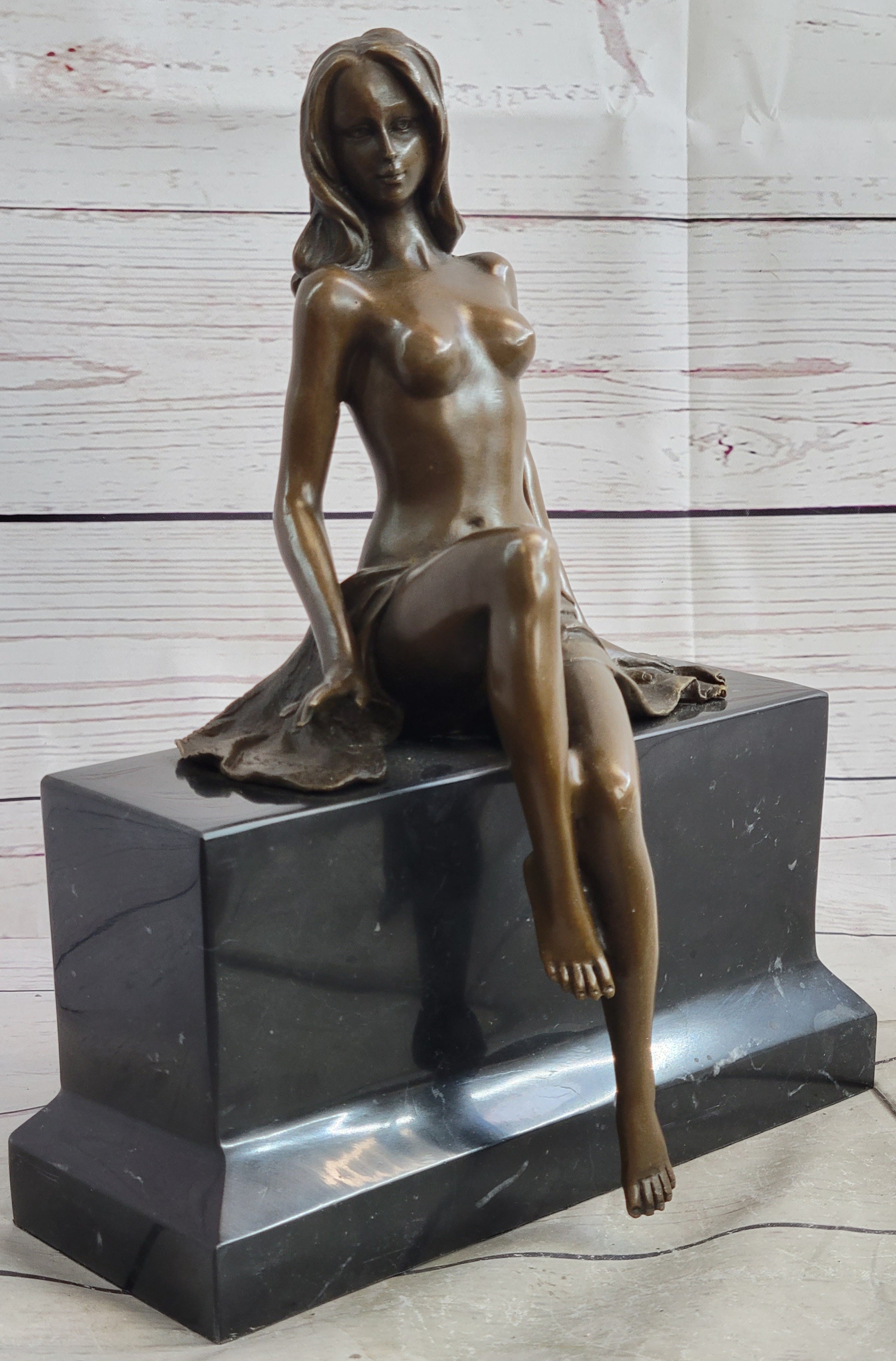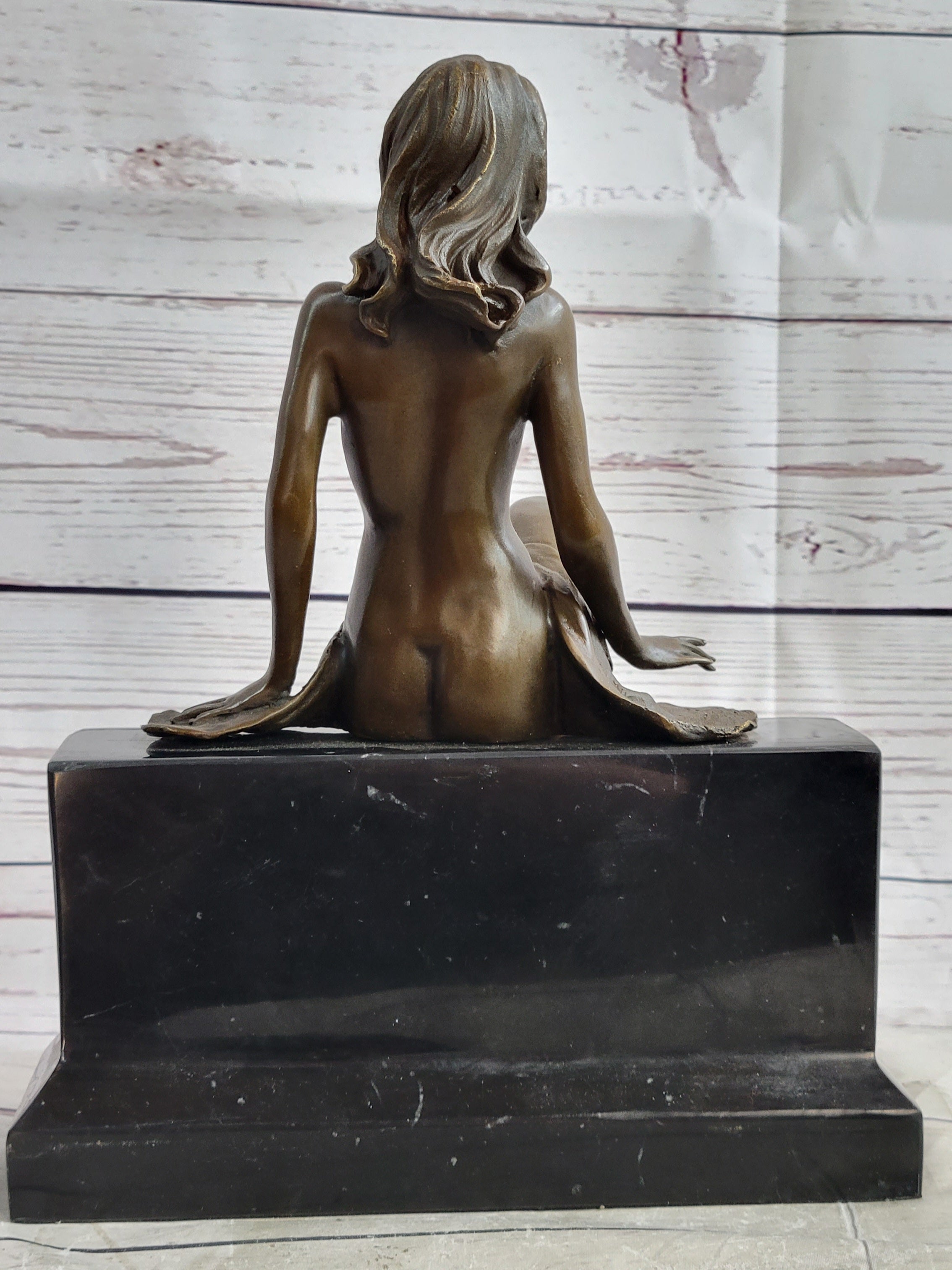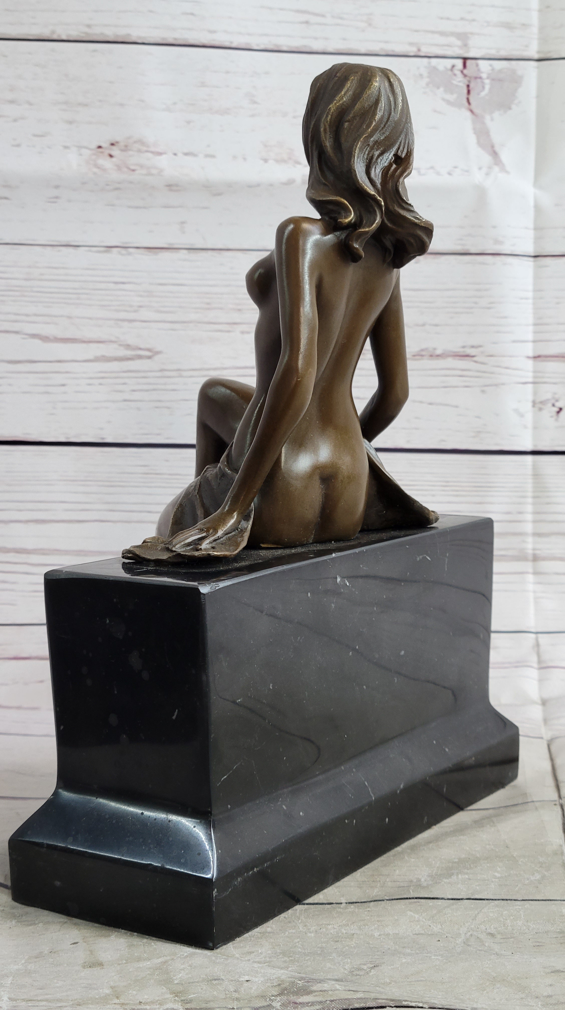 Nude Figure of Girl Sitting on Black marble Base Bronze Statue Sculpture Original Art 10.5" x 8"