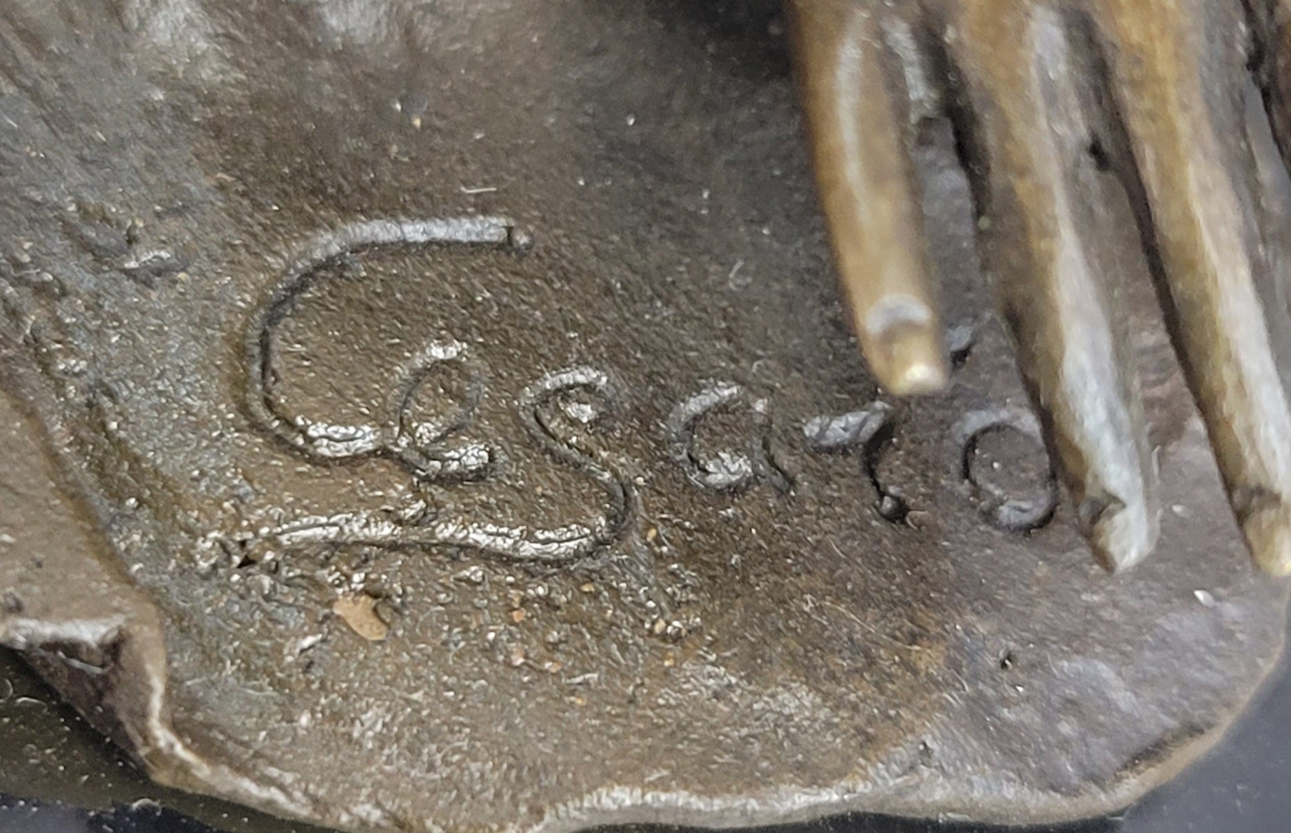 This sculpture, crafted using the traditional lost-wax casting method, is 100% bronze and rests on a polished black marble base that enhances its presence. Signed by Cezaro, this exquisite piece serves as a testament to his talent and dedication to his craft, making it a stunning addition to any art collection or space.Bronze Dimensions with Marble Base: Height 10.5" X Width 8"
