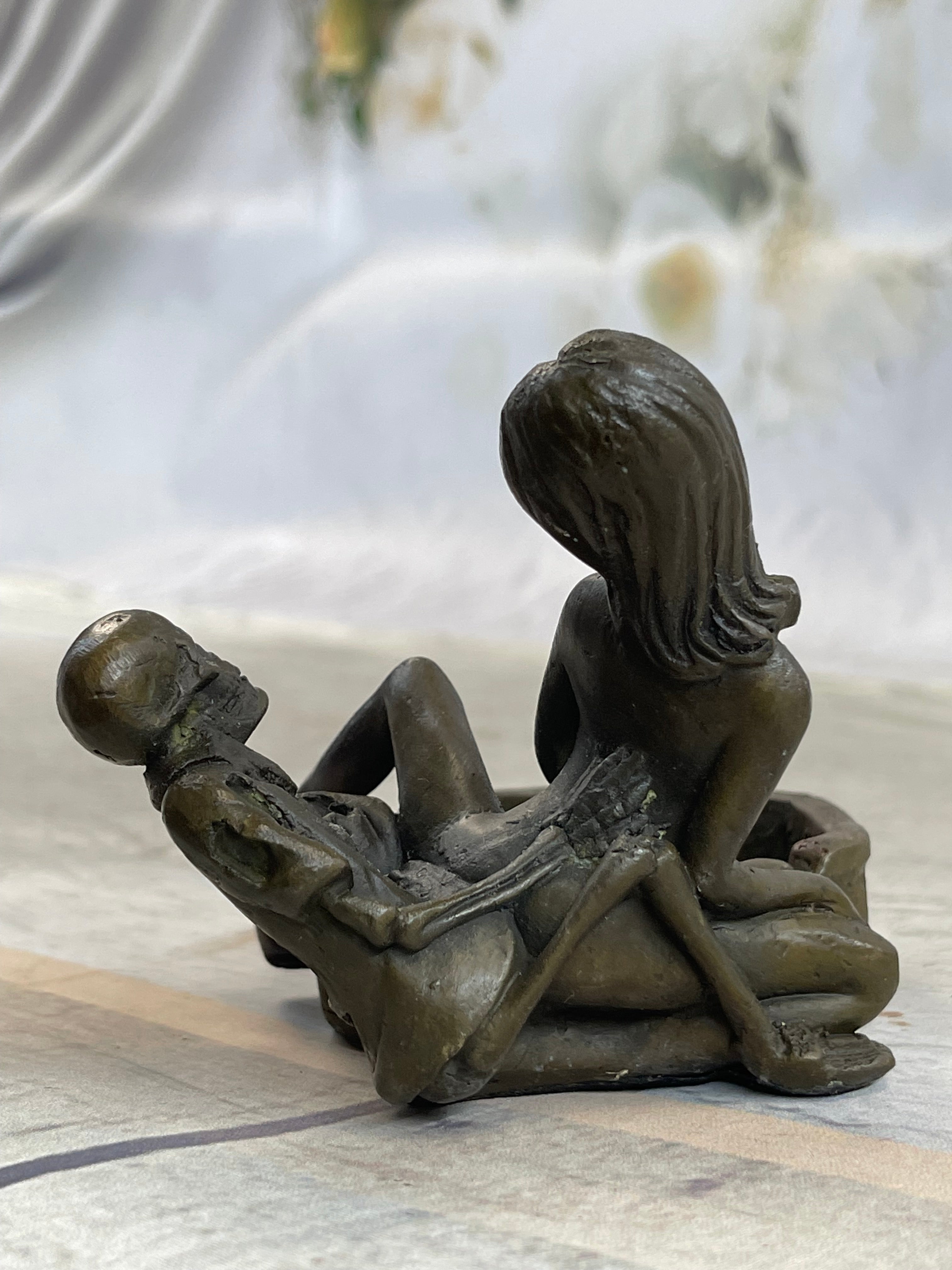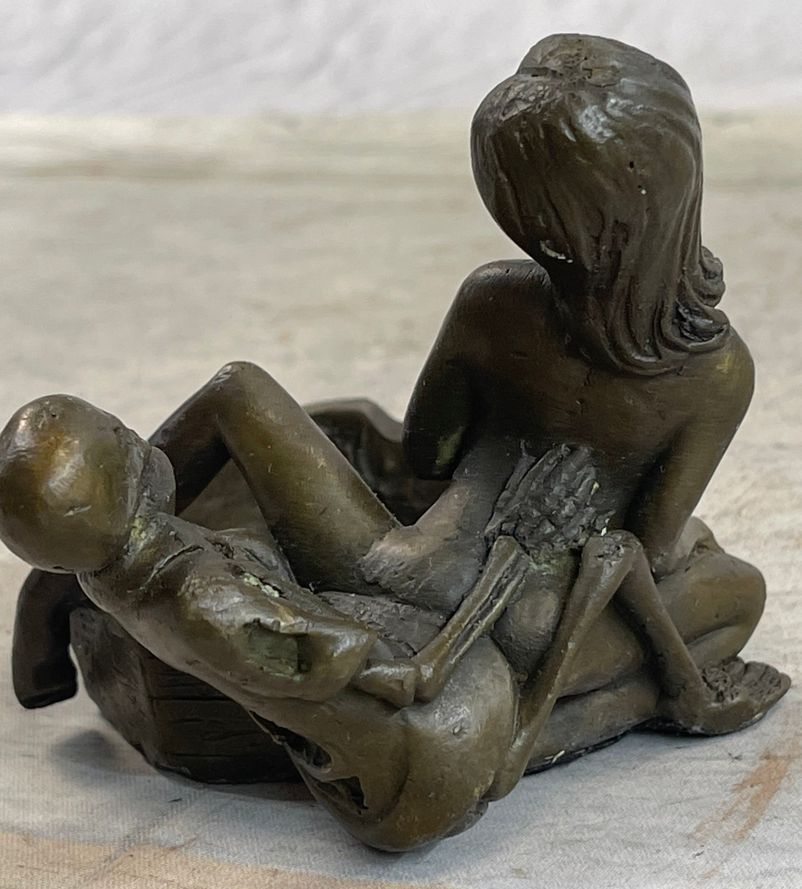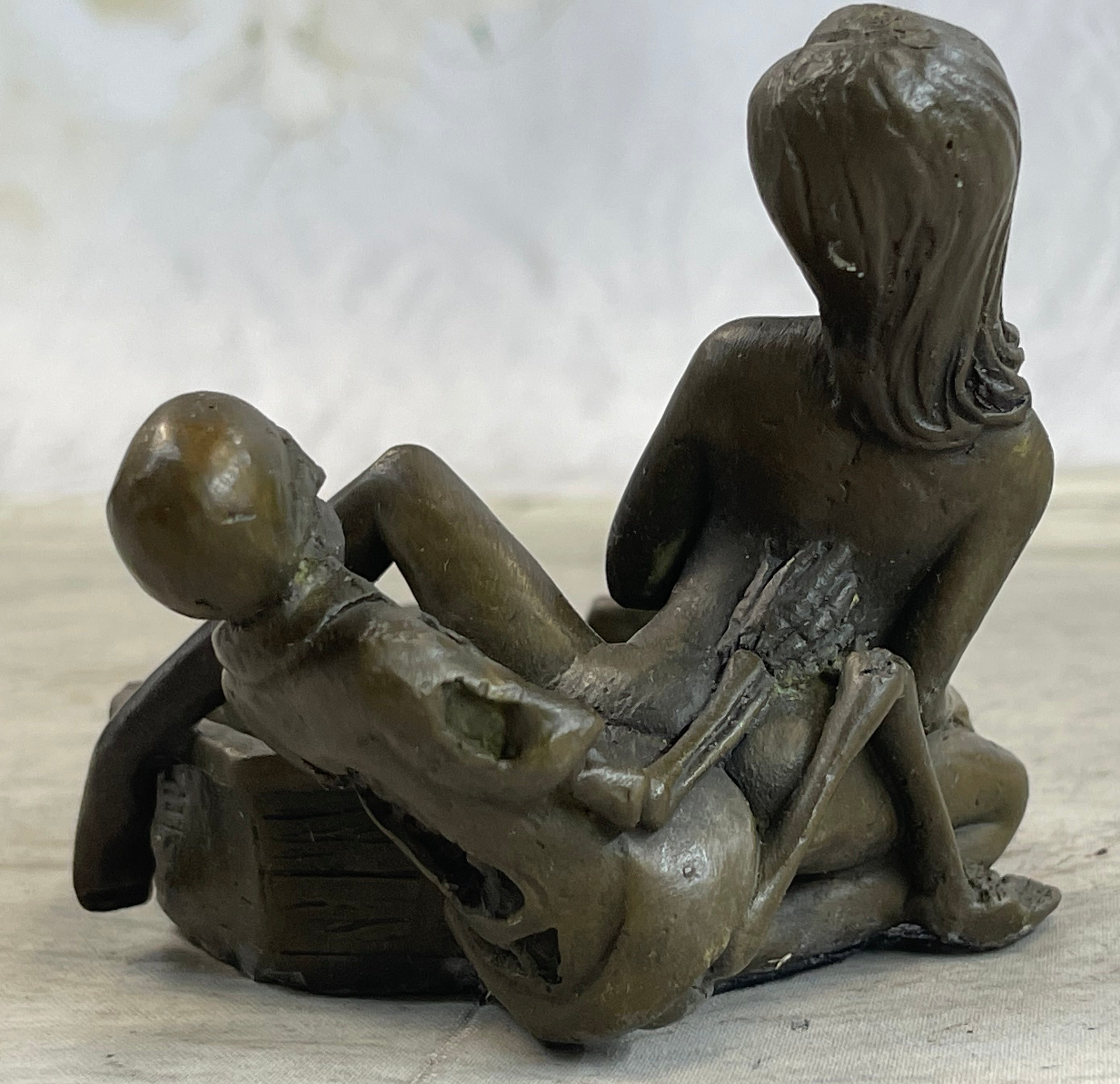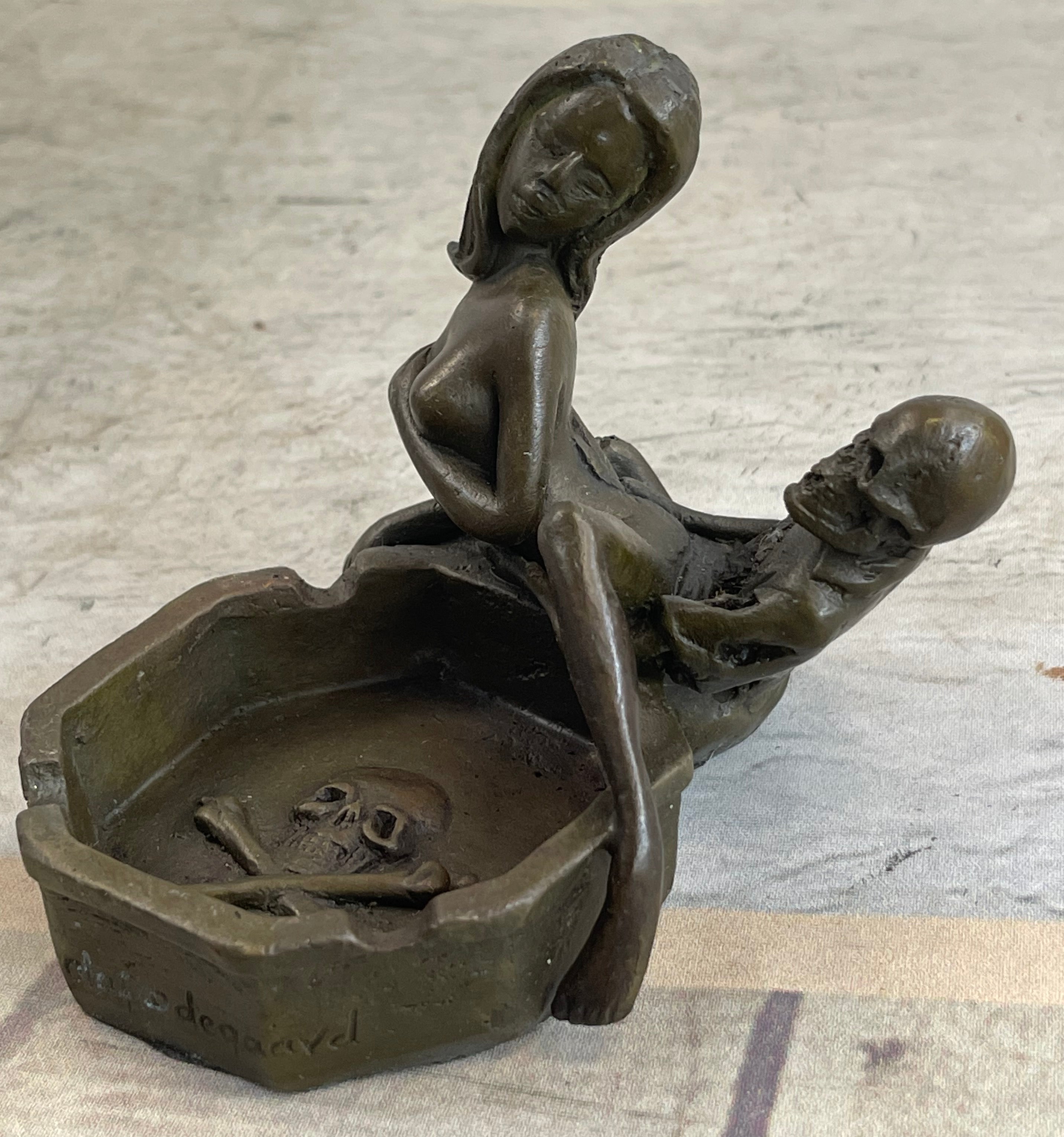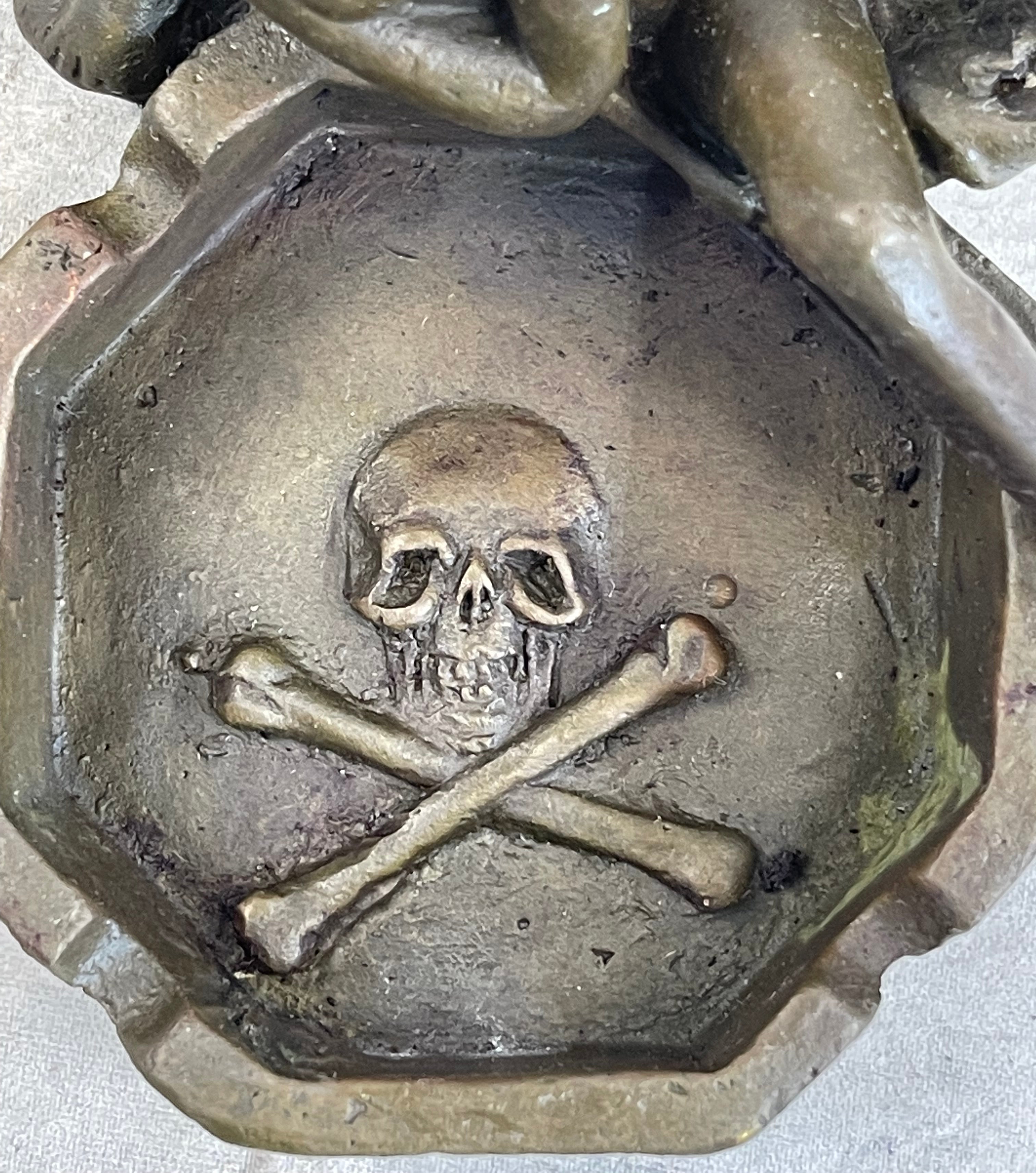 Nude Girl w/ Skeleton Pirate Skull Bones Jolly Roger Erotic Bronze Ashtray 3" x 5"