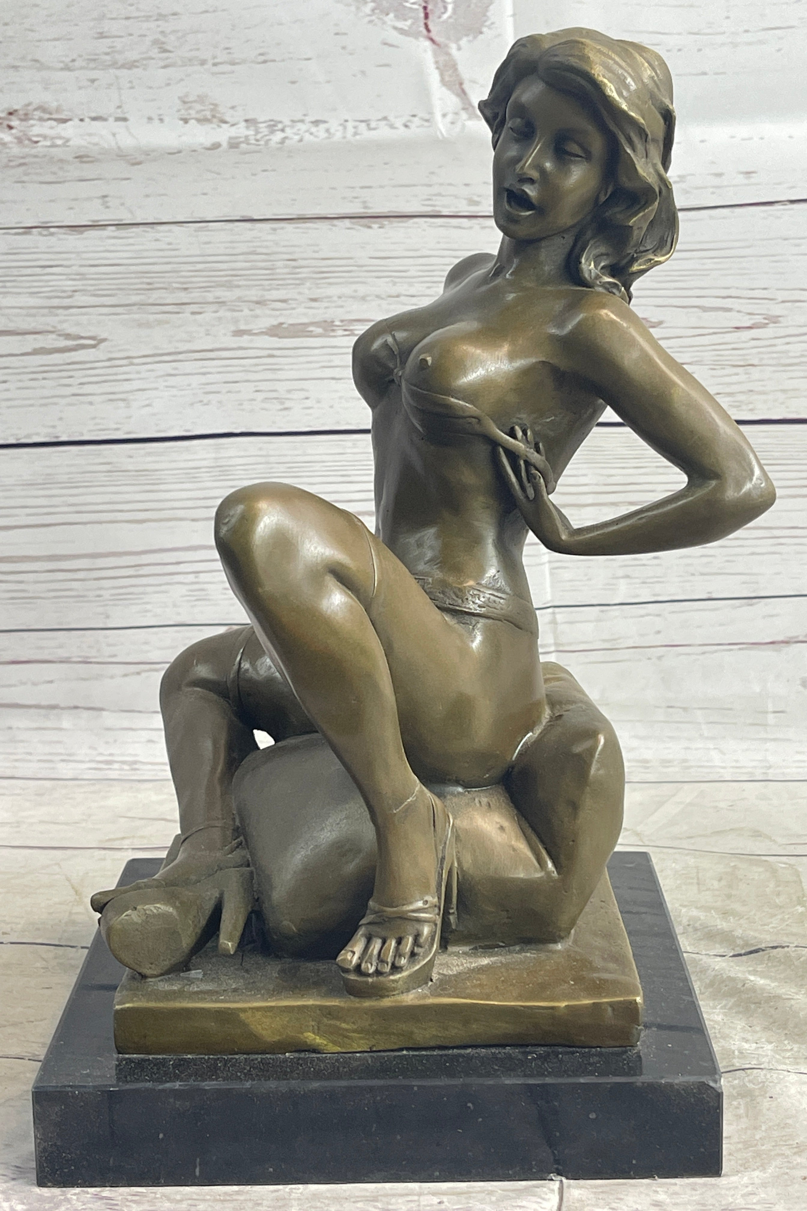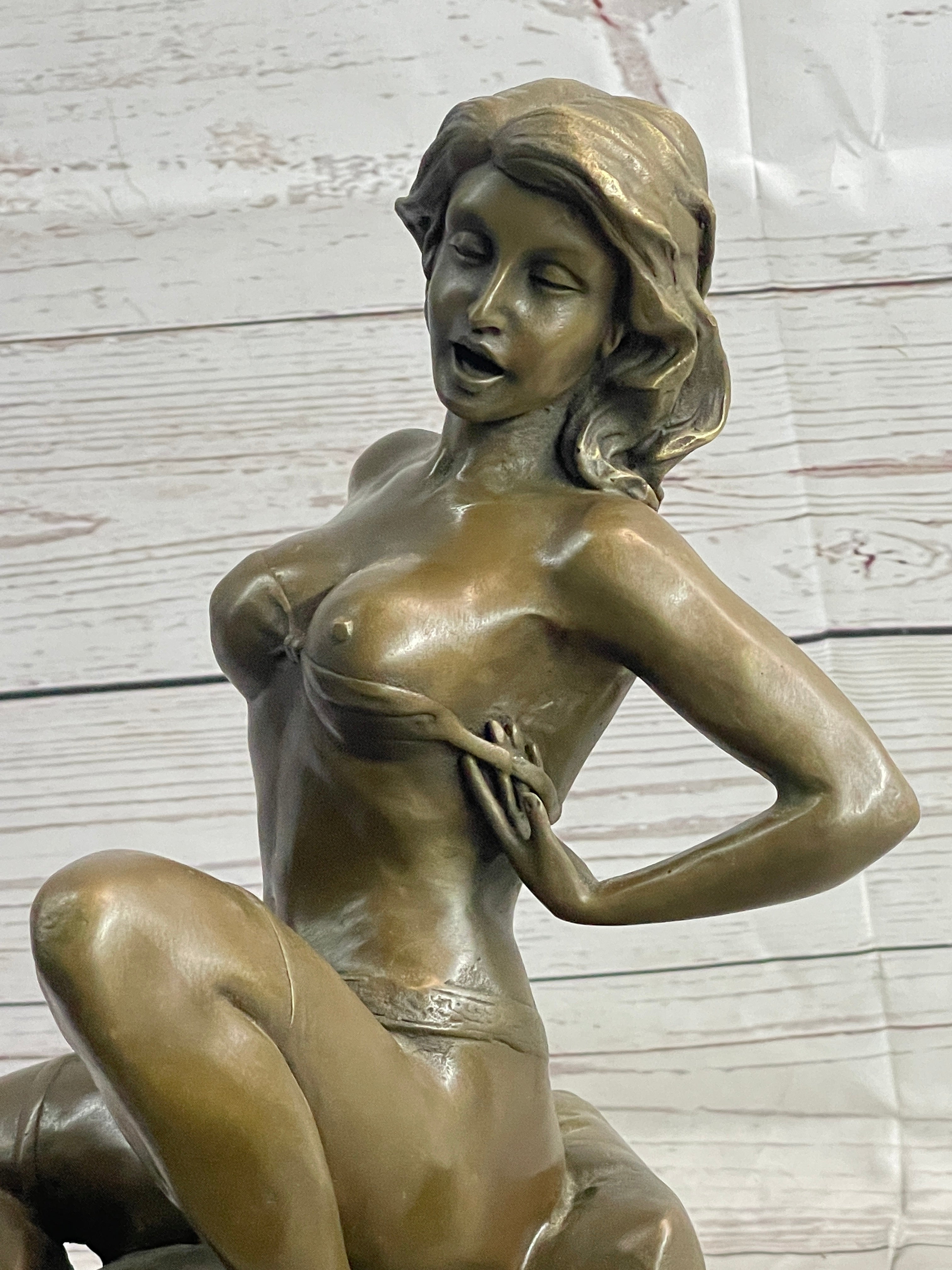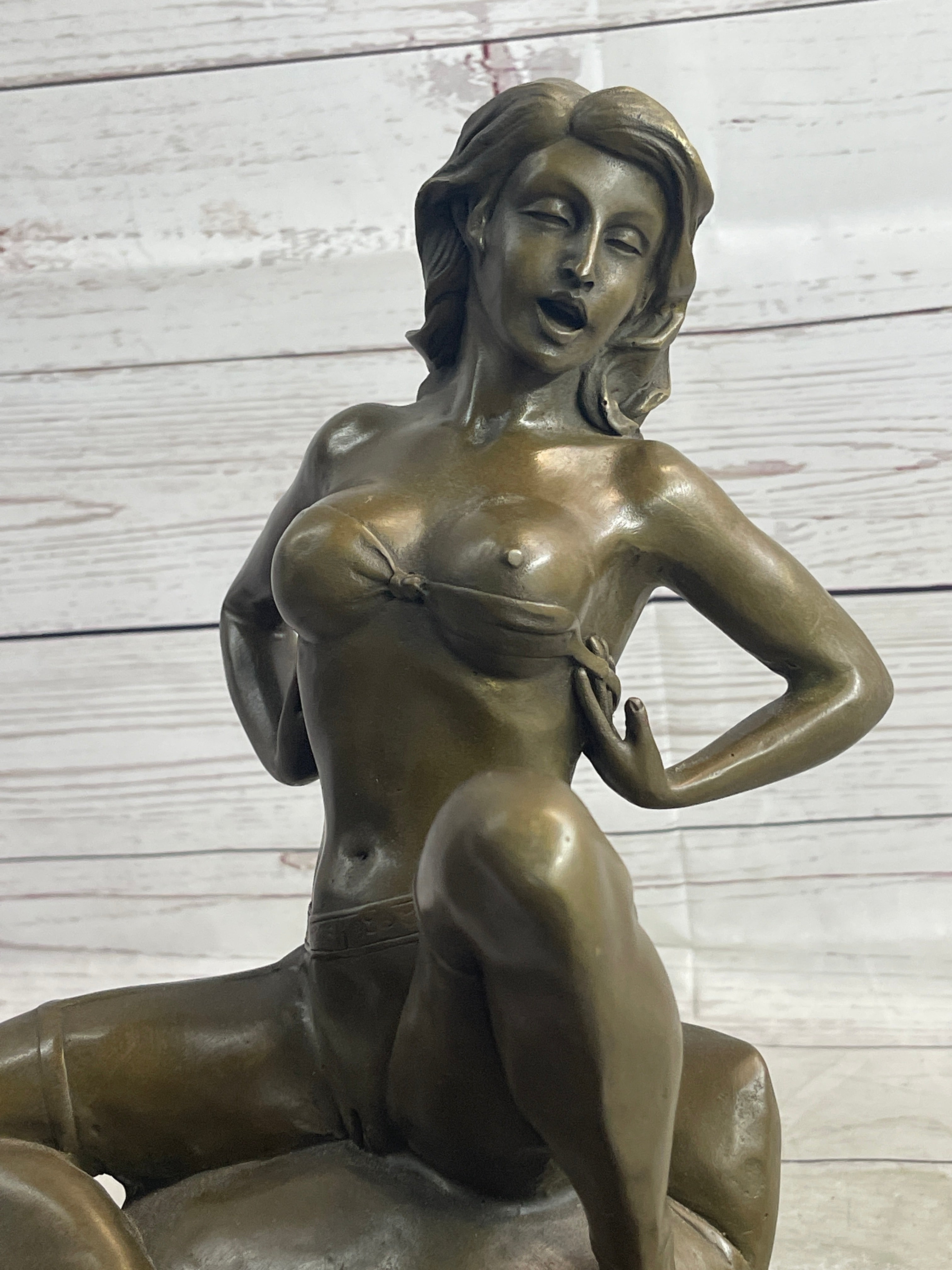 Nude Girl Woman Removing Bra Bronze Statue Sculpture Erotic Art 13" x 7"