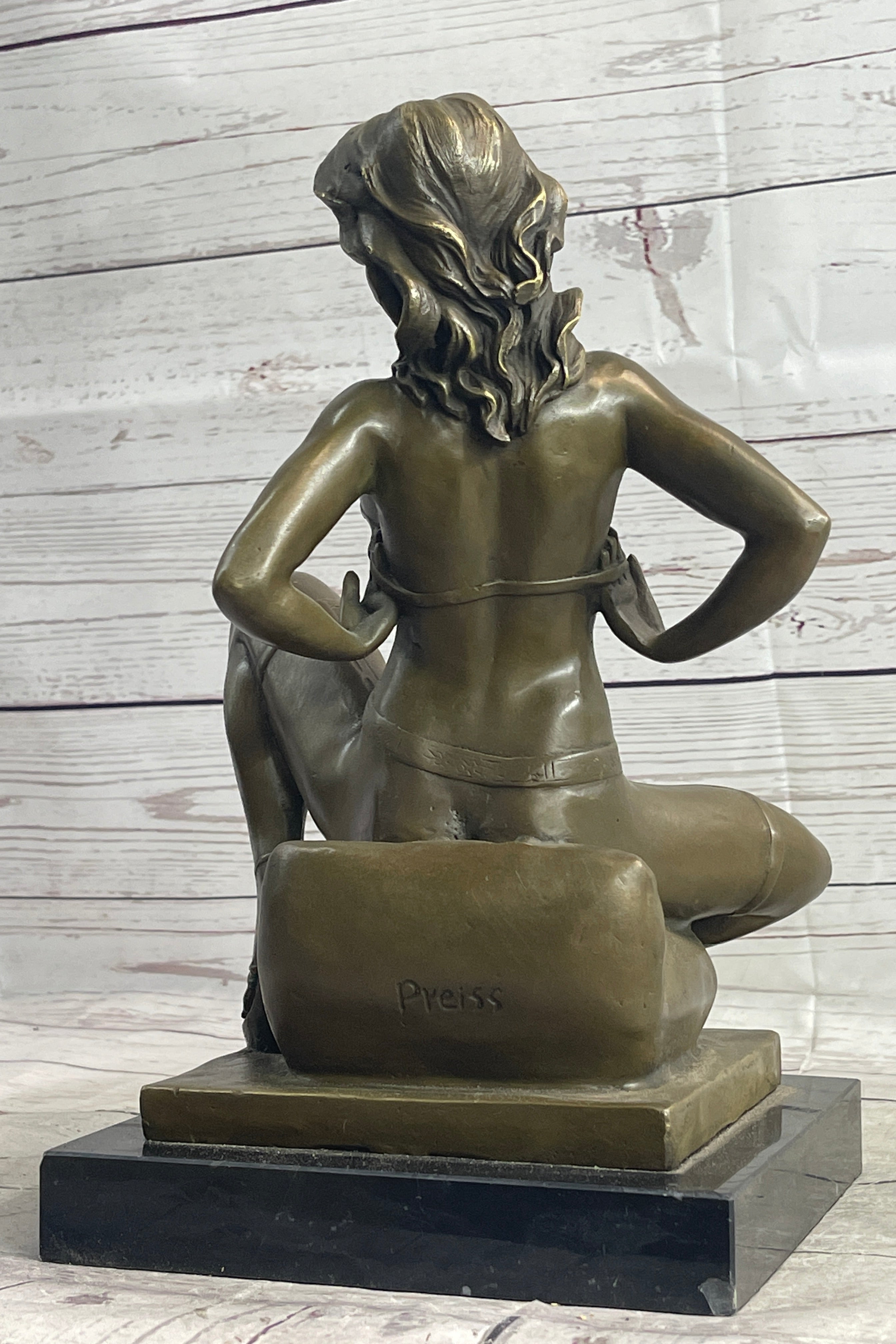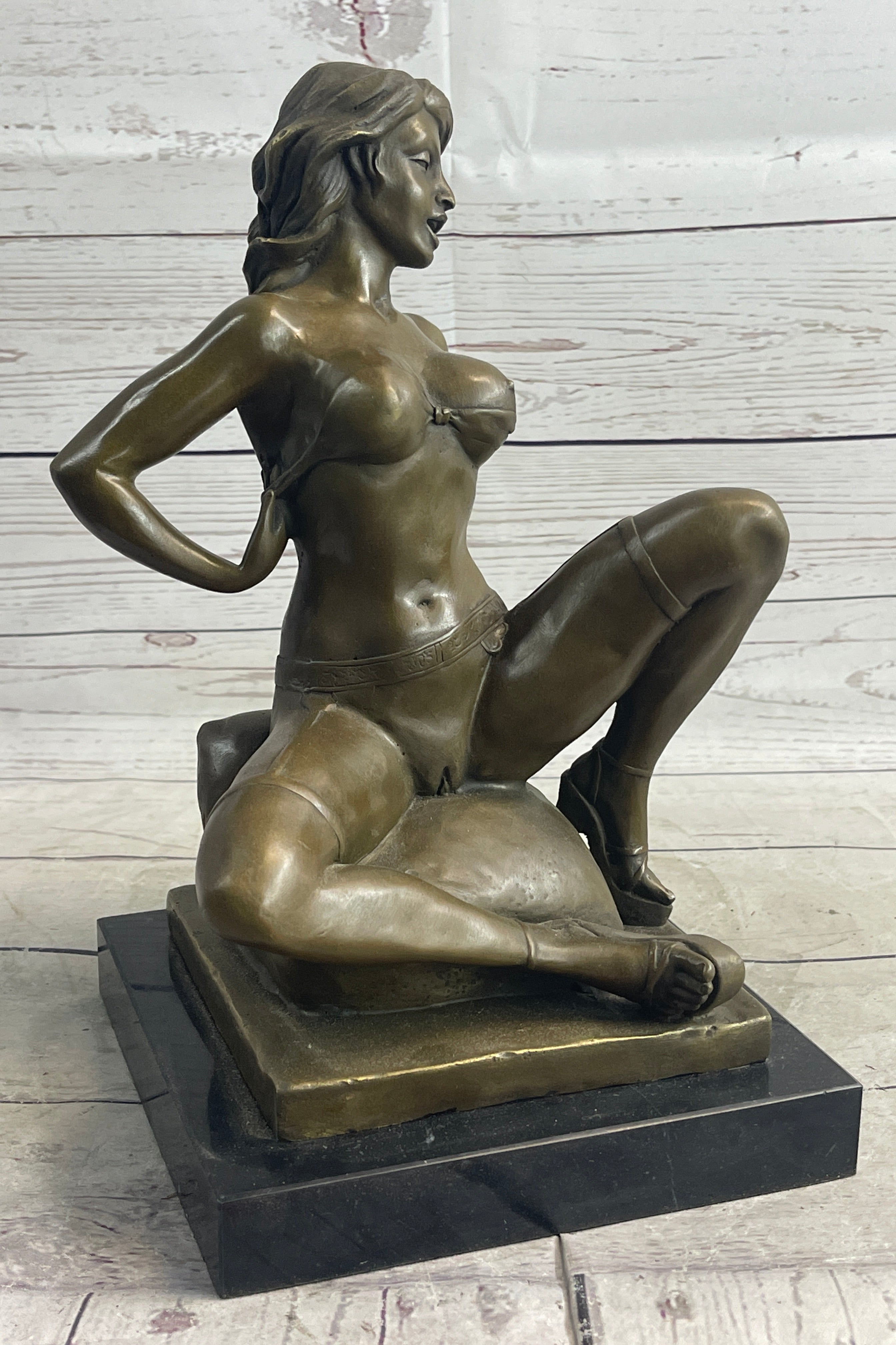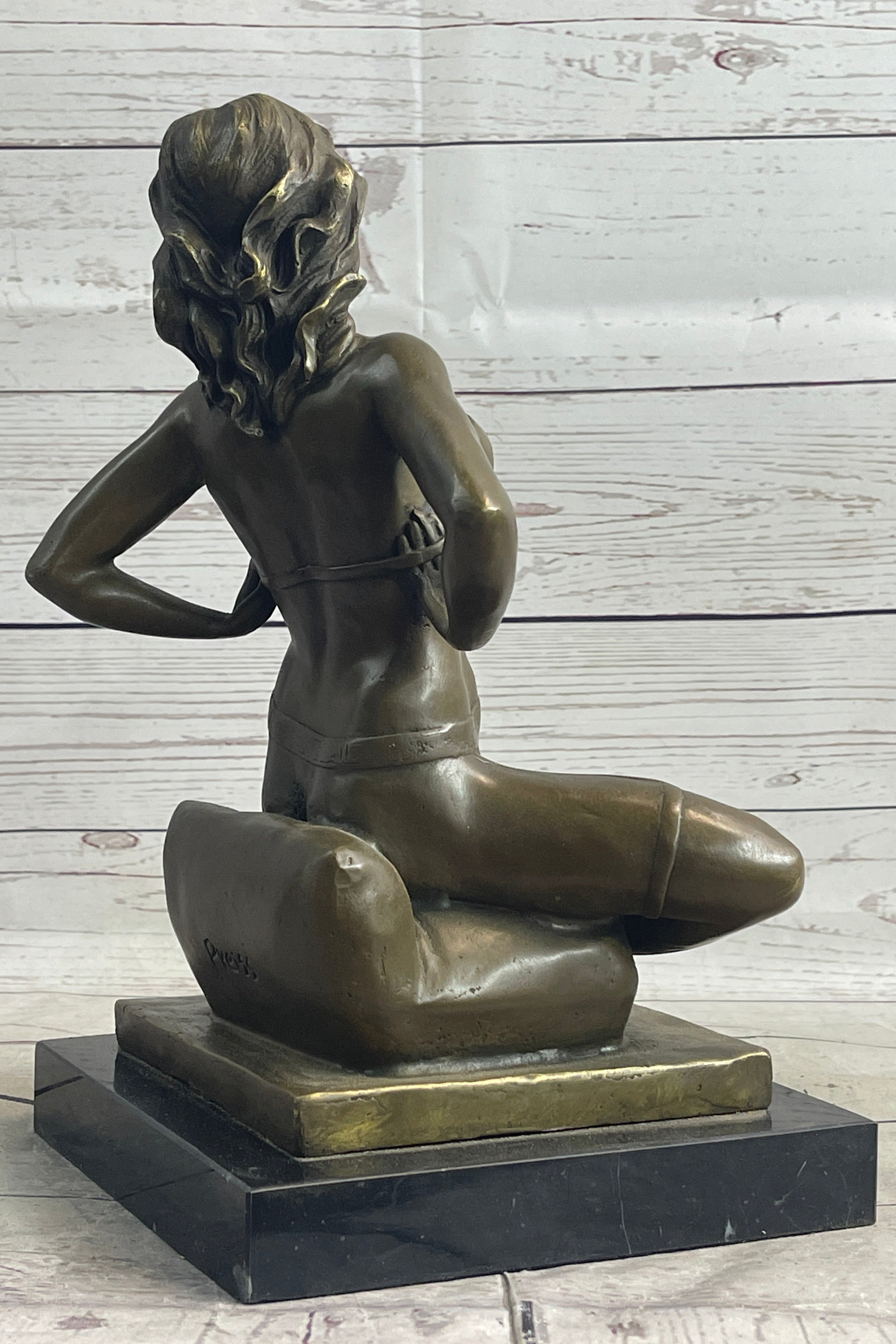 Nude Girl Woman Removing Bra Bronze Statue Sculpture Erotic Art 13" x 7"