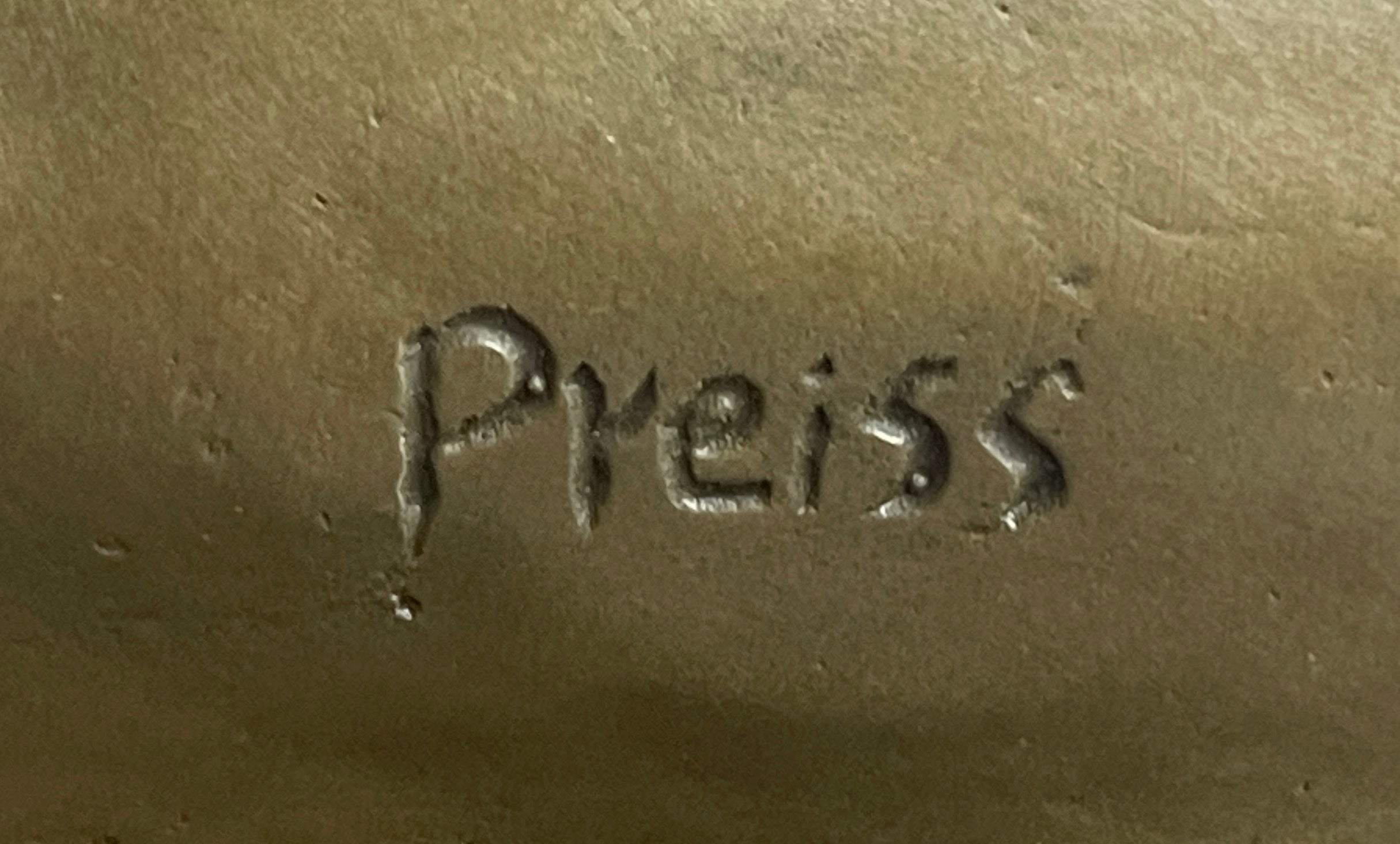 Handcrafted using the ancient Lost Wax Method and finished in a rich patina, this 100% bronze piece is mounted on a sleek base and proudly signed by Preiss. It not only serves as a conversation starter but also as a collectible treasure for those who appreciate art that challenges conventions while celebrating the complexities of desire and human expression.Bronze Dimensions with Marble Base: Height 13" X Width 7"