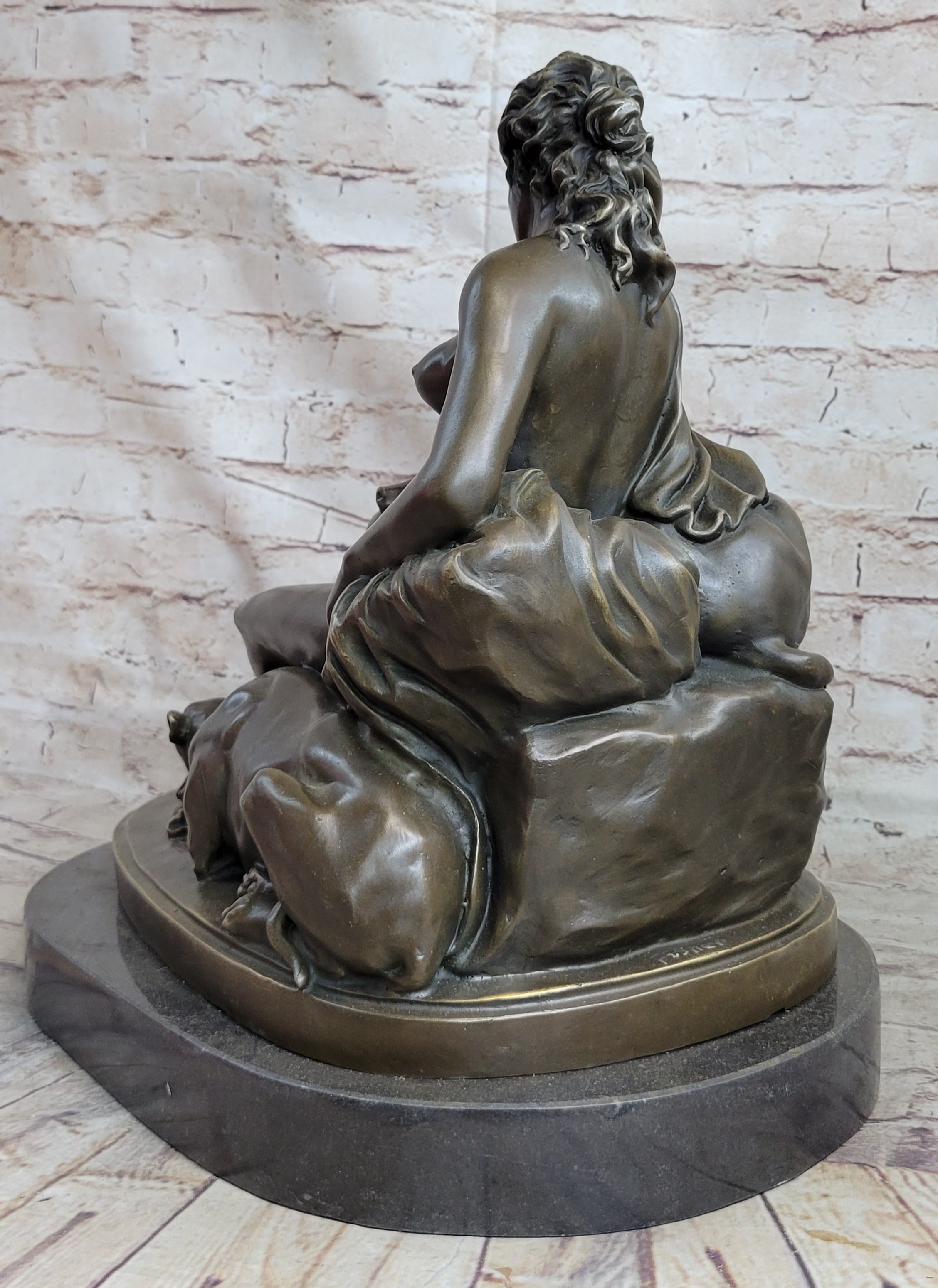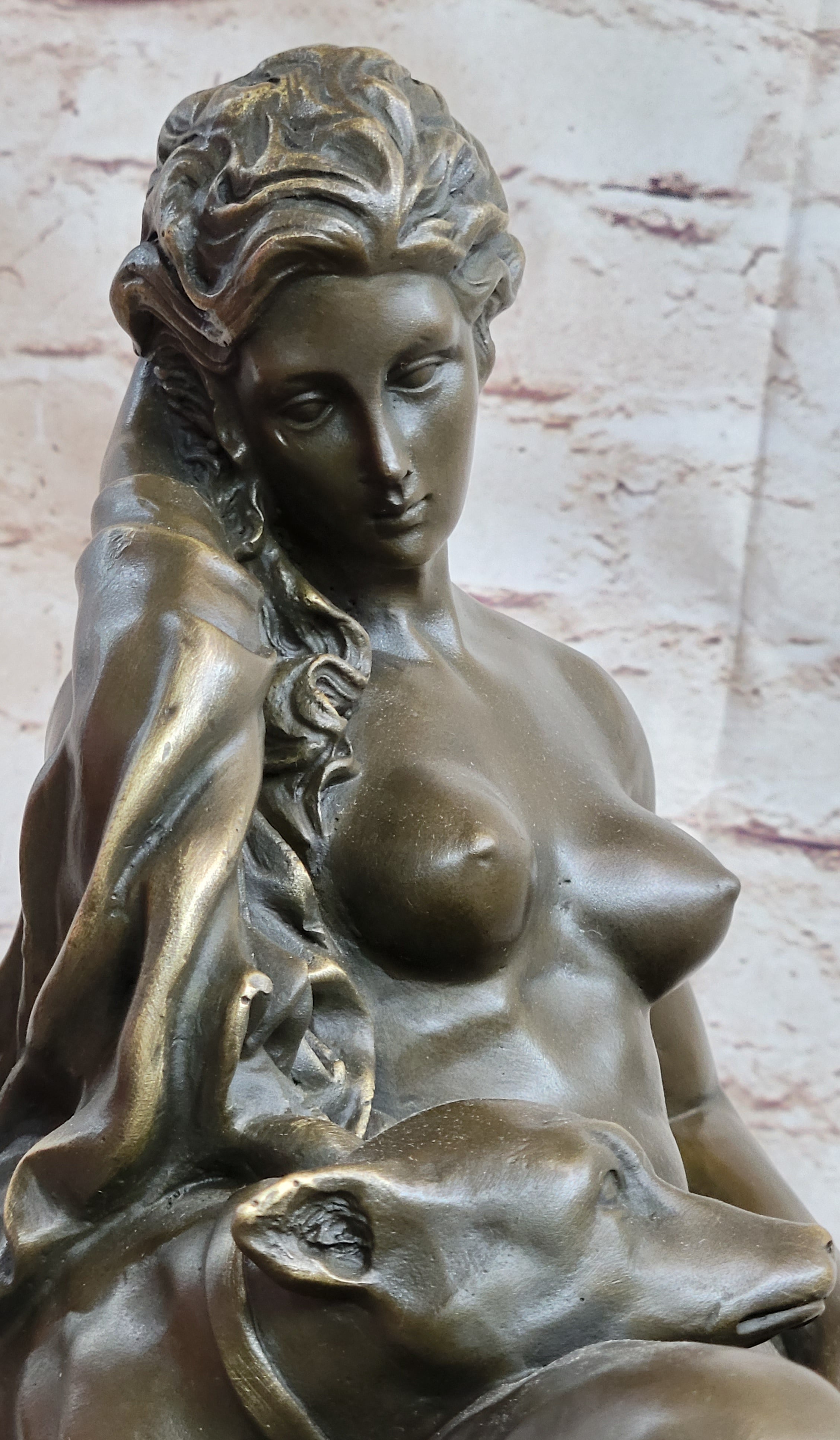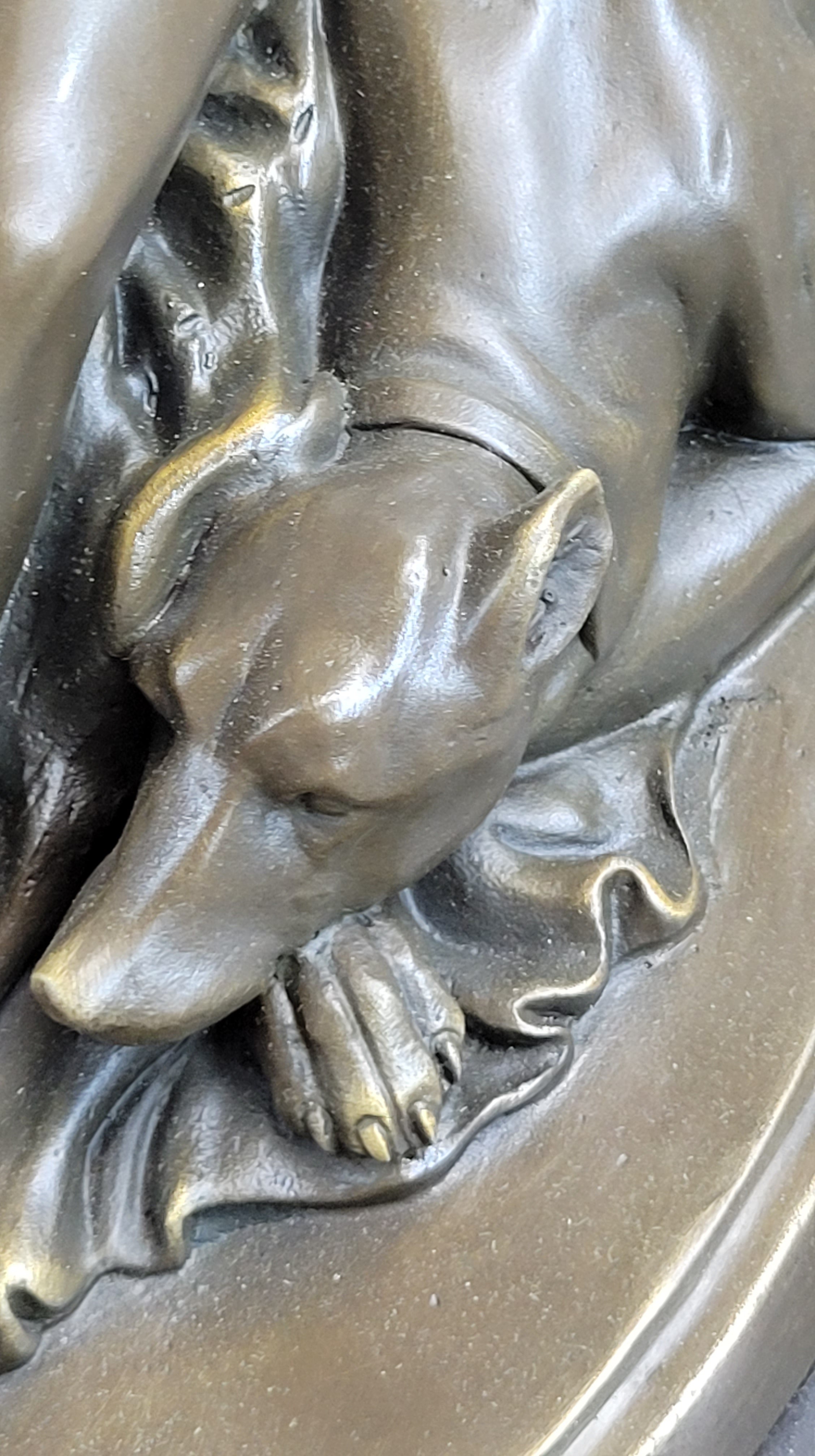 Nude Woman Female Figure w/ 2 Guard Dogs Bronze Statue Sculpture Greek Roman Decor