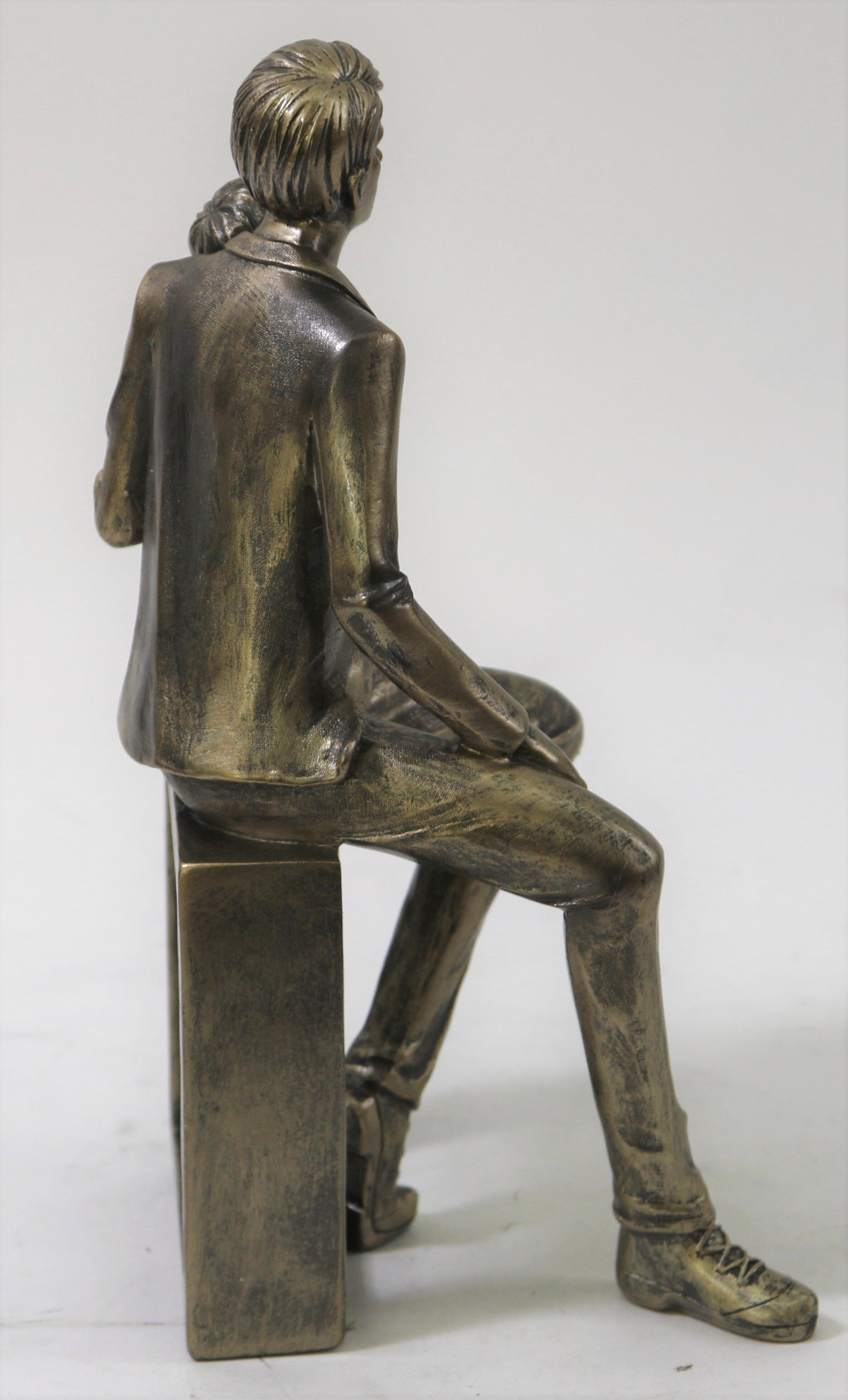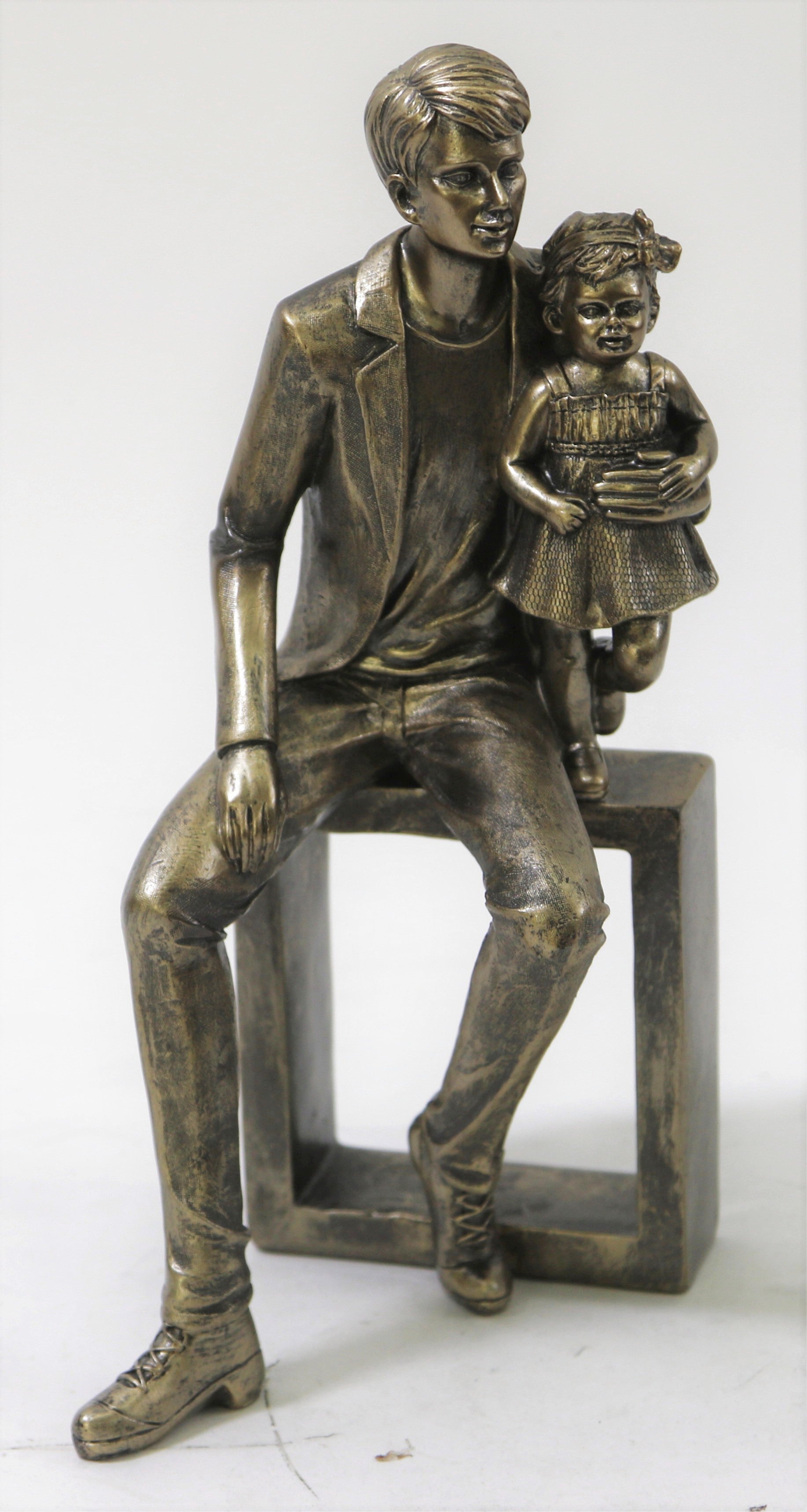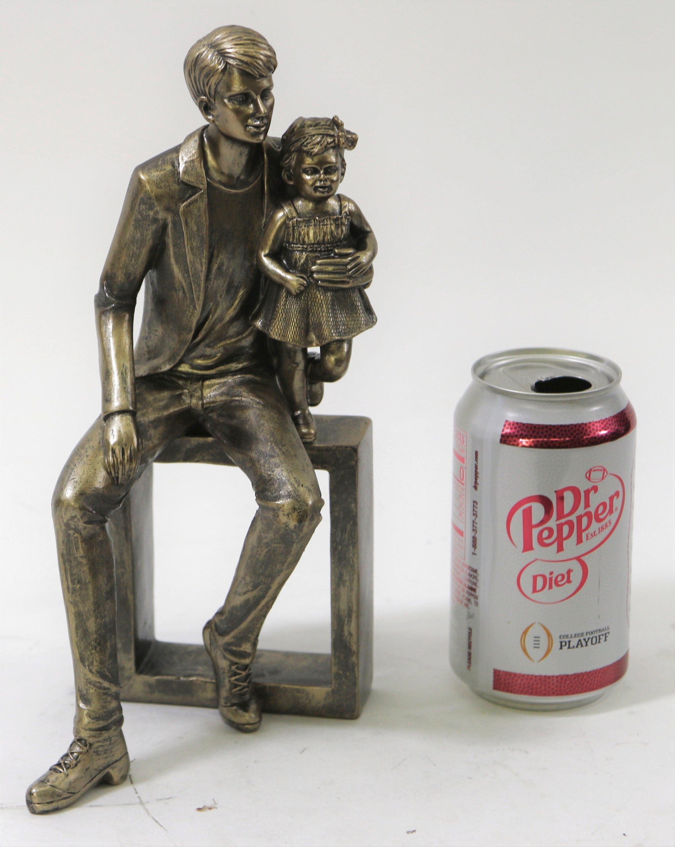 Polyresin is a resin compound generally used for statues, figurines, bobble heads and decorative furniture. It is a sturdy material that can be intricately molded, allowing a great level of detail with consistent texture. One form of polyresin often used is Alabastrite. It is a stone-based material, easy to sculpt, takes paint well, and has a similar appearance to porcelain and pottery.* Crafted of Cold Cast Metalic Bronze Resin Finish