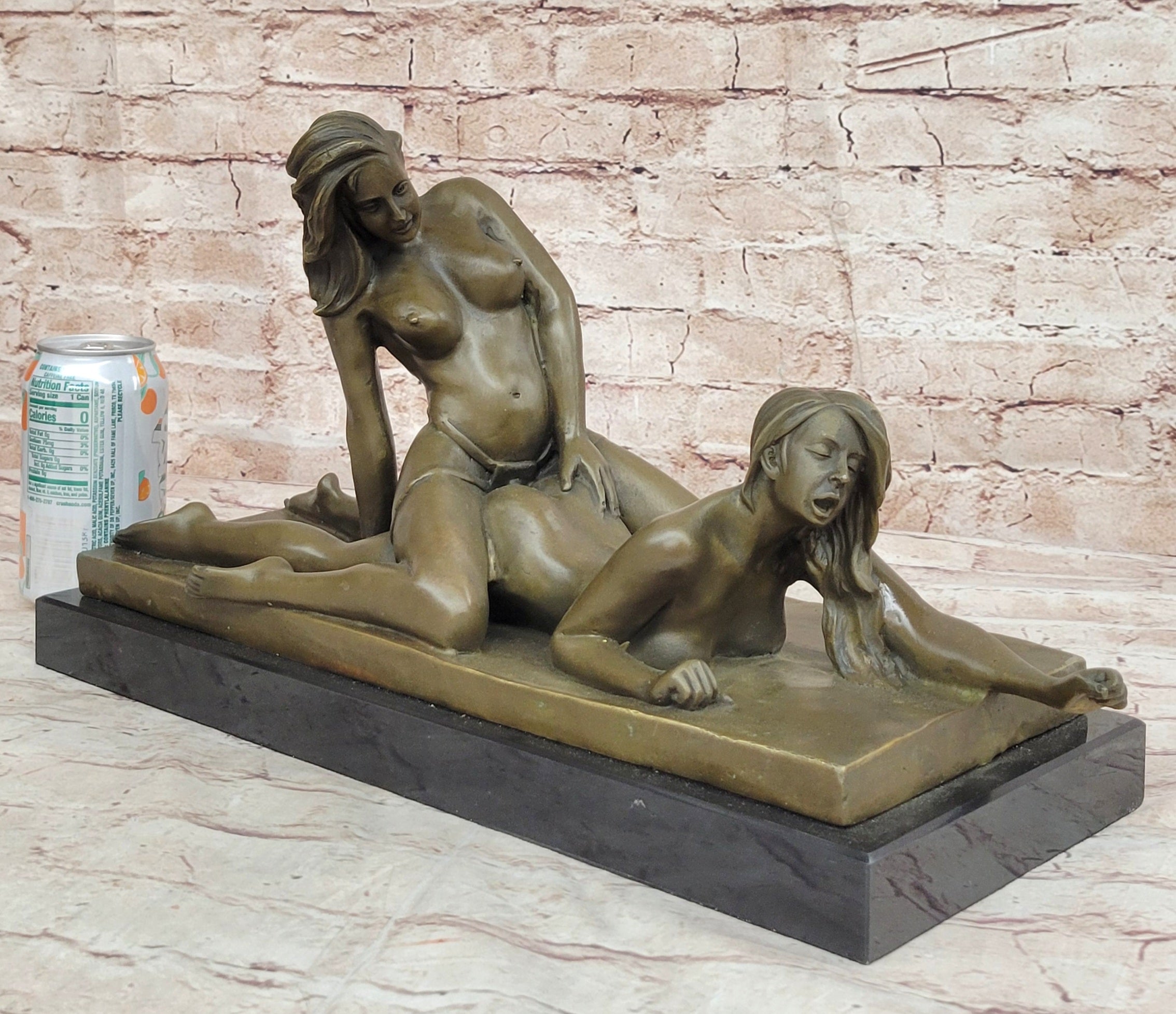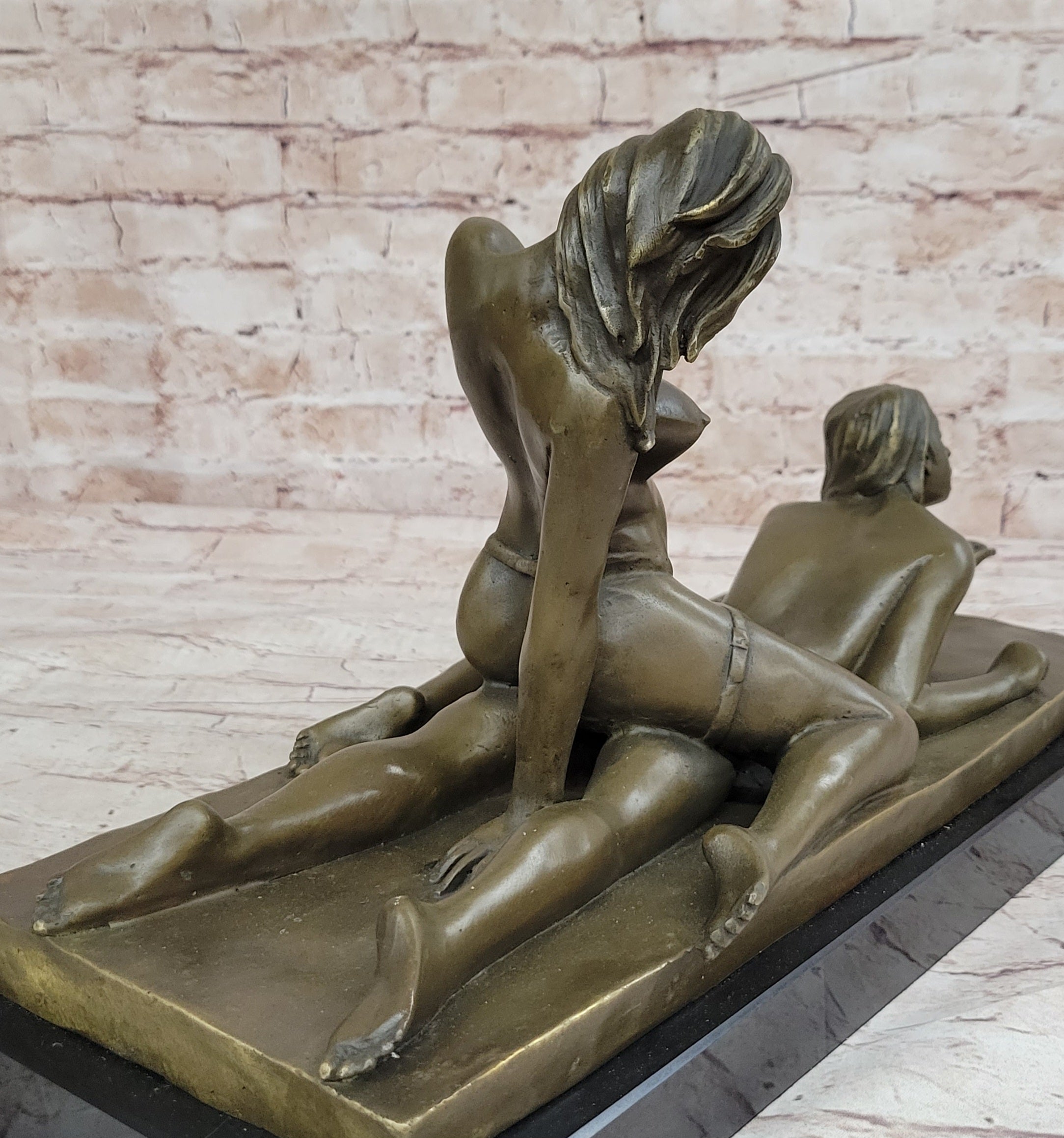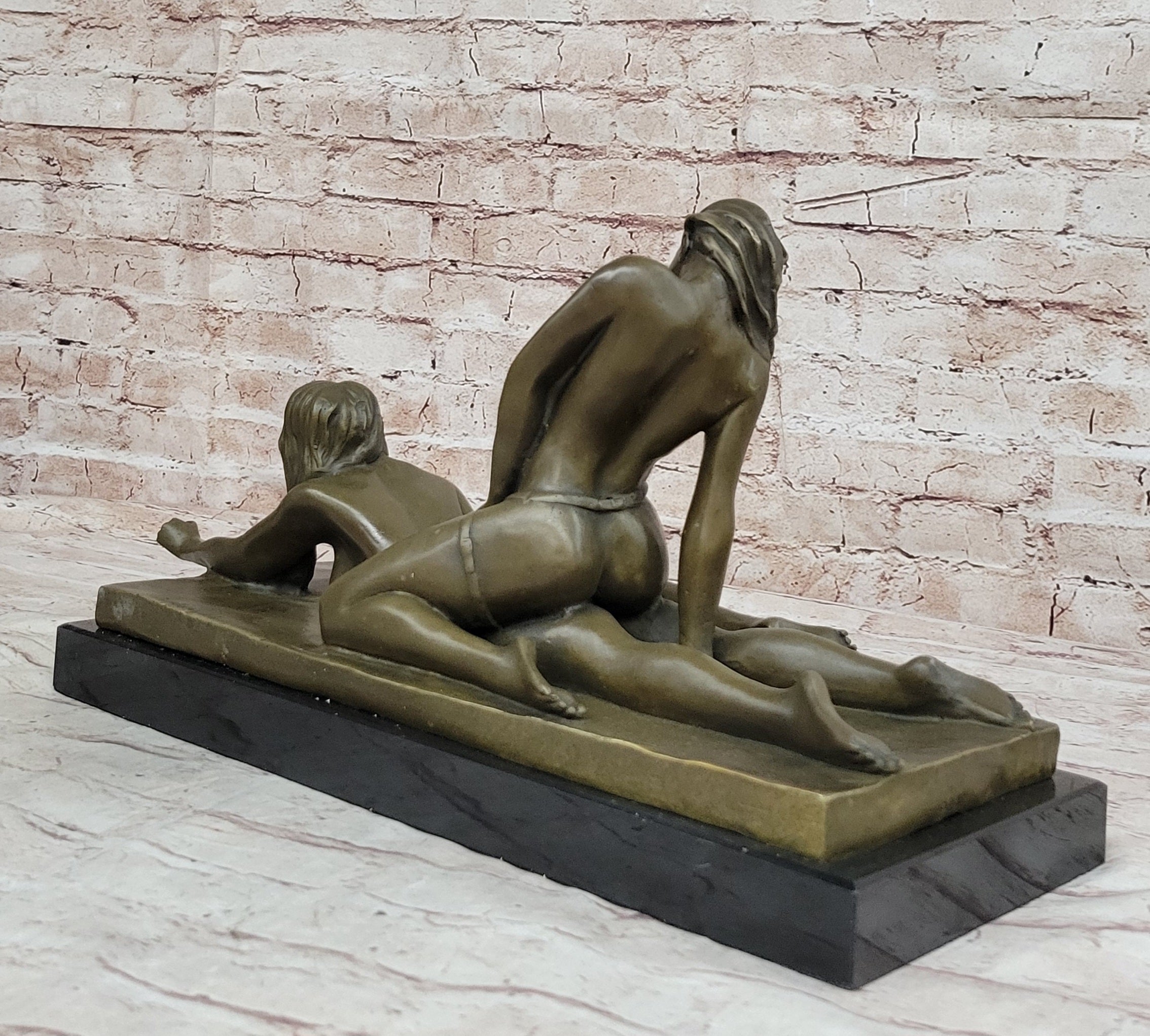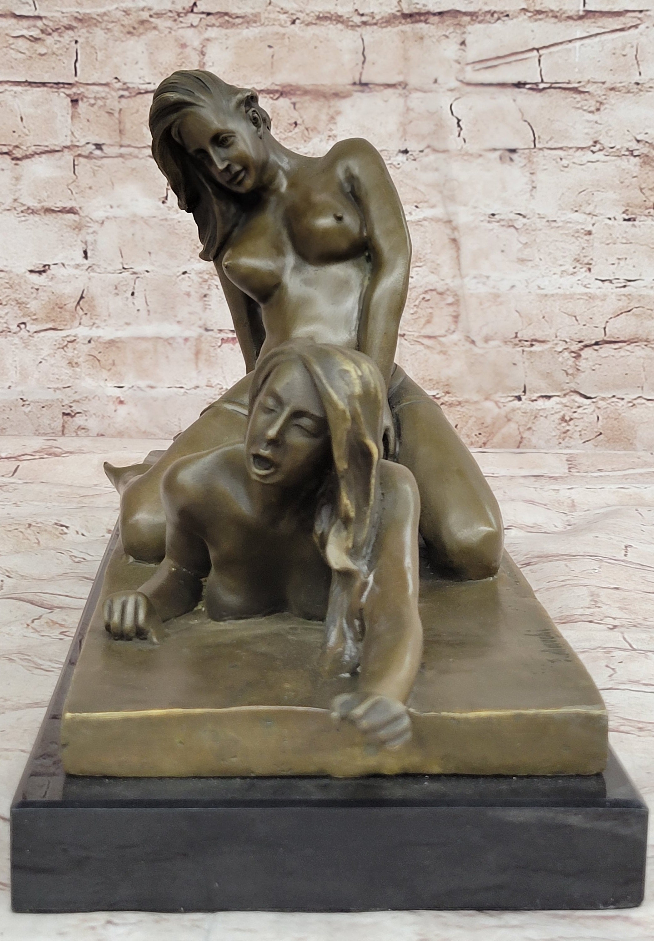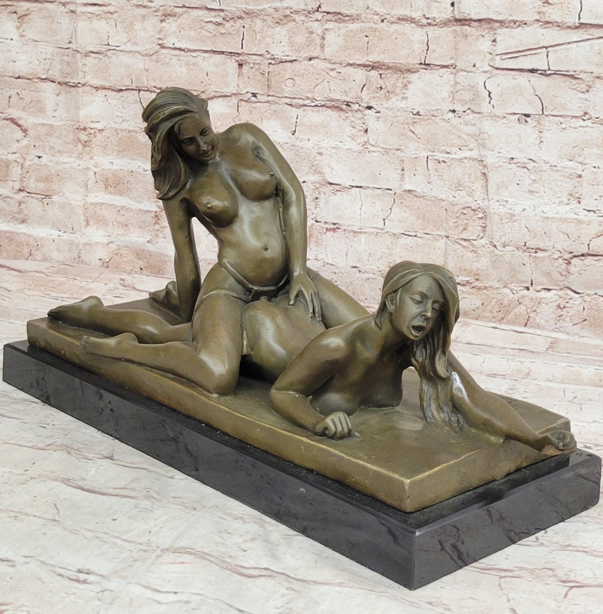 Original Bronze Erotic Art Sculpture Statue by Mavchi Two Lesbian Lovers Strap-On Sex