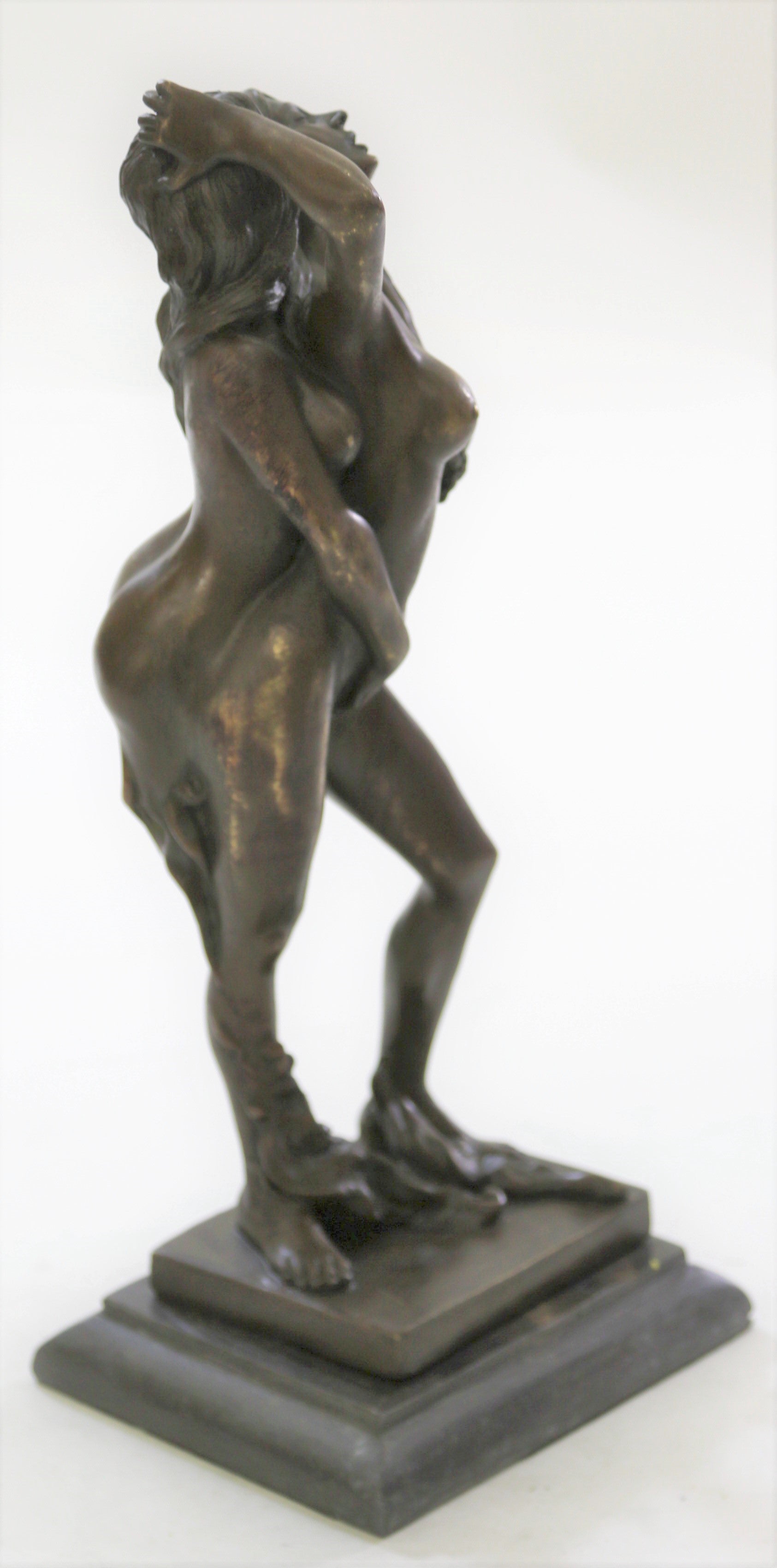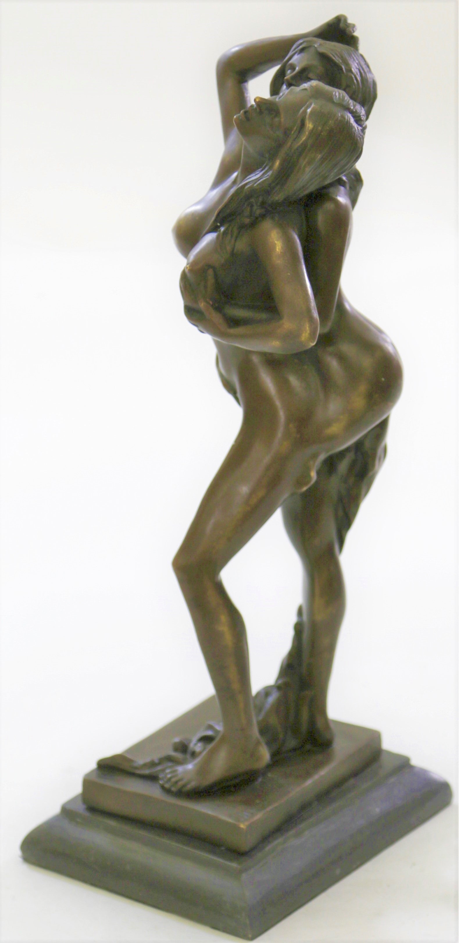 The design of this sculpture is distinctive and thought-provoking, embracing and celebrating the diversity of human sexuality. It serves as a poignant reminder that love knows no boundaries and that the expression of affection and desire is a beautiful and natural part of the human experience. Handcrafted with meticulous attention to detail, this sculpture is not to be mistaken for cheap resin imitations. It is created using the revered lost wax process, a time-honored technique that ensures the finest quality and authenticity in bronze sculpture.