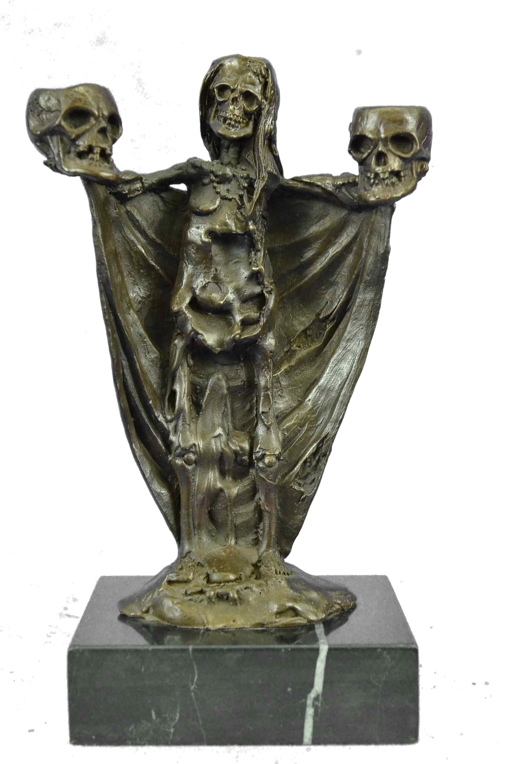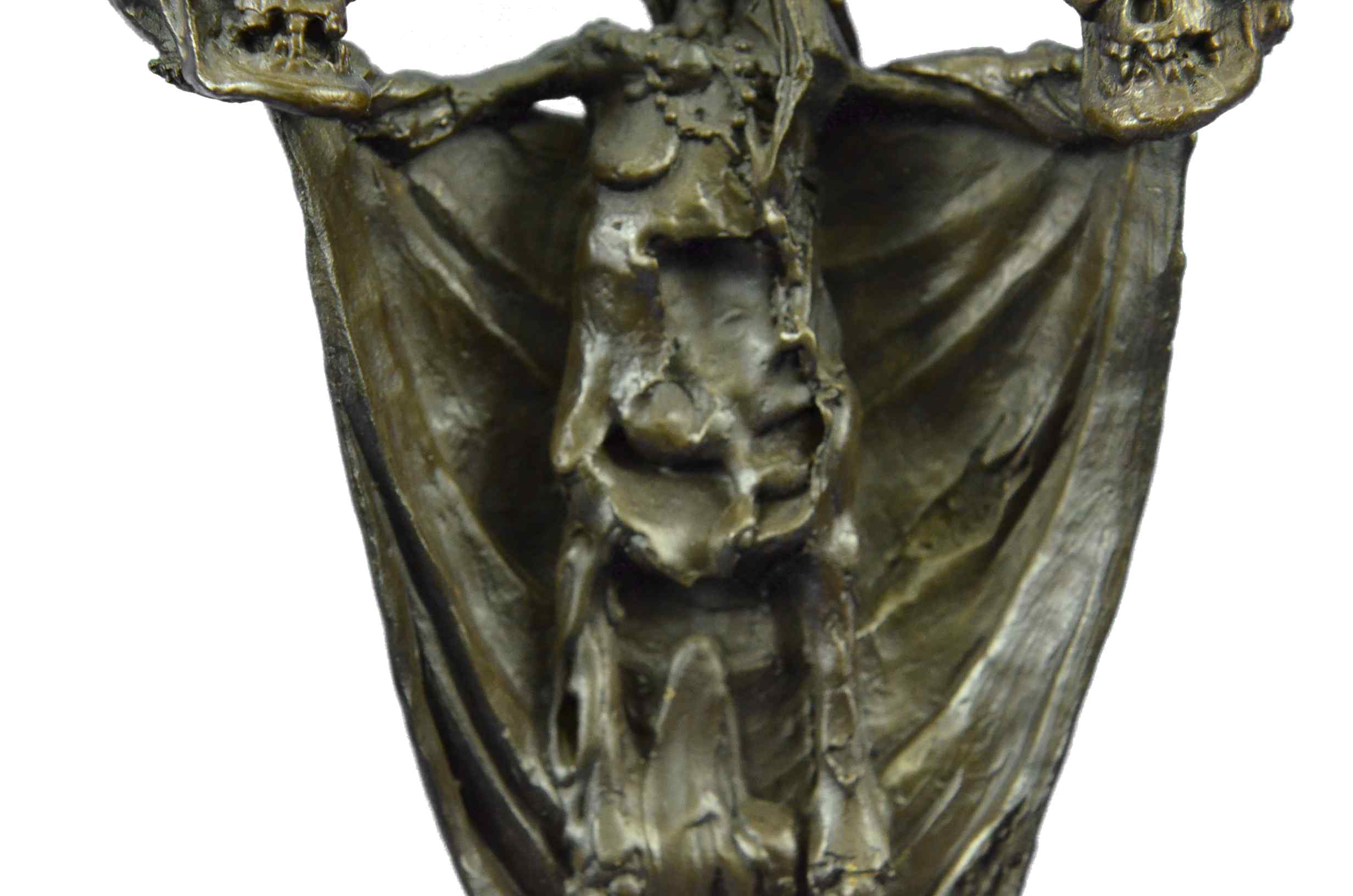 Original Signed Patoue French Artist Gothic Skeleton Candle Holder Bronze Figure