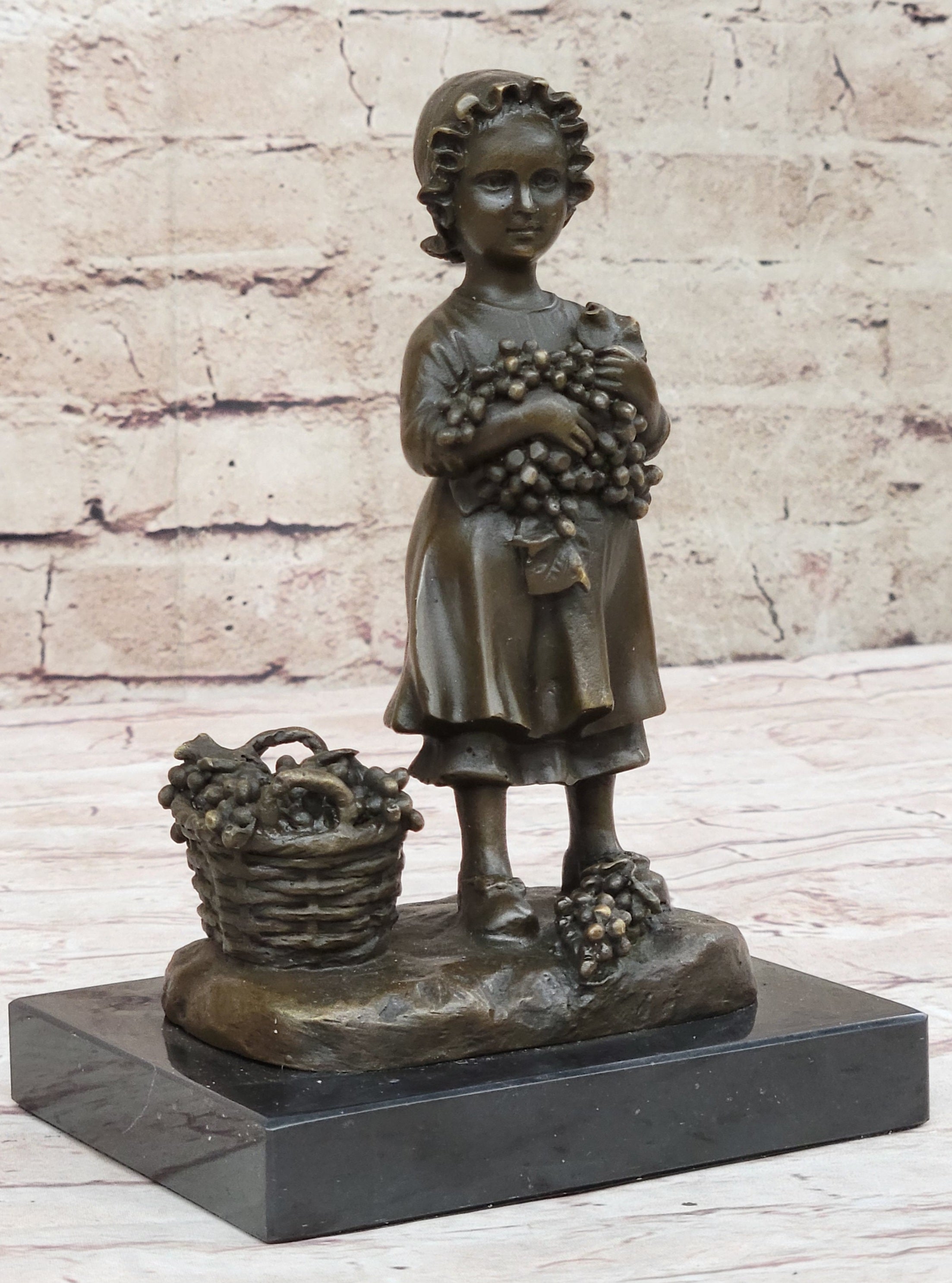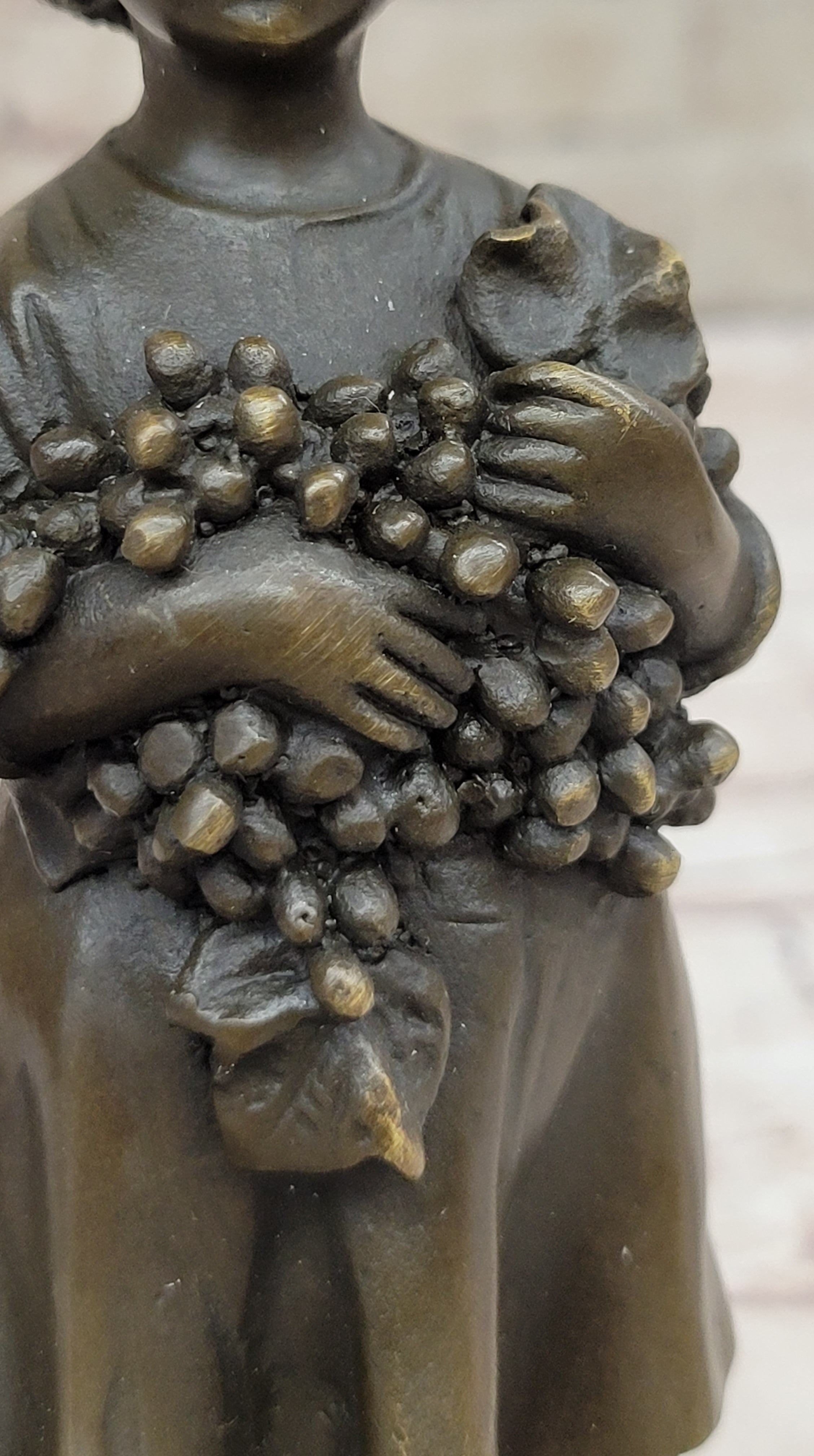 Original Vienna Girl W/ Basket of Grape Bronze Statue Sculpture Figure Figurine