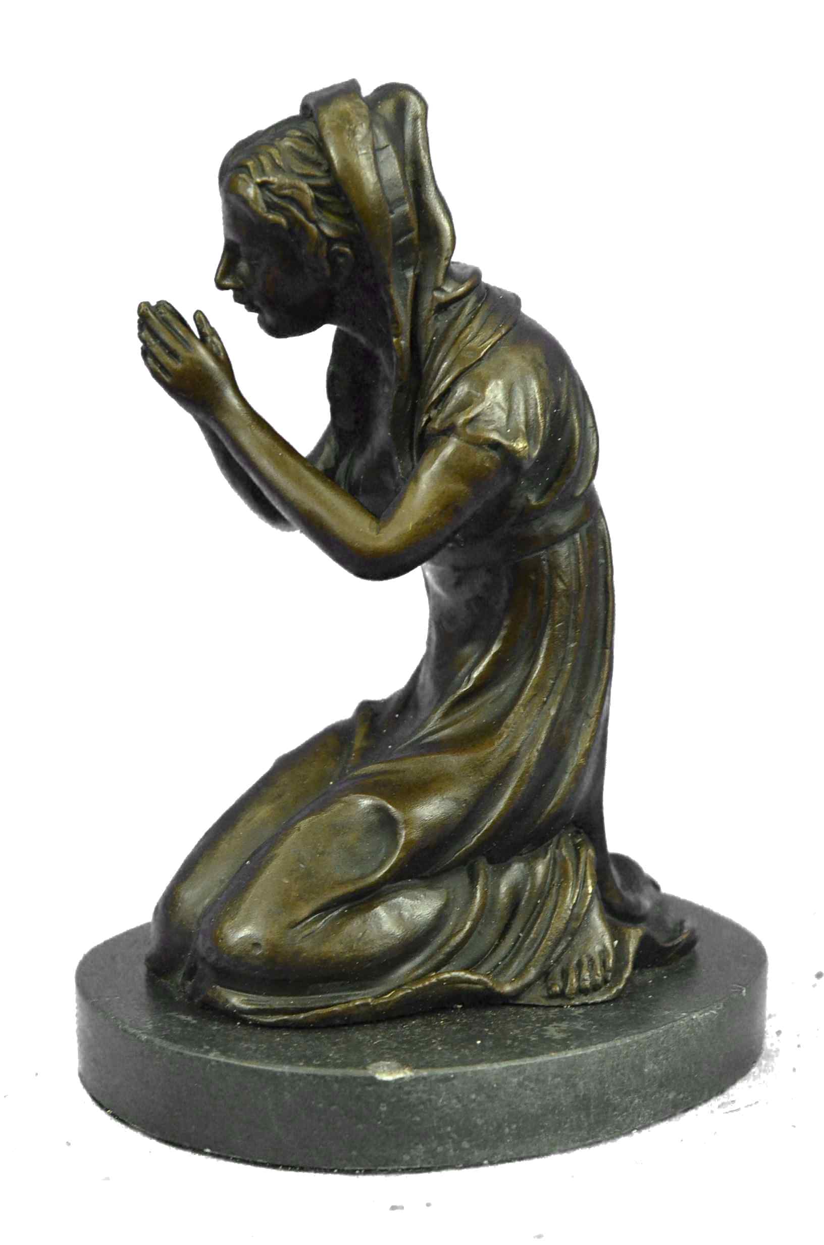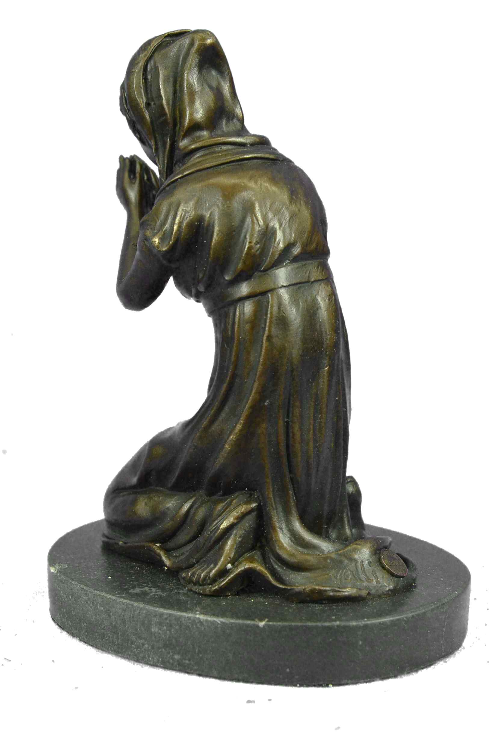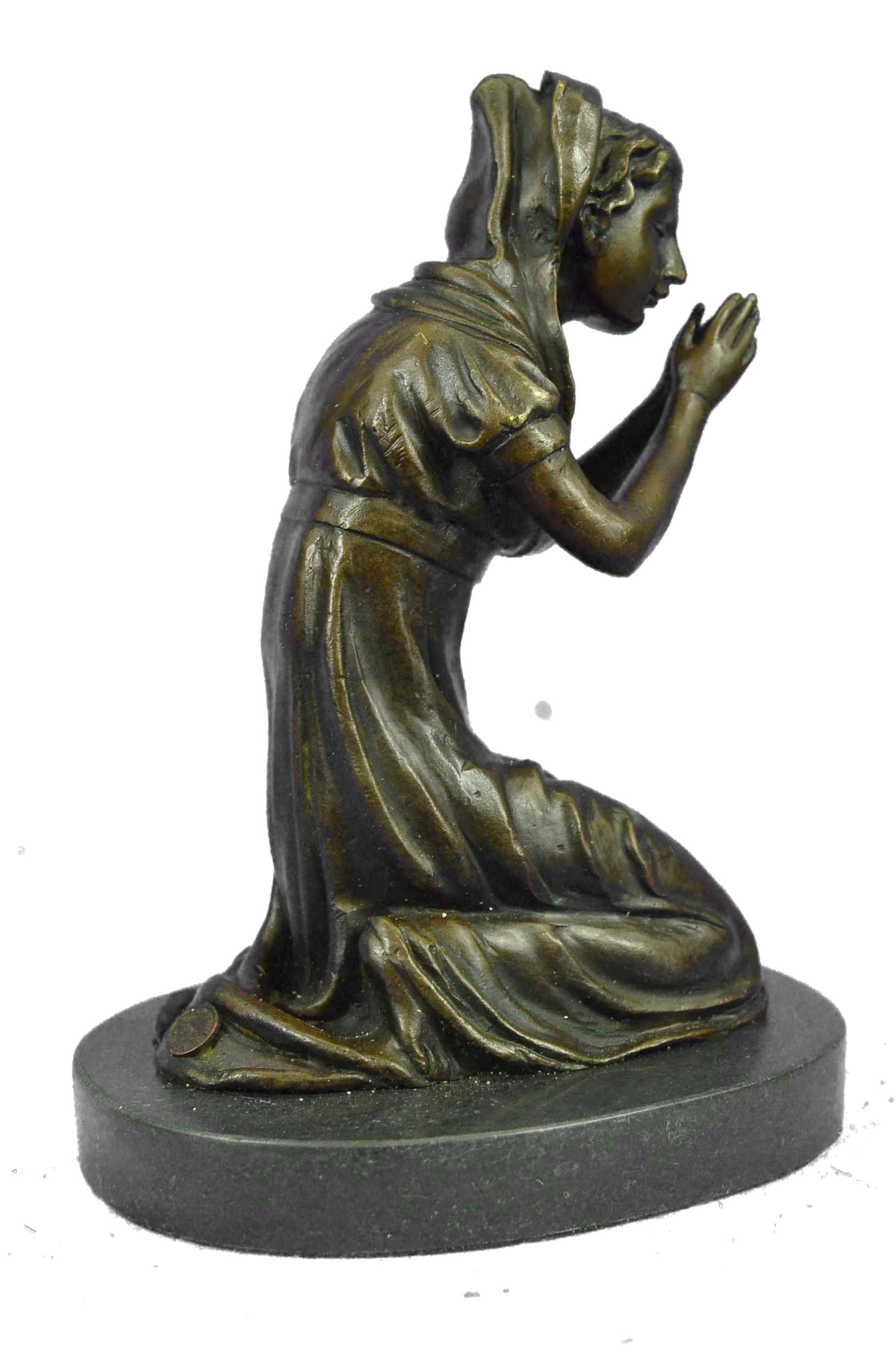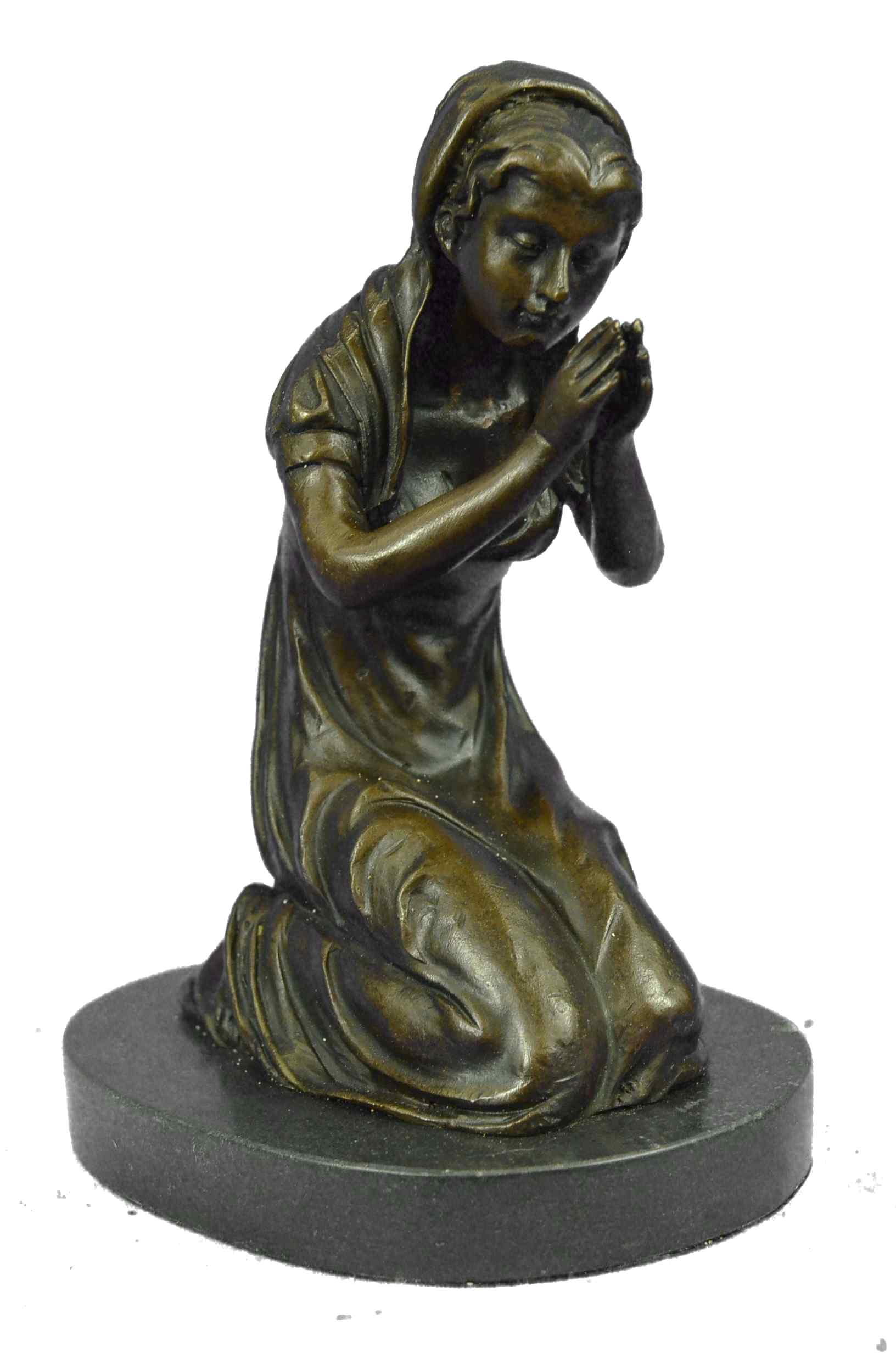 Our Blessed Mother Virgin Mary Praying Bronze Marble Base Sculpture Statue Decor