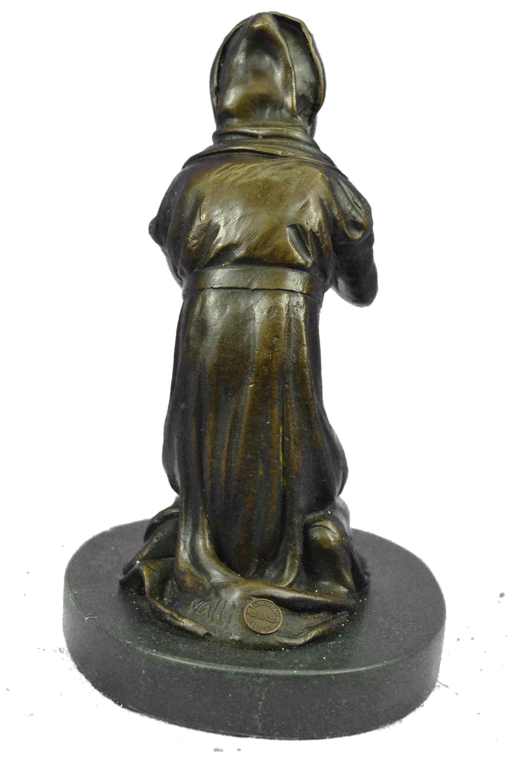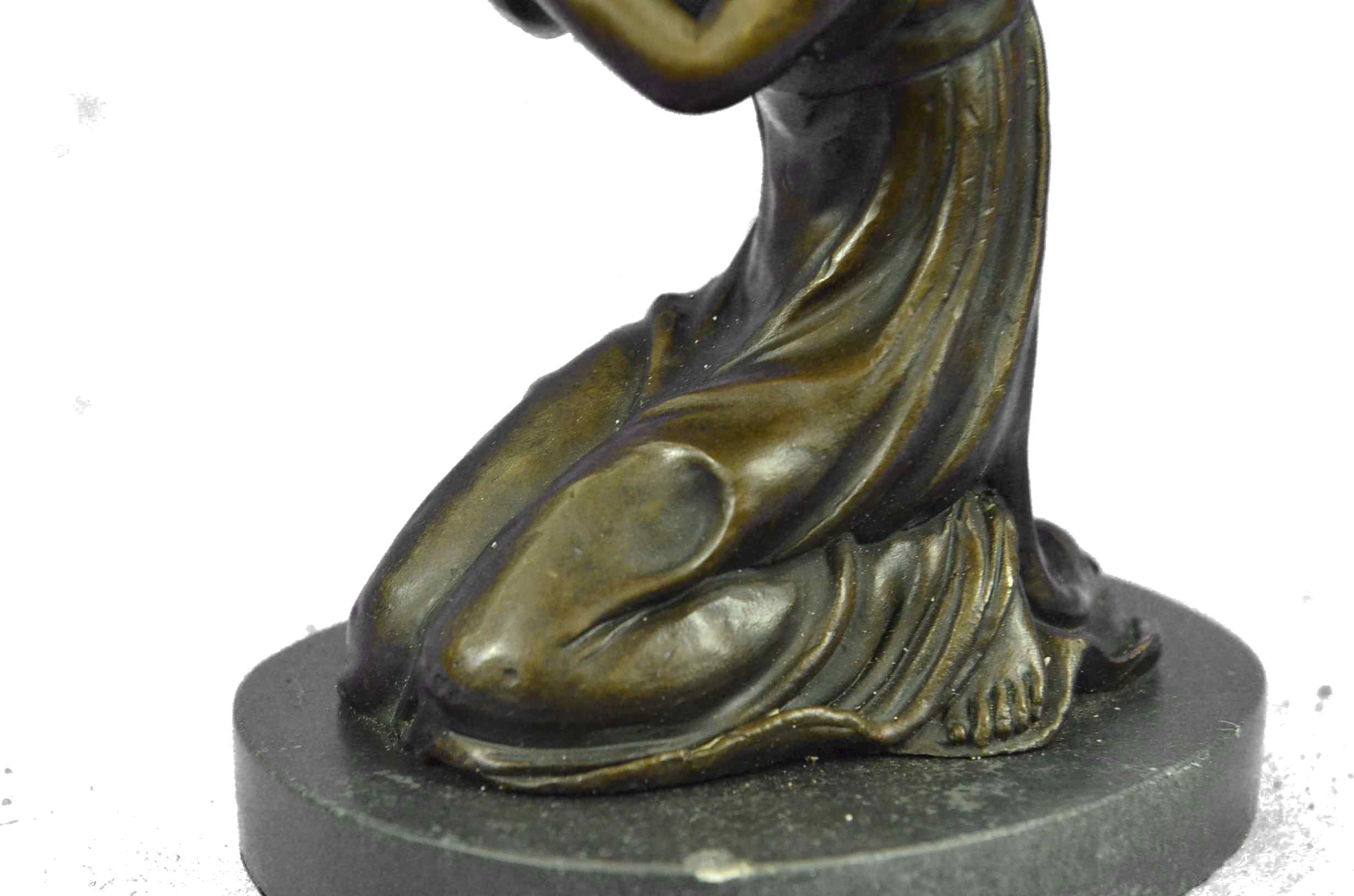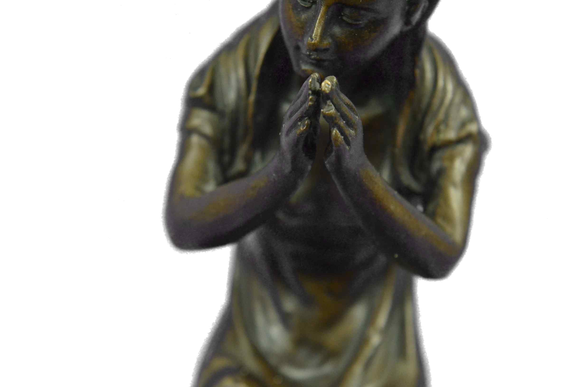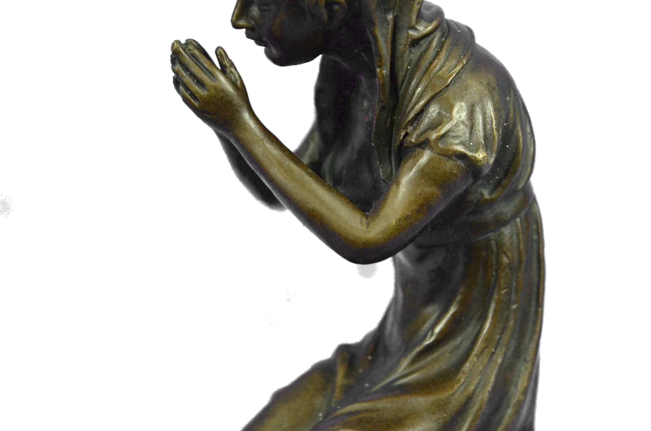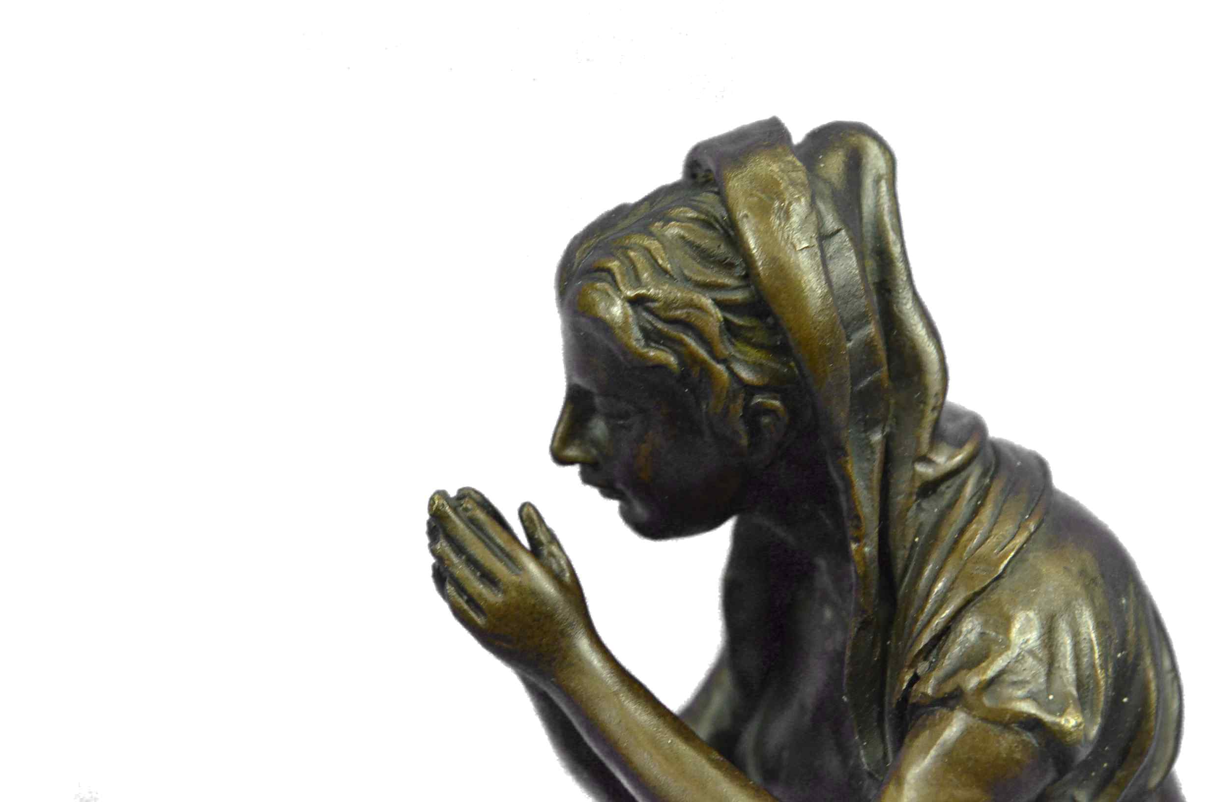 Our Blessed Mother Virgin Mary Praying Bronze Marble Base Sculpture Statue Decor