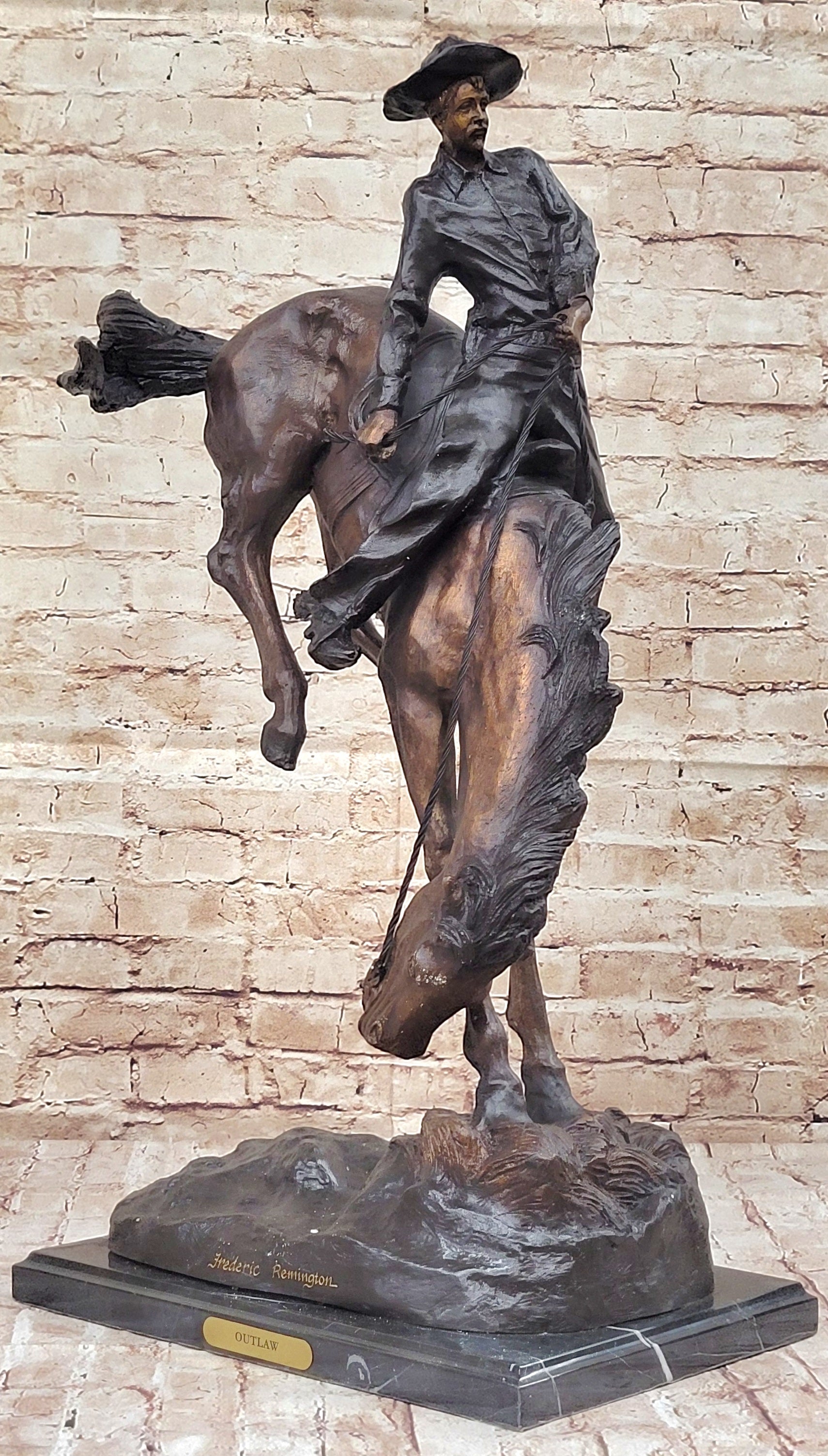OUTLAW by Frederic Remington Western Cowboy Horseback Bronze Statue Sculpture 27" x 24"