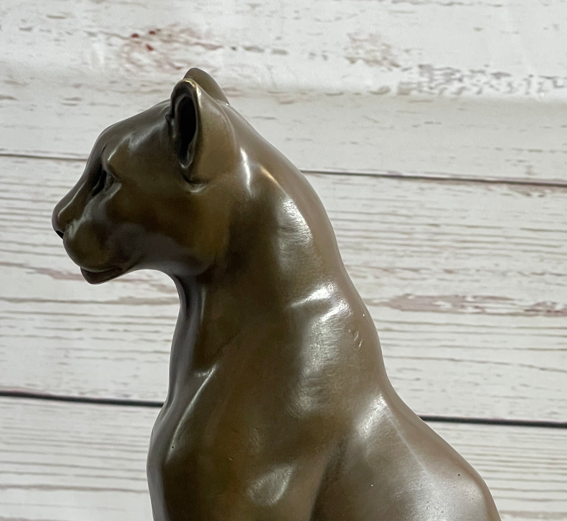Panther Puma Cougar Cat Bronze Sculpture Statue Figure on Marble Base