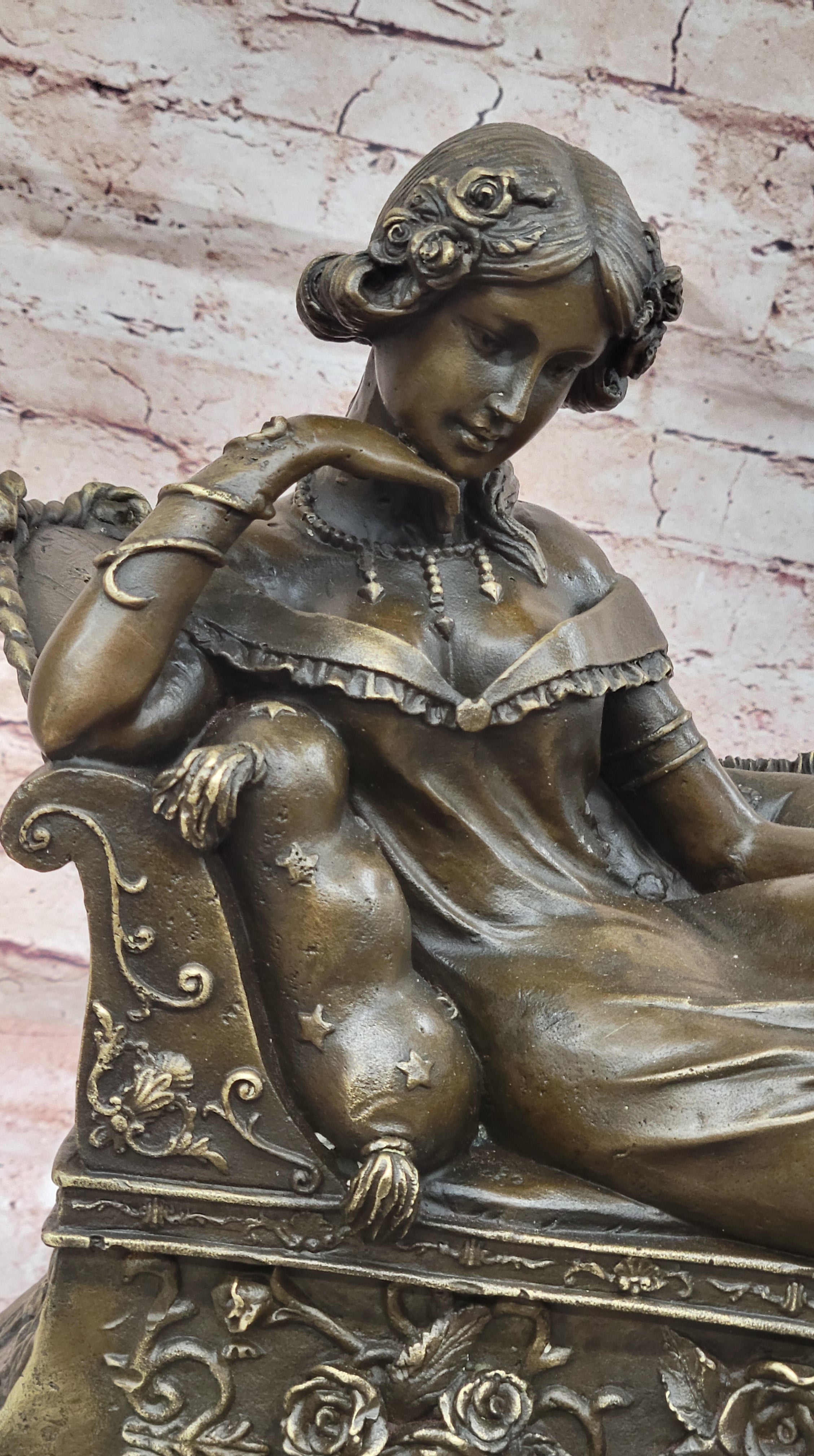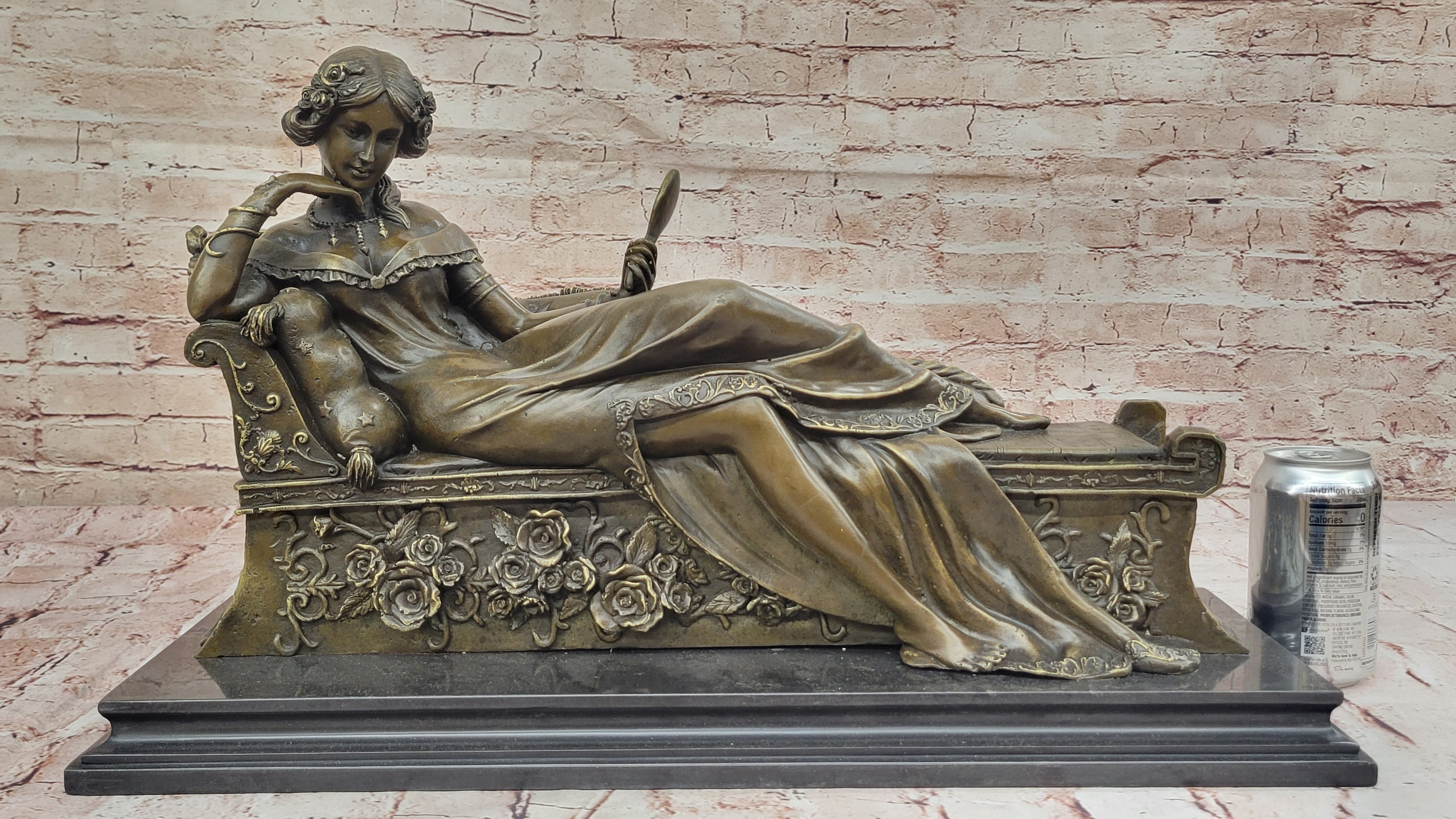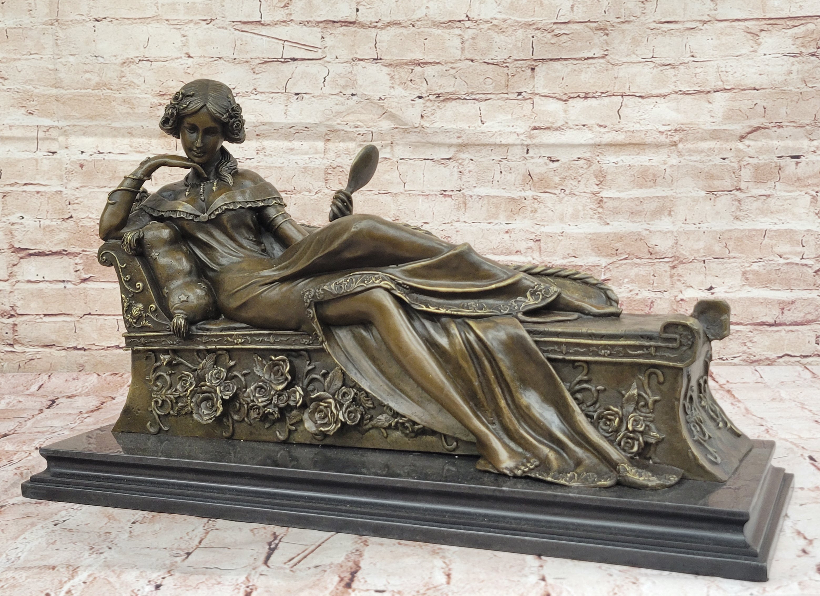 Pauline Bonaparte as Venus Victrix by Antonio Canova - Bronze Female Figure on Chaise Lounge