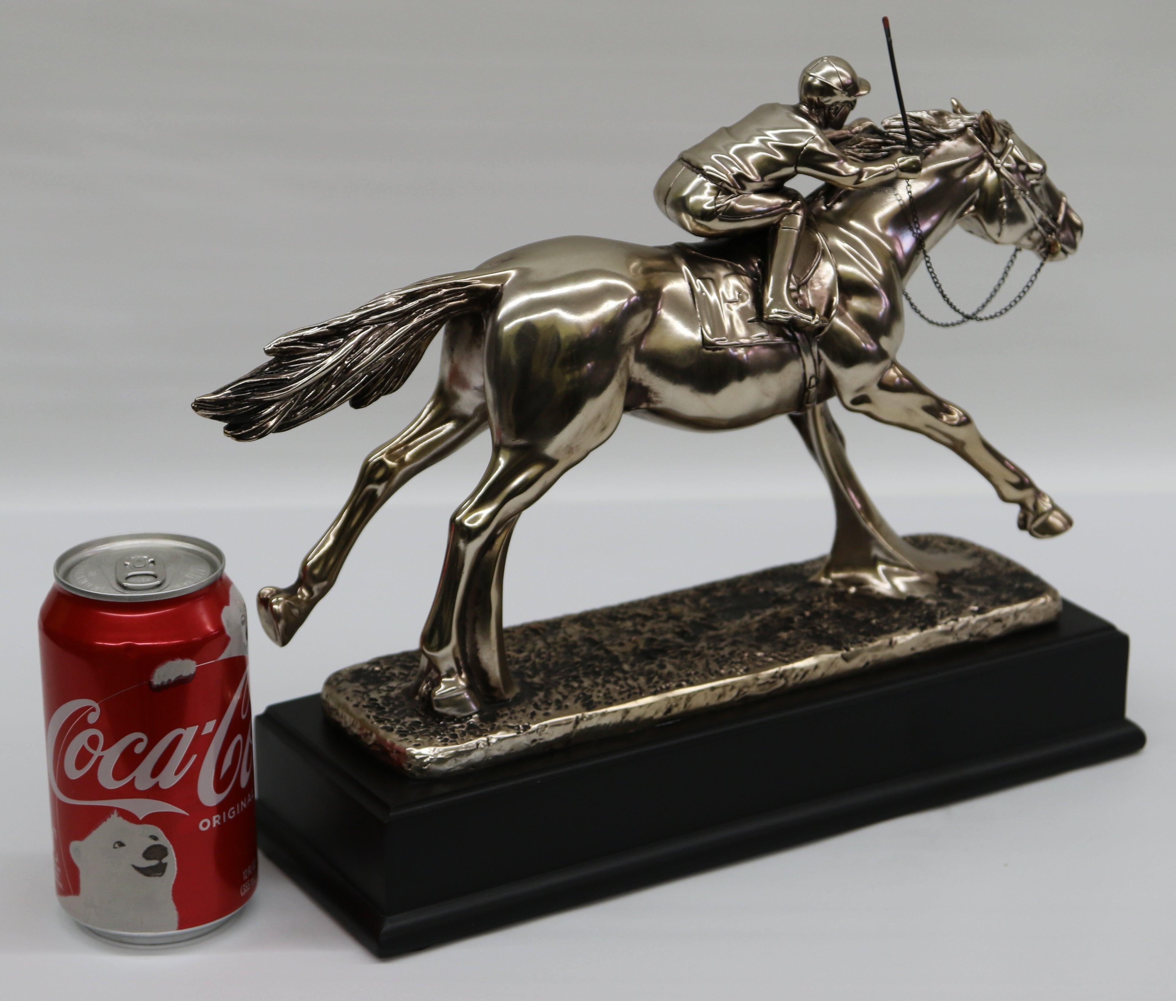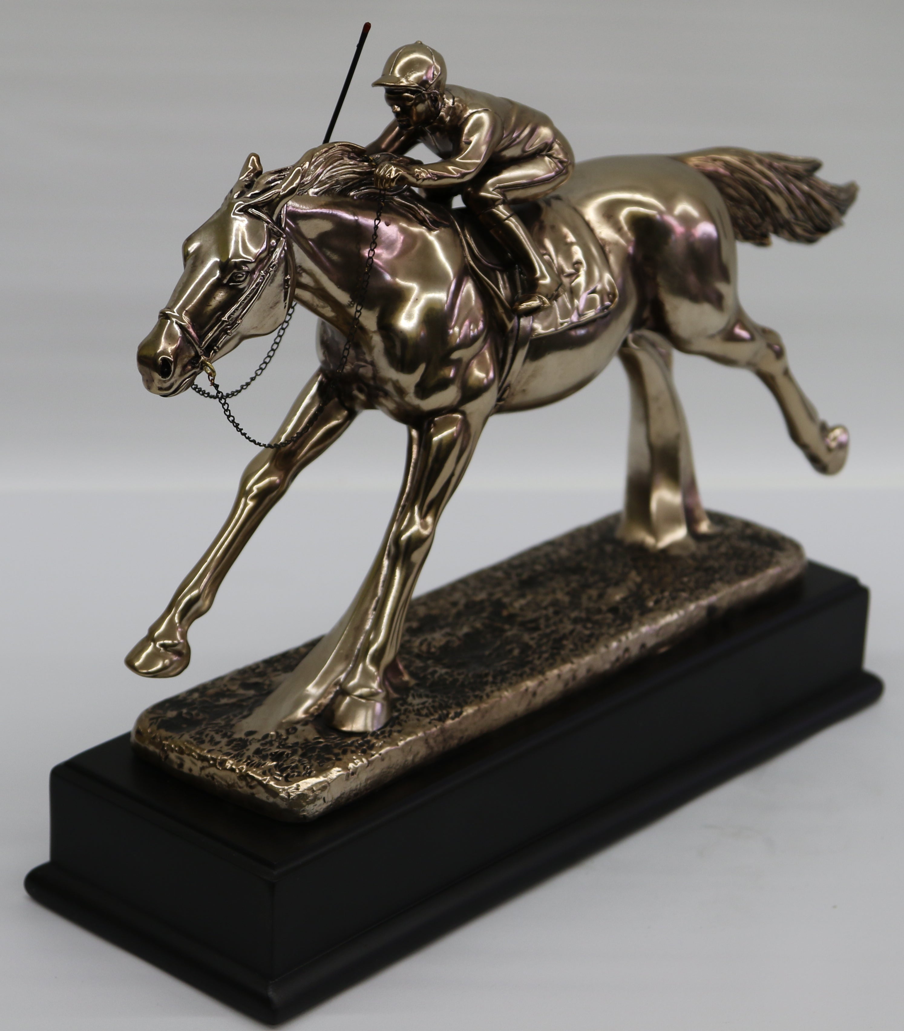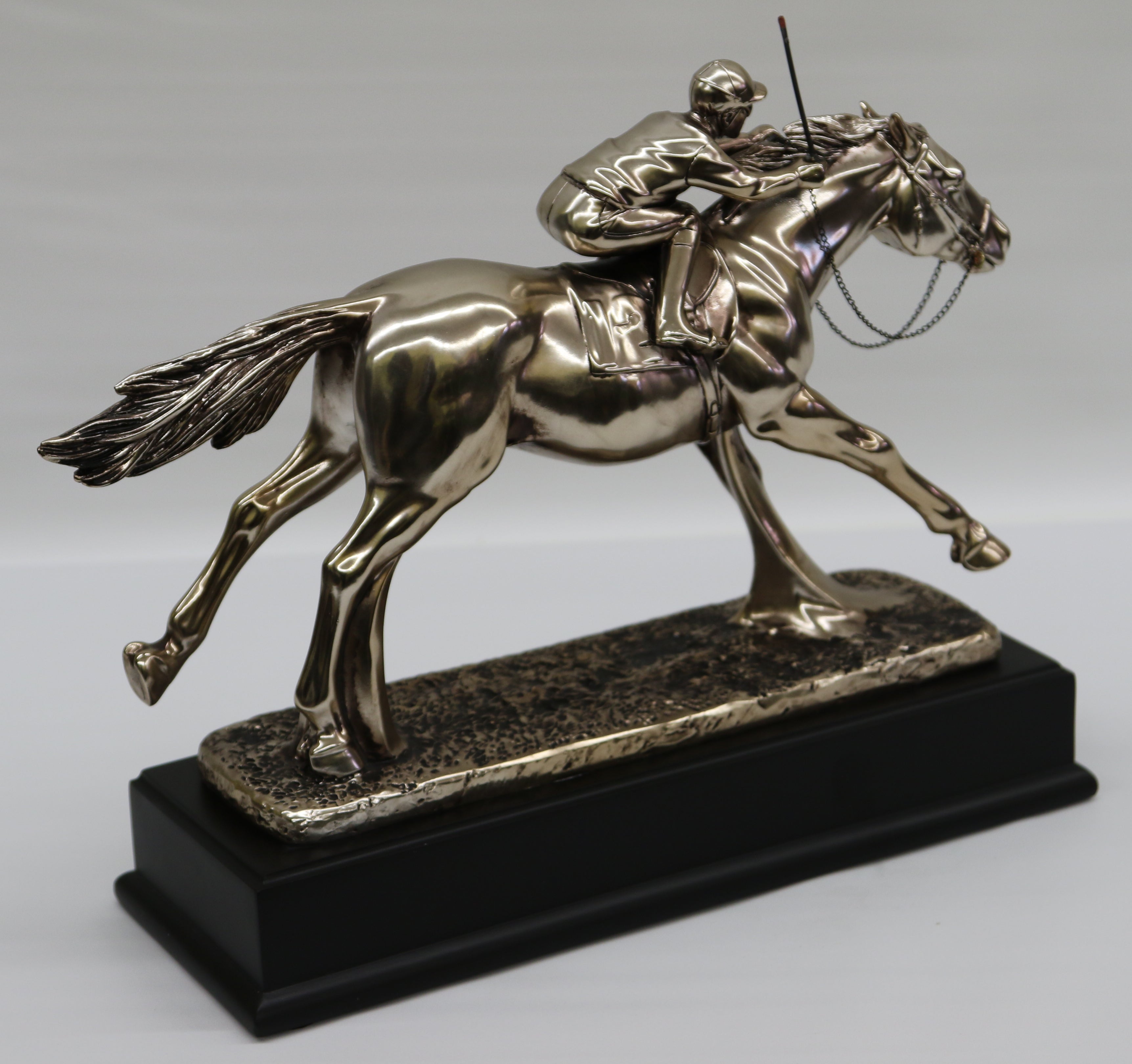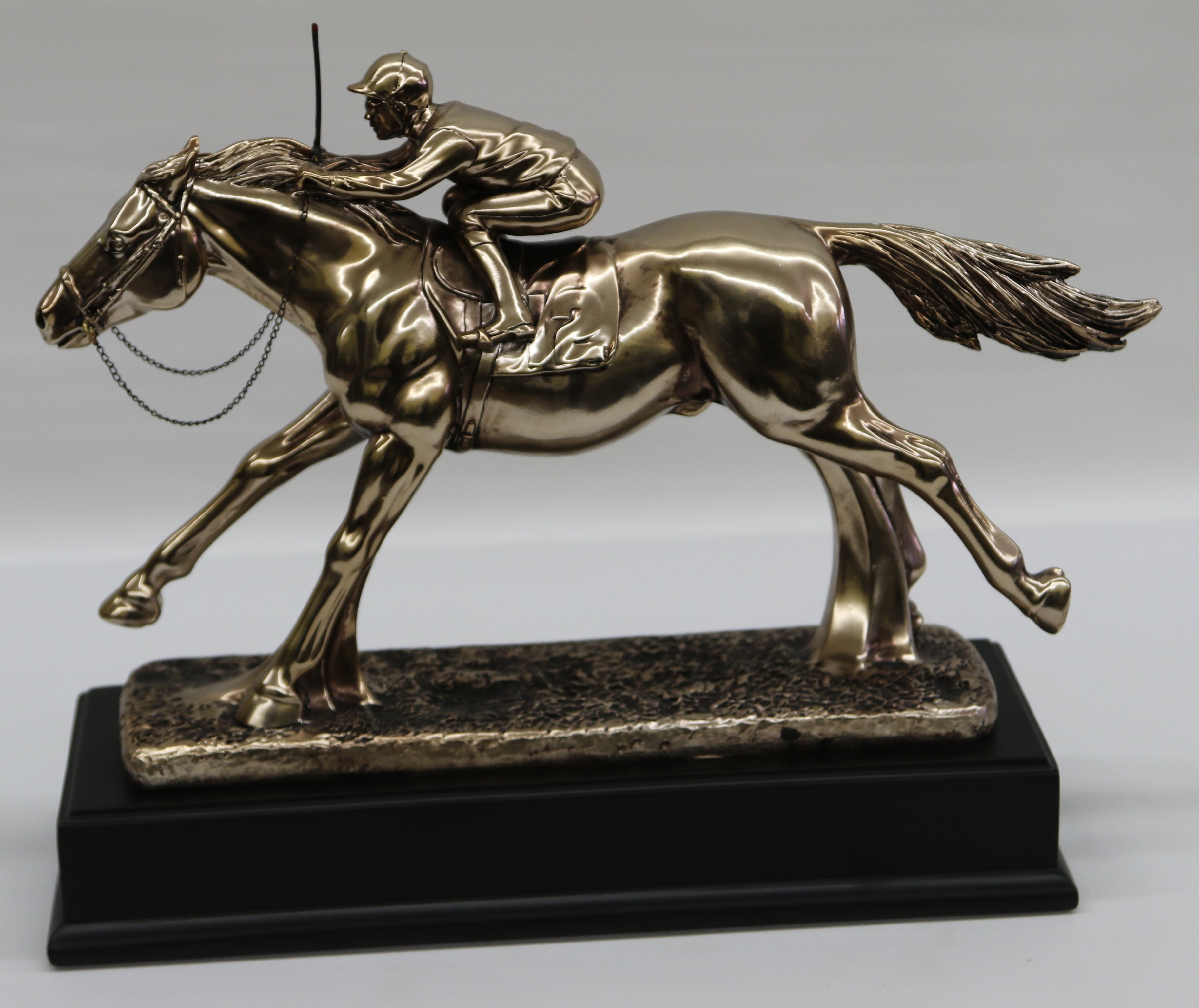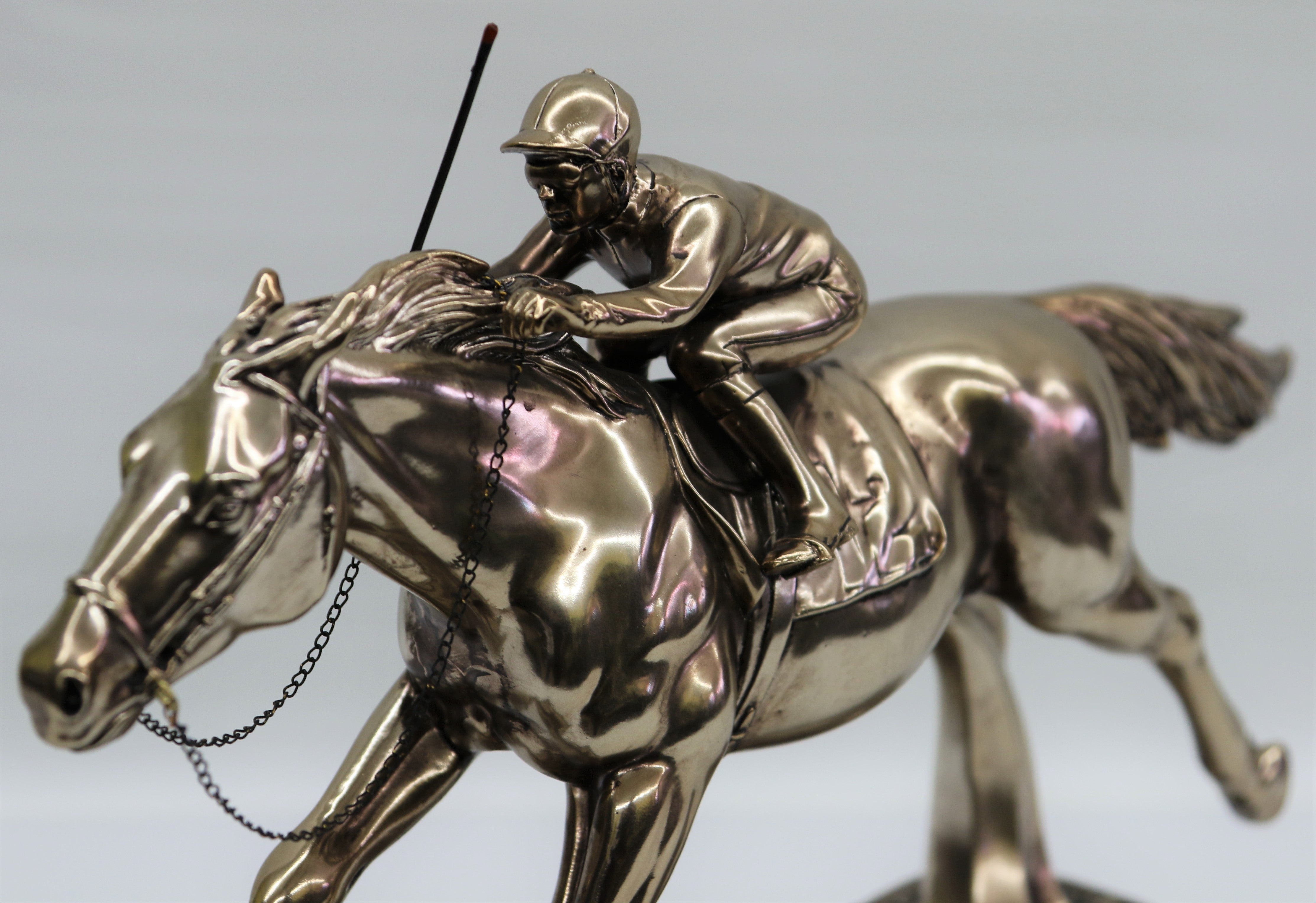 RACEHORSE & JOCKEY UNDER STARTERS ORDERS 34 CM BRONZE FINISH SCULPTURE FIGURINE