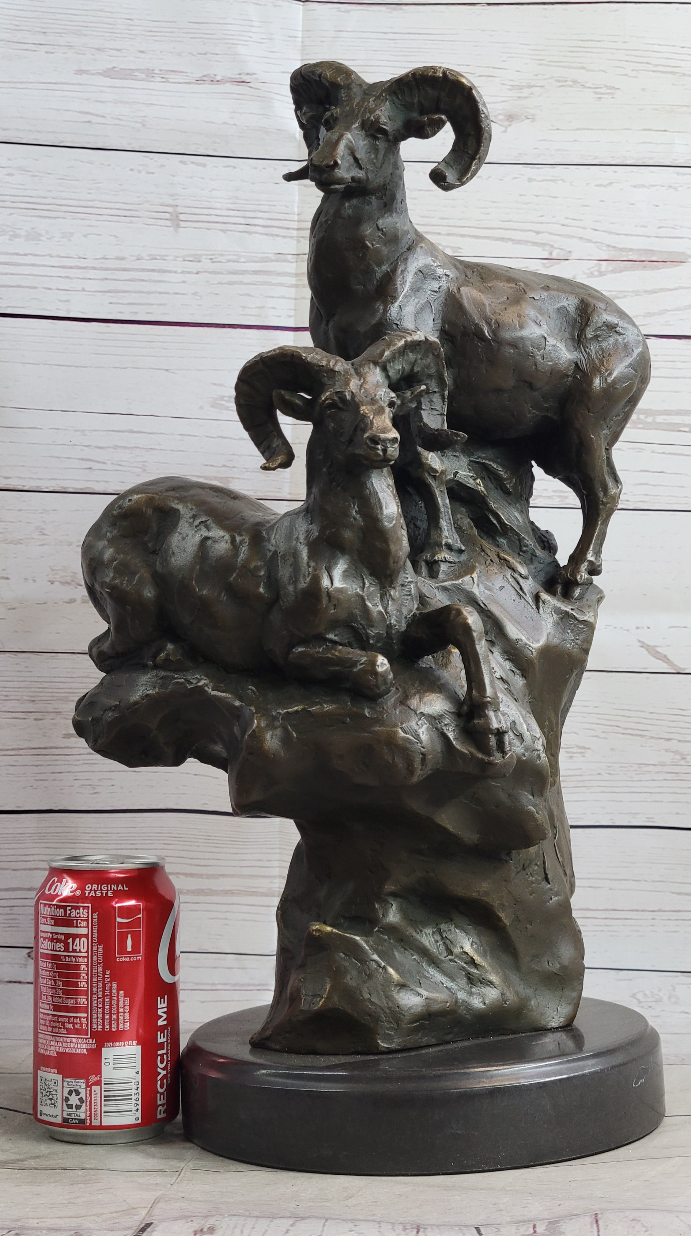 Enter the breathtaking realm of natural splendor with this mesmerizing bronze sculpture depicting two majestic rams perched atop the rugged cliffs of a mountain, evoking a sense of serene tranquility and boundless freedom. Meticulously handcrafted with exceptional attention to detail, the sculpture captures the essence of these remarkable creatures, celebrating their grace and power in an awe-inspiring display of artistry and craftsmanship.