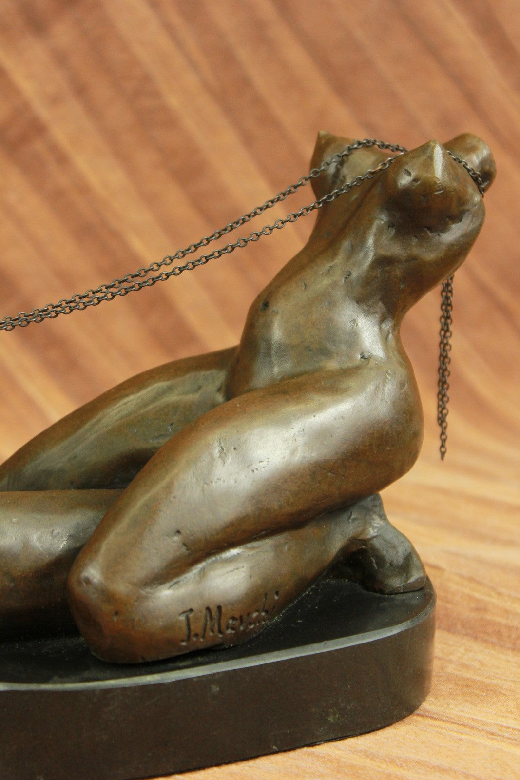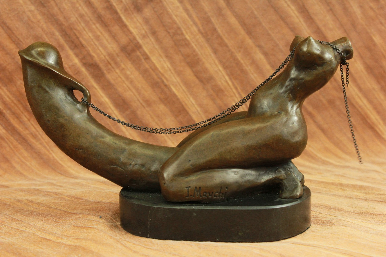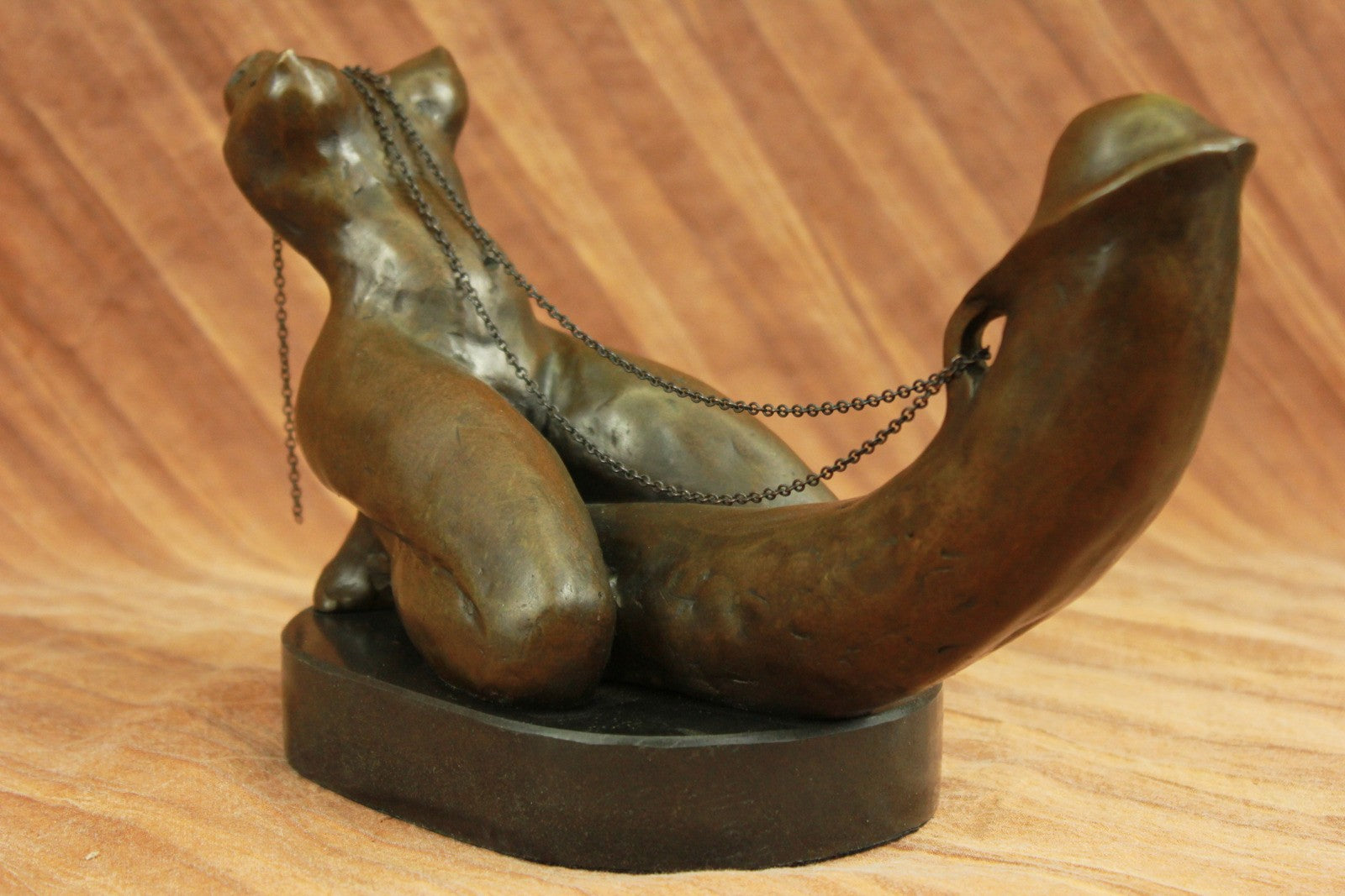 A woman`s erotic fantasy comes to life as she rides that there is no tomorrow. With the lust of a man but intense desire of a woman, a young woman embraces a penis lovingly. Her body molds perfectly against it as she rides around the shaft and hugs it like she would her own lover. Her back arches and she pokes her butt out as she kneels. This handmade 100% bronze sculpture is in a grey patina and was cast using the "Lost Wax Method" with careful attention paid to details and is signed by artist Mavchi.Bronze Dimensions with Marble Base:Height 6.5" x Width 12"