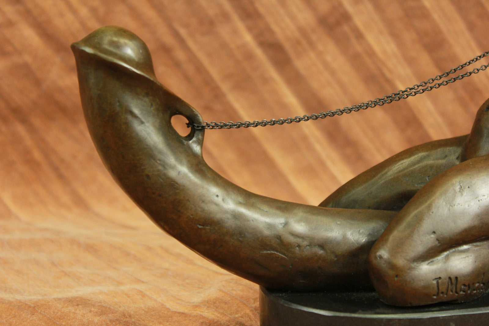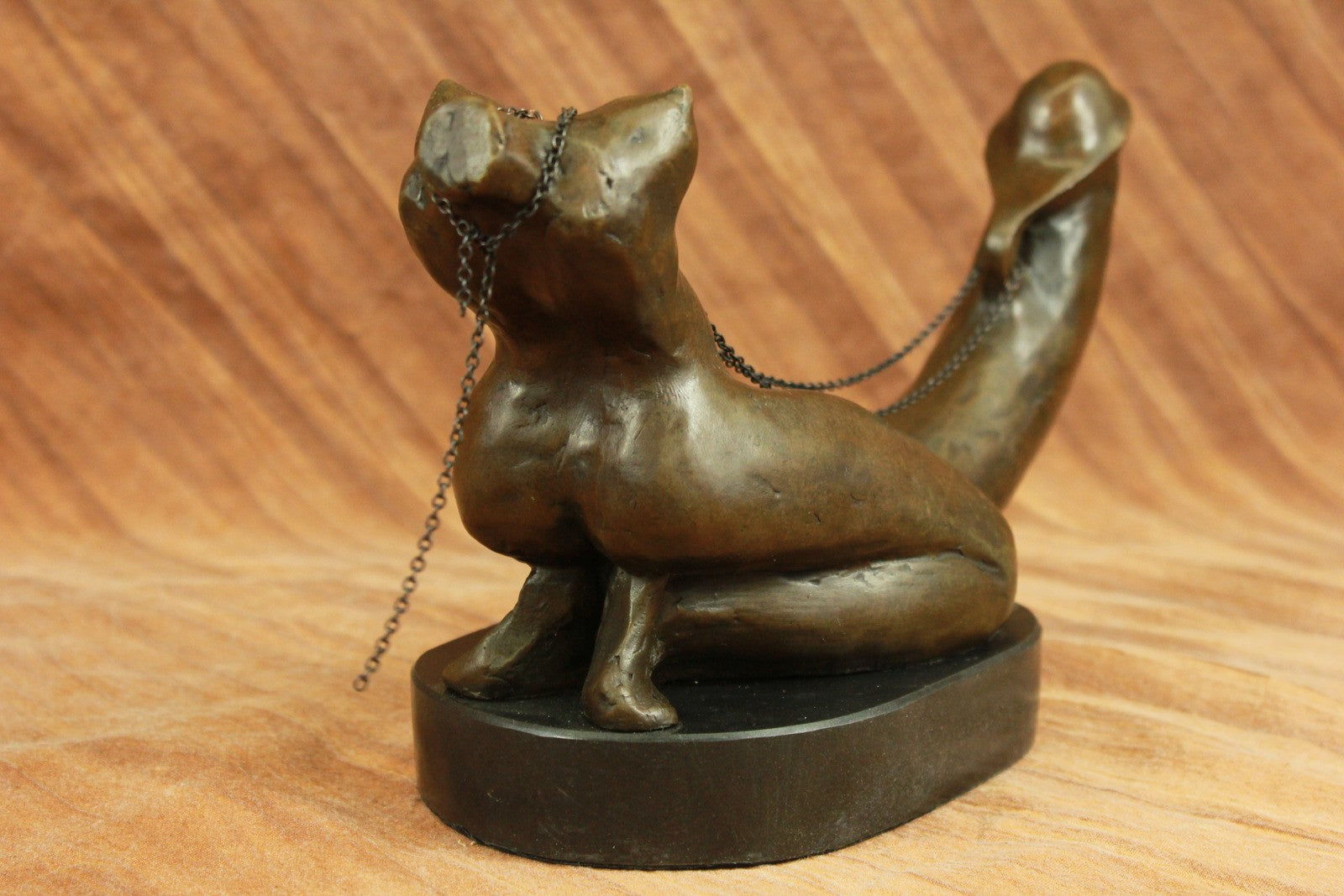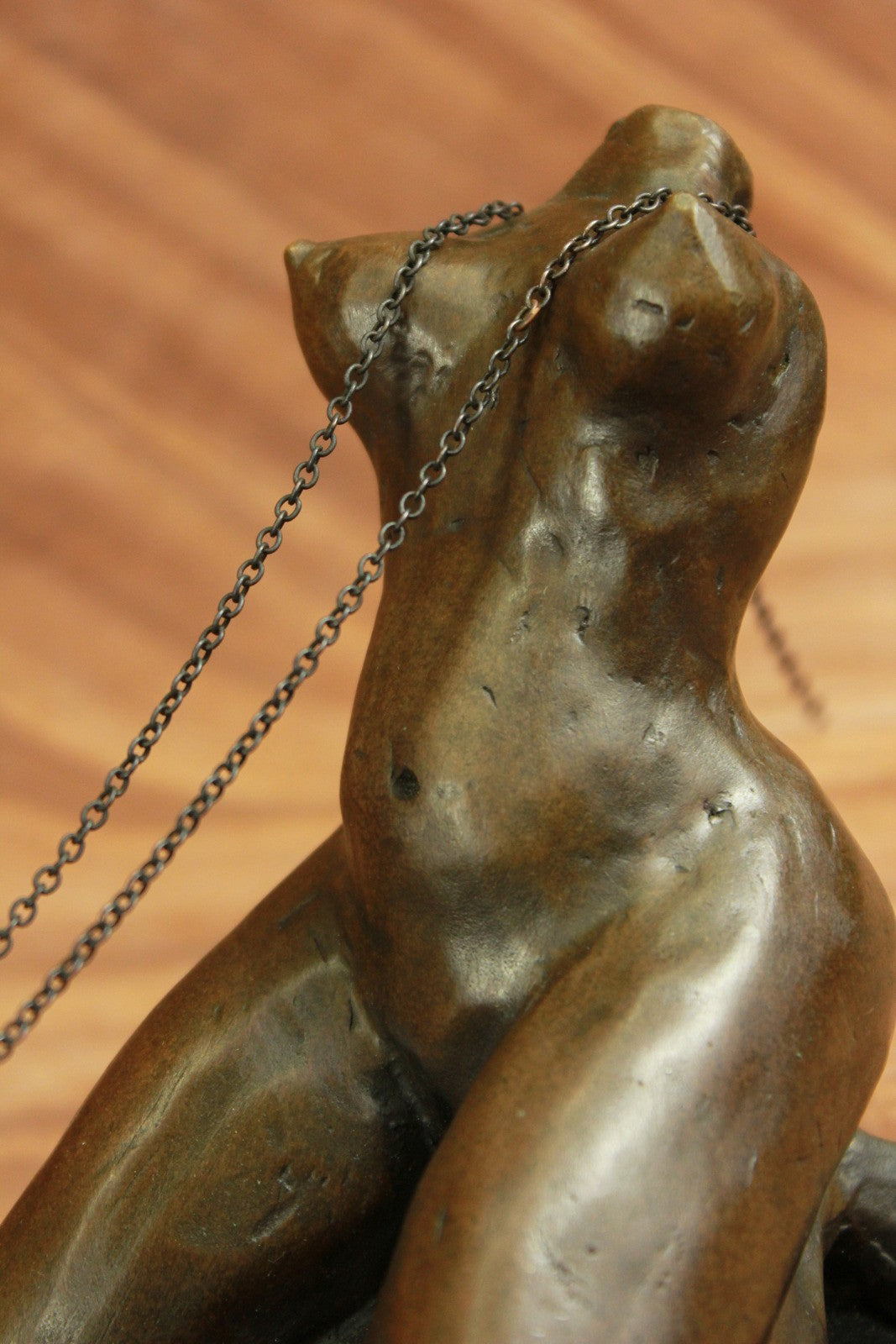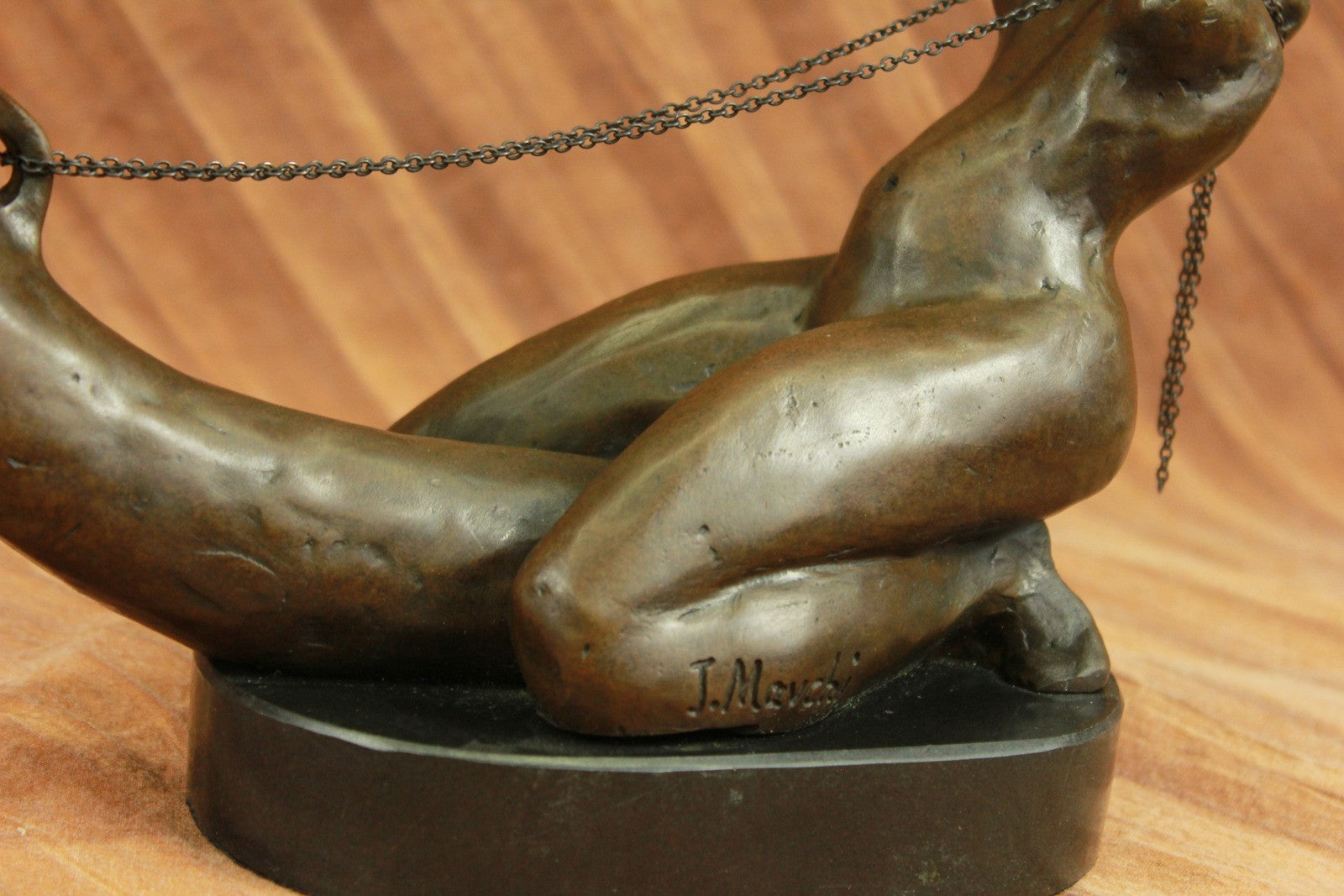 A woman`s erotic fantasy comes to life as she rides that there is no tomorrow. With the lust of a man but intense desire of a woman, a young woman embraces a penis lovingly. Her body molds perfectly against it as she rides around the shaft and hugs it like she would her own lover. Her back arches and she pokes her butt out as she kneels. This handmade 100% bronze sculpture is in a grey patina and was cast using the "Lost Wax Method" with careful attention paid to details and is signed by artist Mavchi.Bronze Dimensions with Marble Base:Height 6.5" x Width 12"