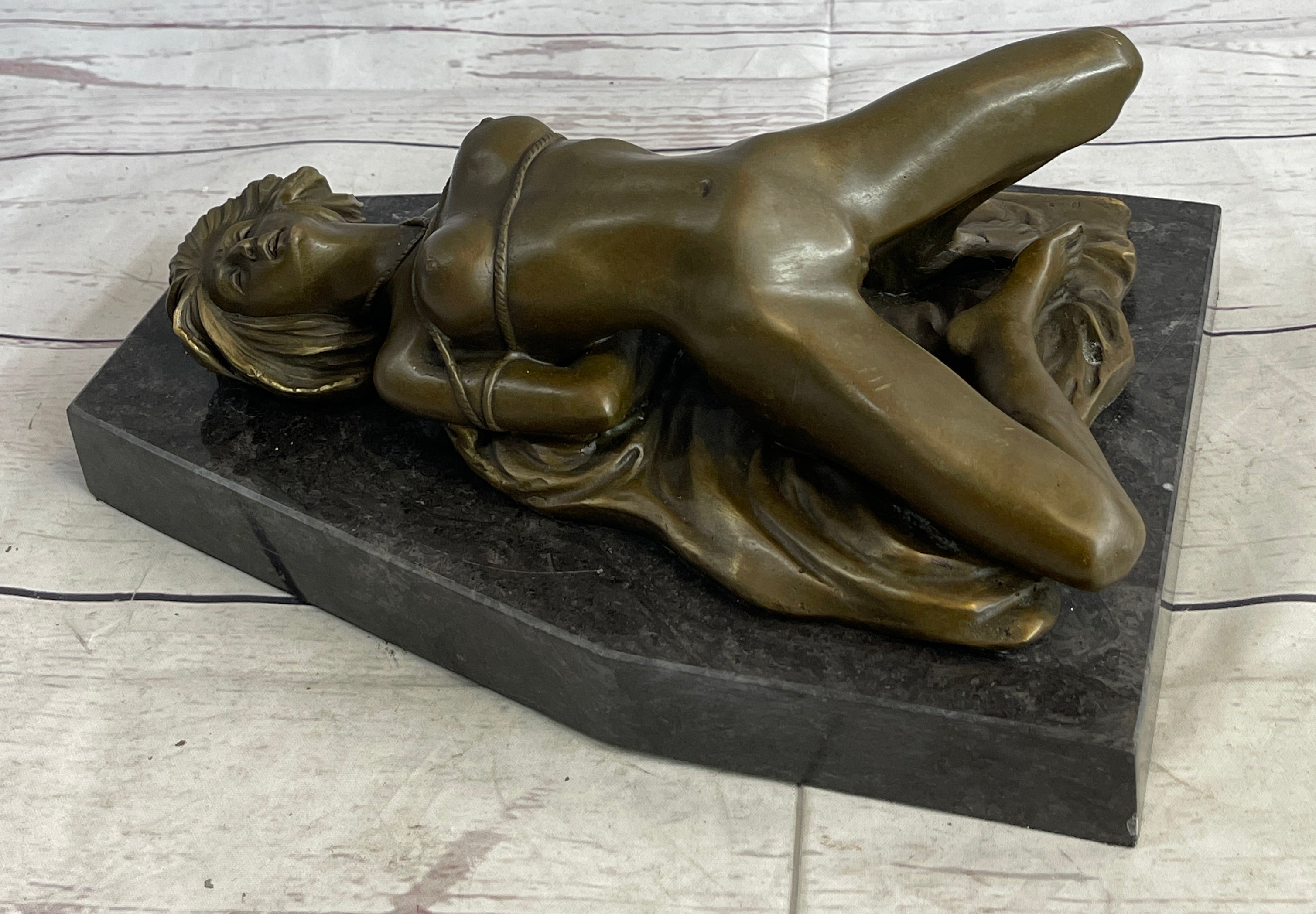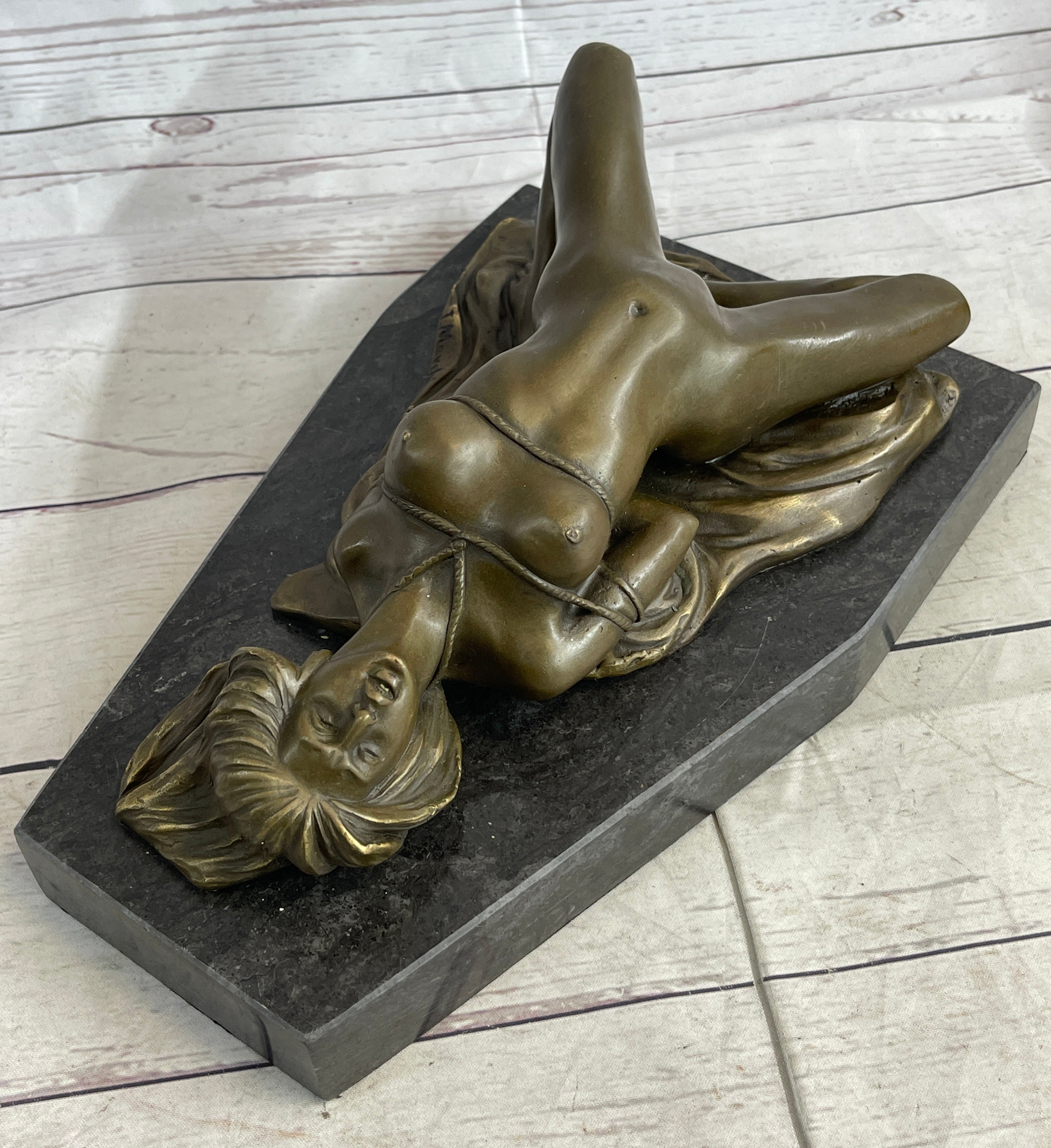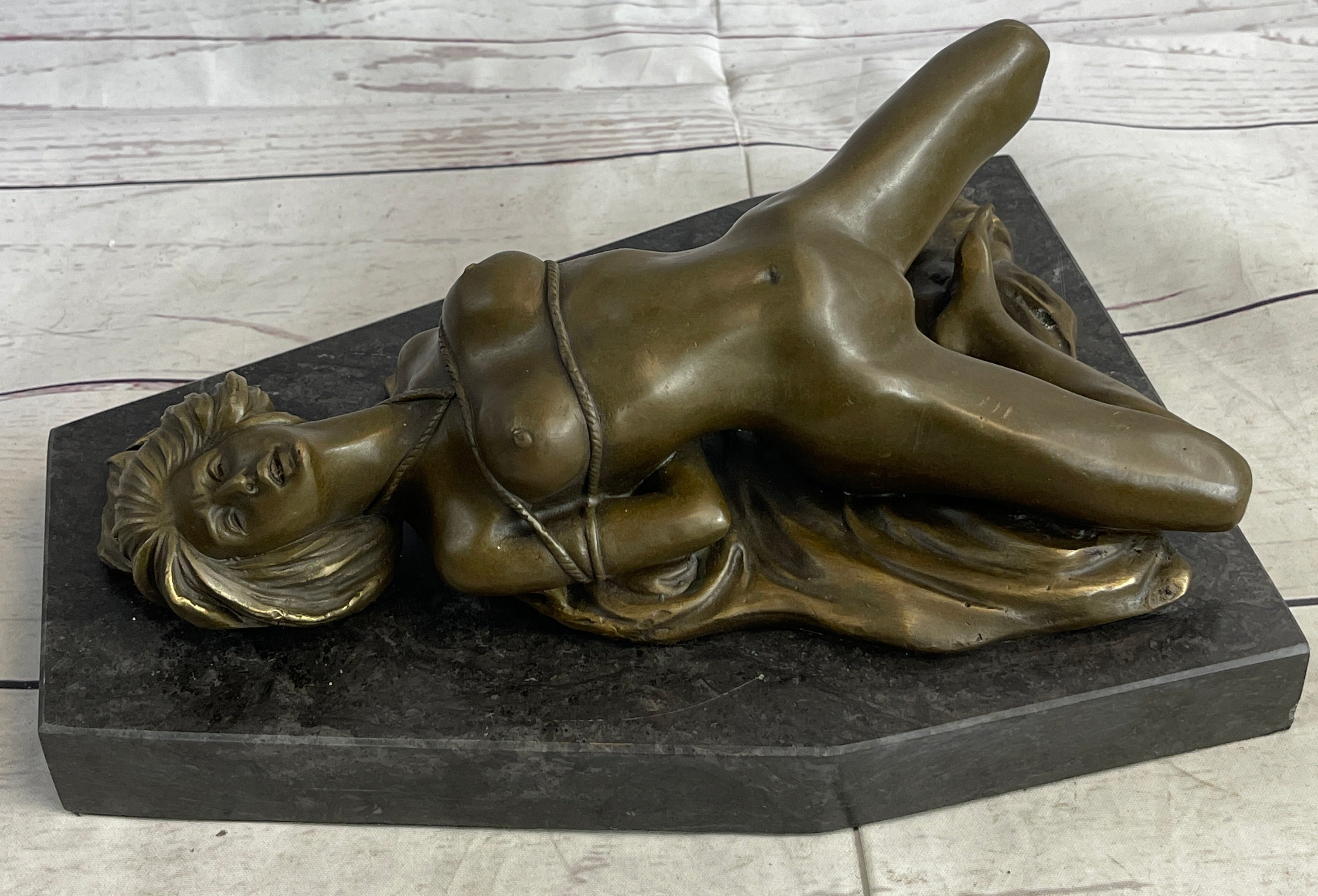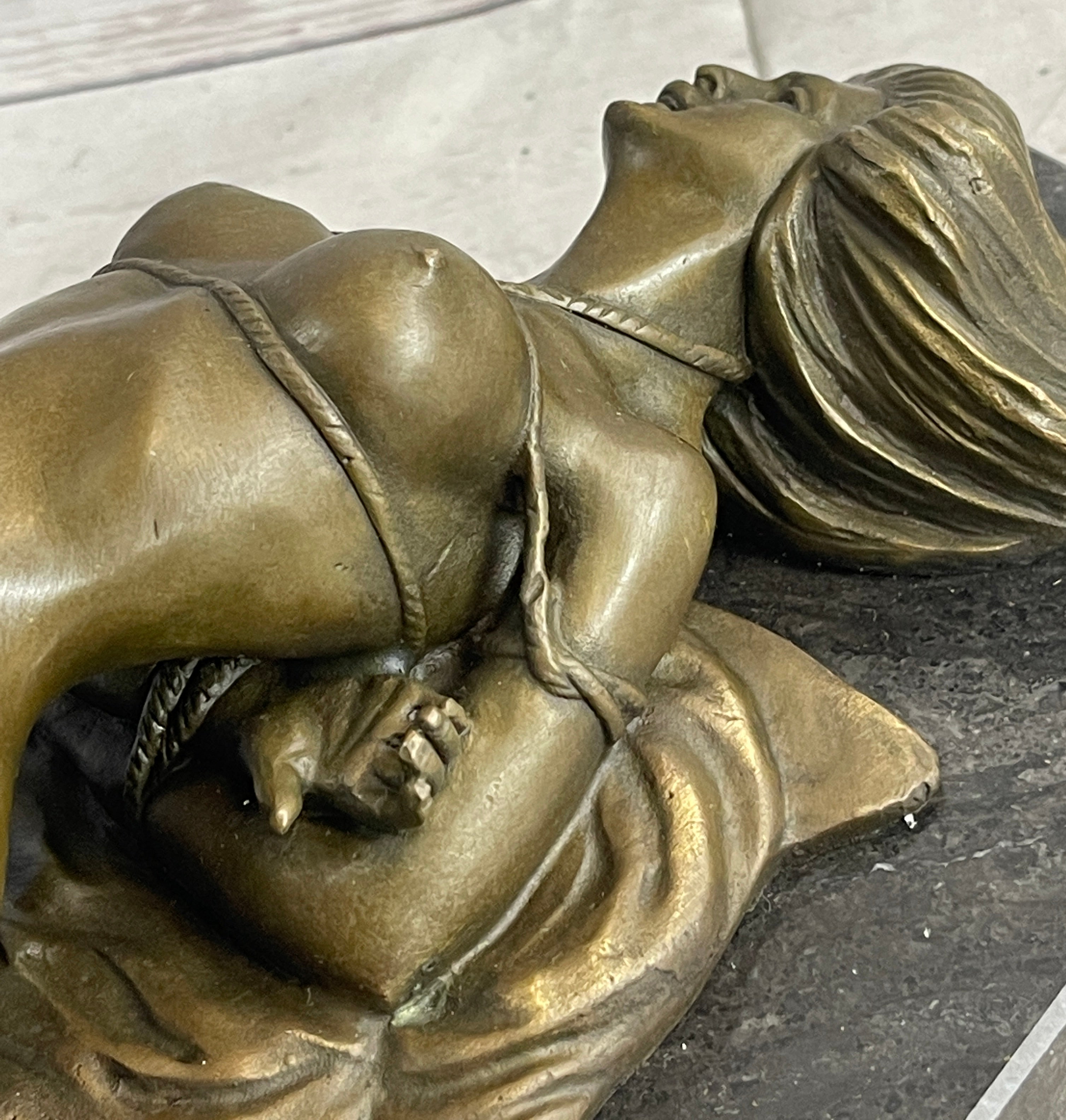 Erotic Art Bondage Girl Tied Up S&M Sex Bronze Sculpture Statue Decor Signed Original