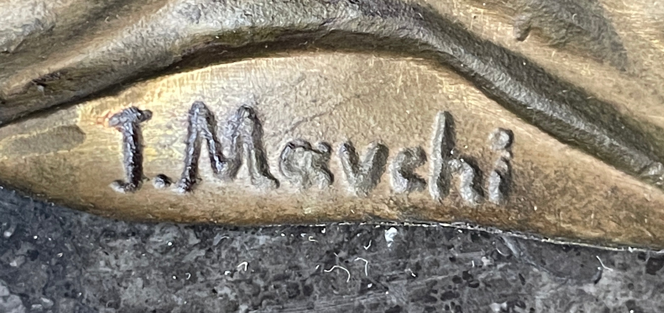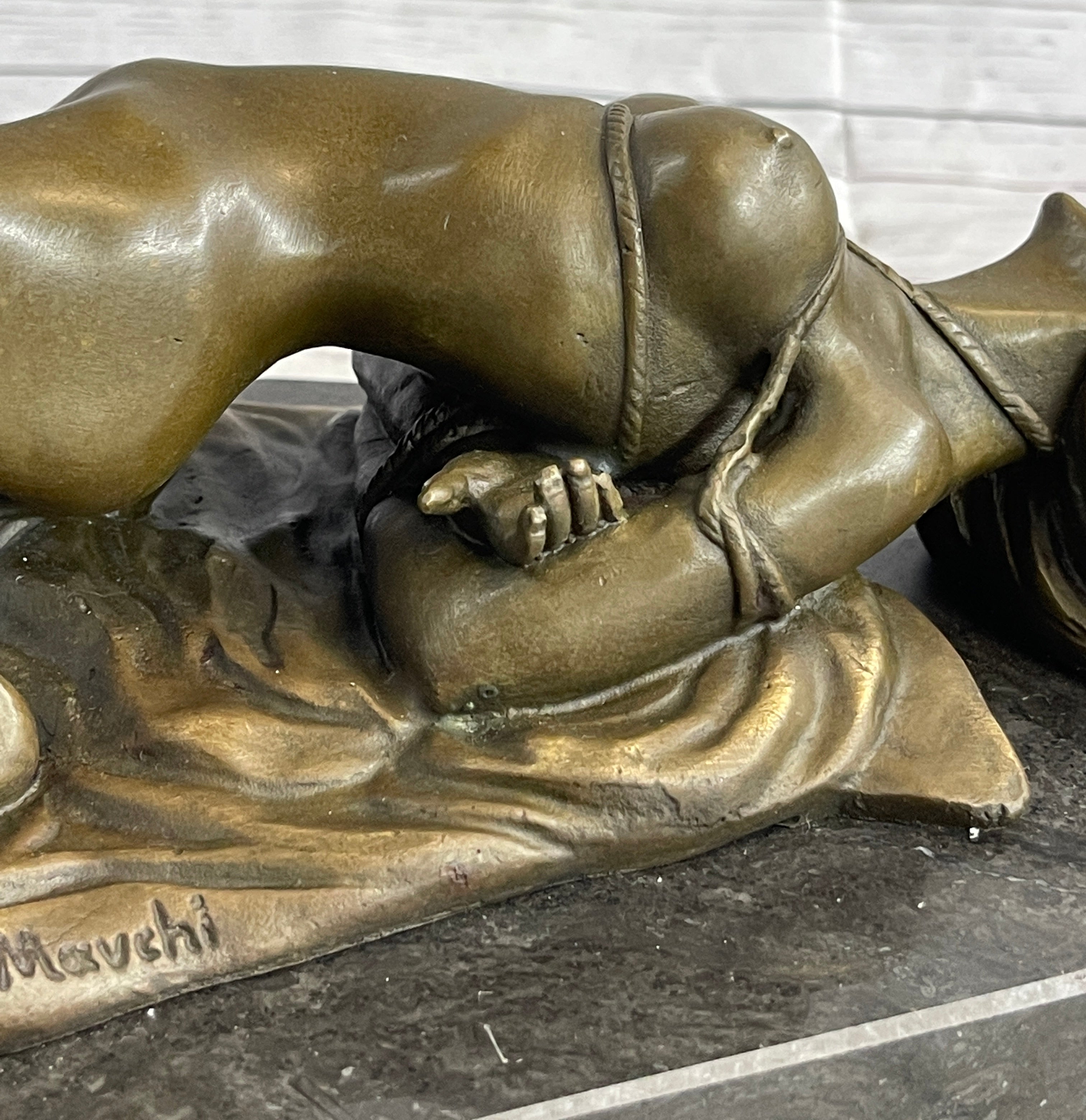 Crafted using the revered "Lost Wax Method," this sculpture is made from 100% bronze, ensuring both durability and intricate detailing. The rich brown patina finish enhances its timeless appeal, and the sculpture is elegantly mounted on a black marble base, adding a touch of sophistication to its presentation. It bears the signature of the talented artist Mavchi, emphasizing its authenticity and artistic value.
