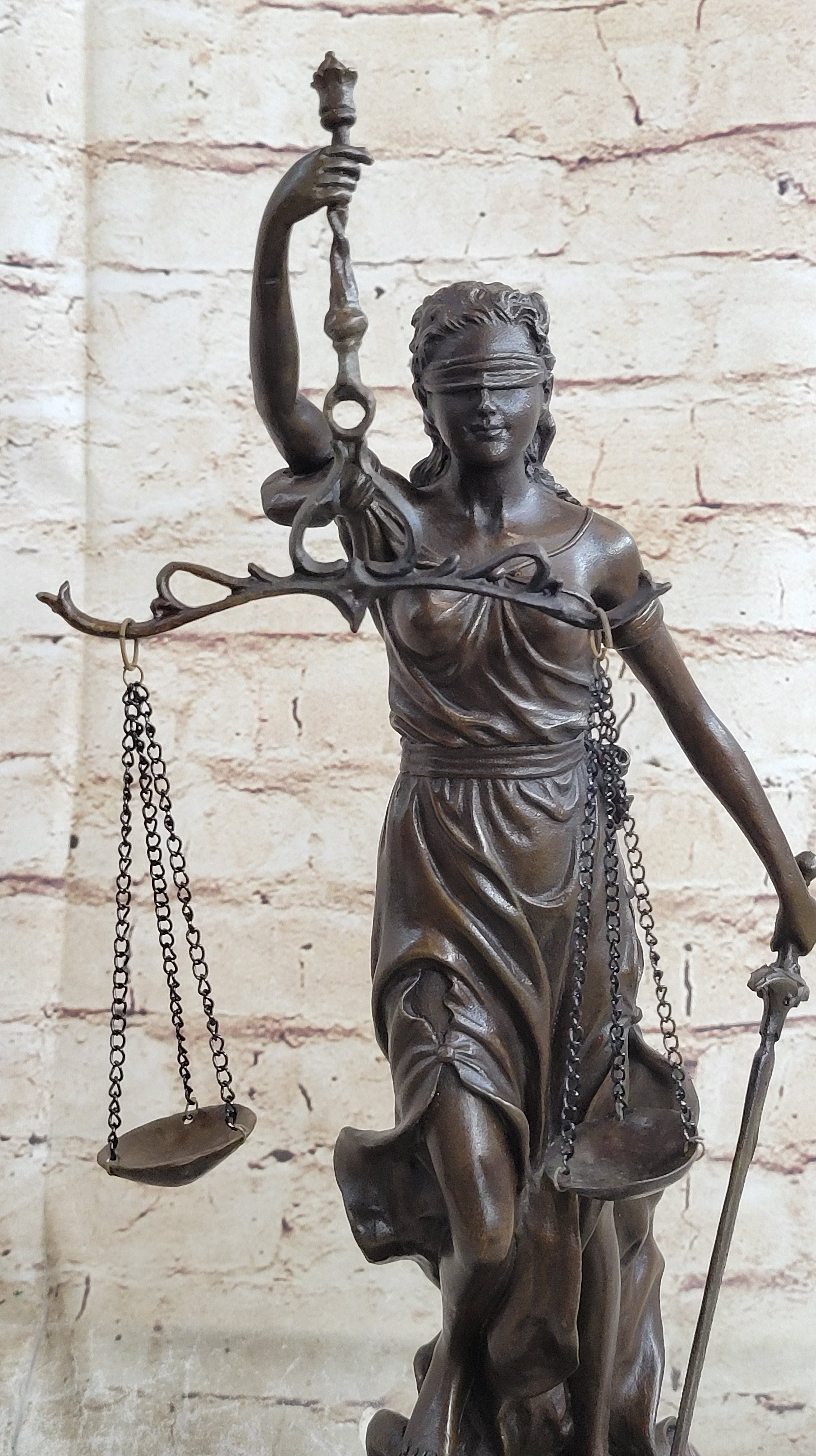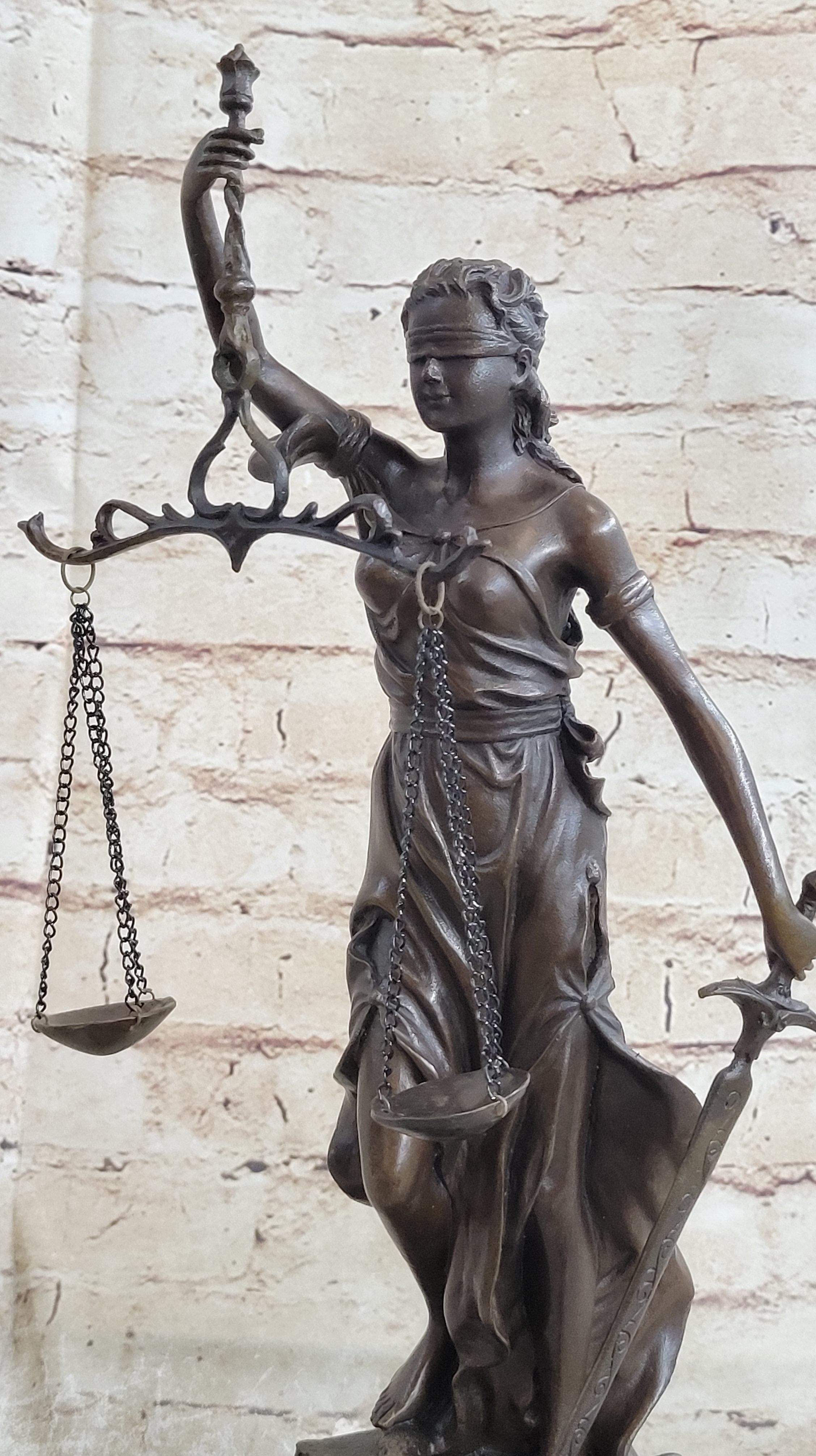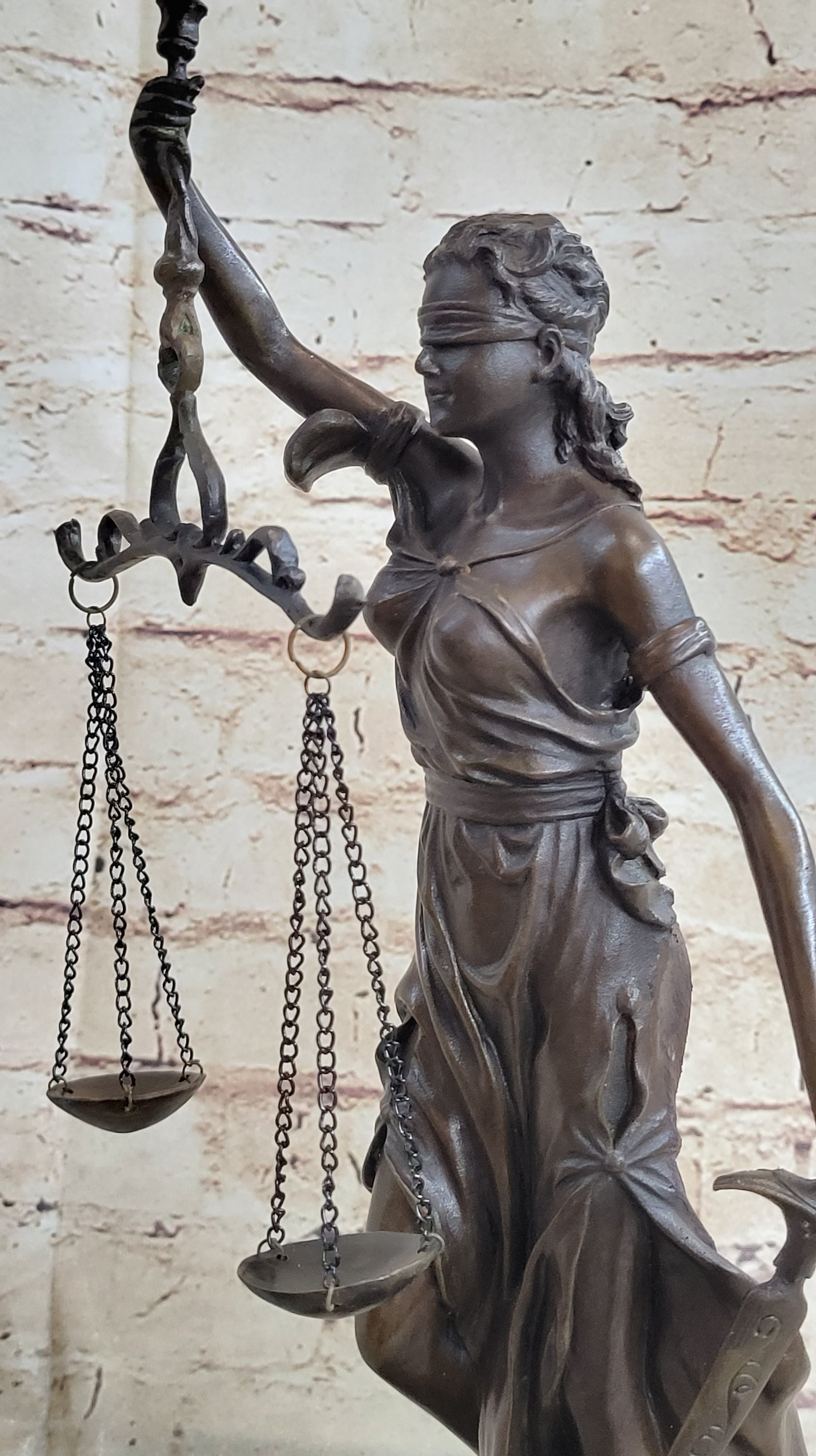 Real Bronze Metal Statue with Marble Lady Blind Justice Scales Lawyer Sculpture