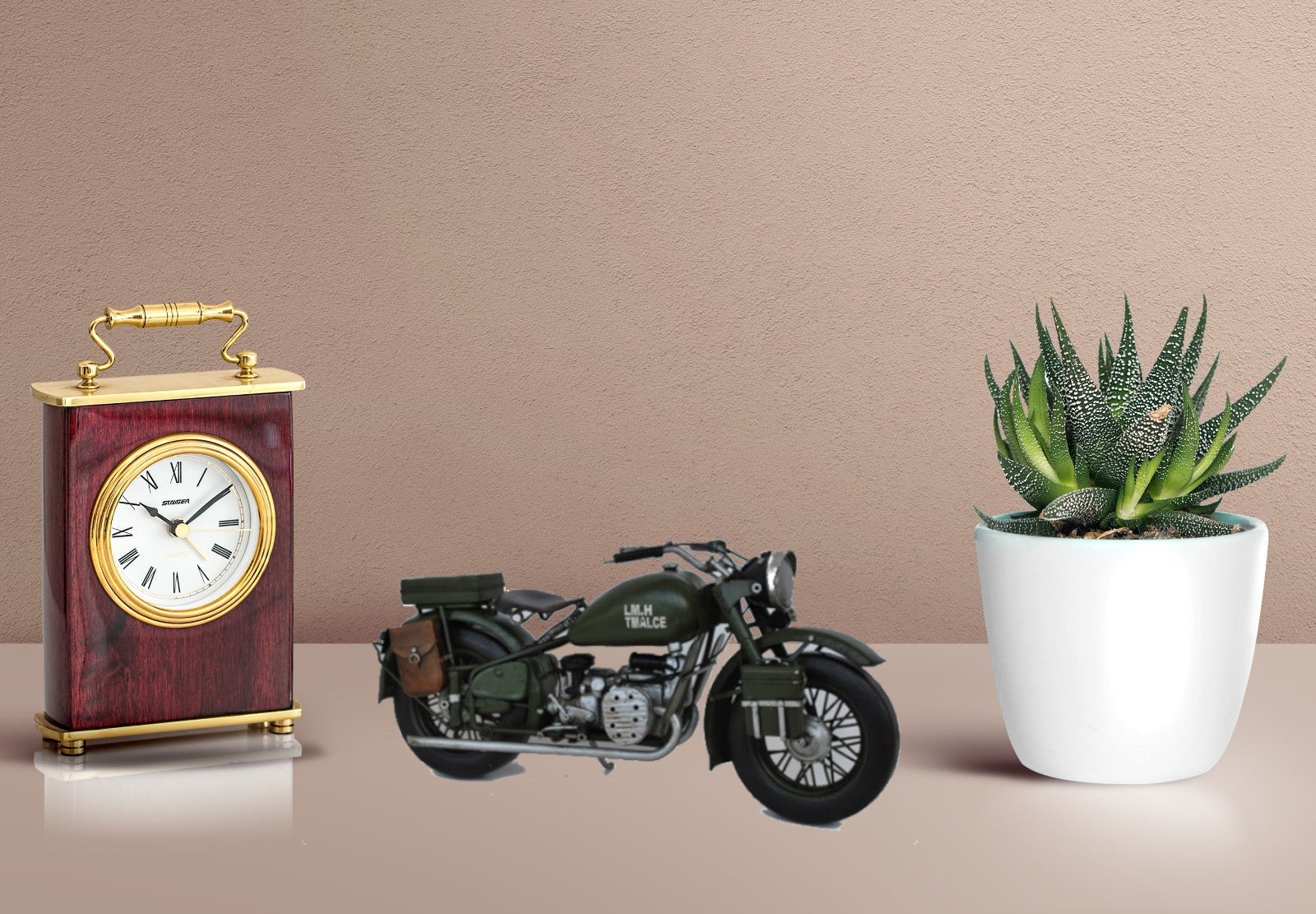 Decorate for any table, desk, or shelf in sporty fashion with Our Rustic Iron Army Motor Bike Sculpture. Featuring a rustic iron frame, this charming vintage Motorcycle includes detailed craftsmanship . The silver and Green metal seat and handlebars are finished in natural colors. For more than 20 years, European Finery has been providing high quality sculpture, accessories, and decor for any room for its customers' homes. Based in New York area, We grown to become one of the largest importers and wholesalers of home decor and hand made sculptures in the country. Whether you're looking for accent Sculpture, wall decor, vintage Toys, or just about any outdoor lifestyle sculpture , We Became a proven and trustworthy name that has become synonymous with superiority.2. Overall measurement (approx. H X W) : 7 x 13 Inches