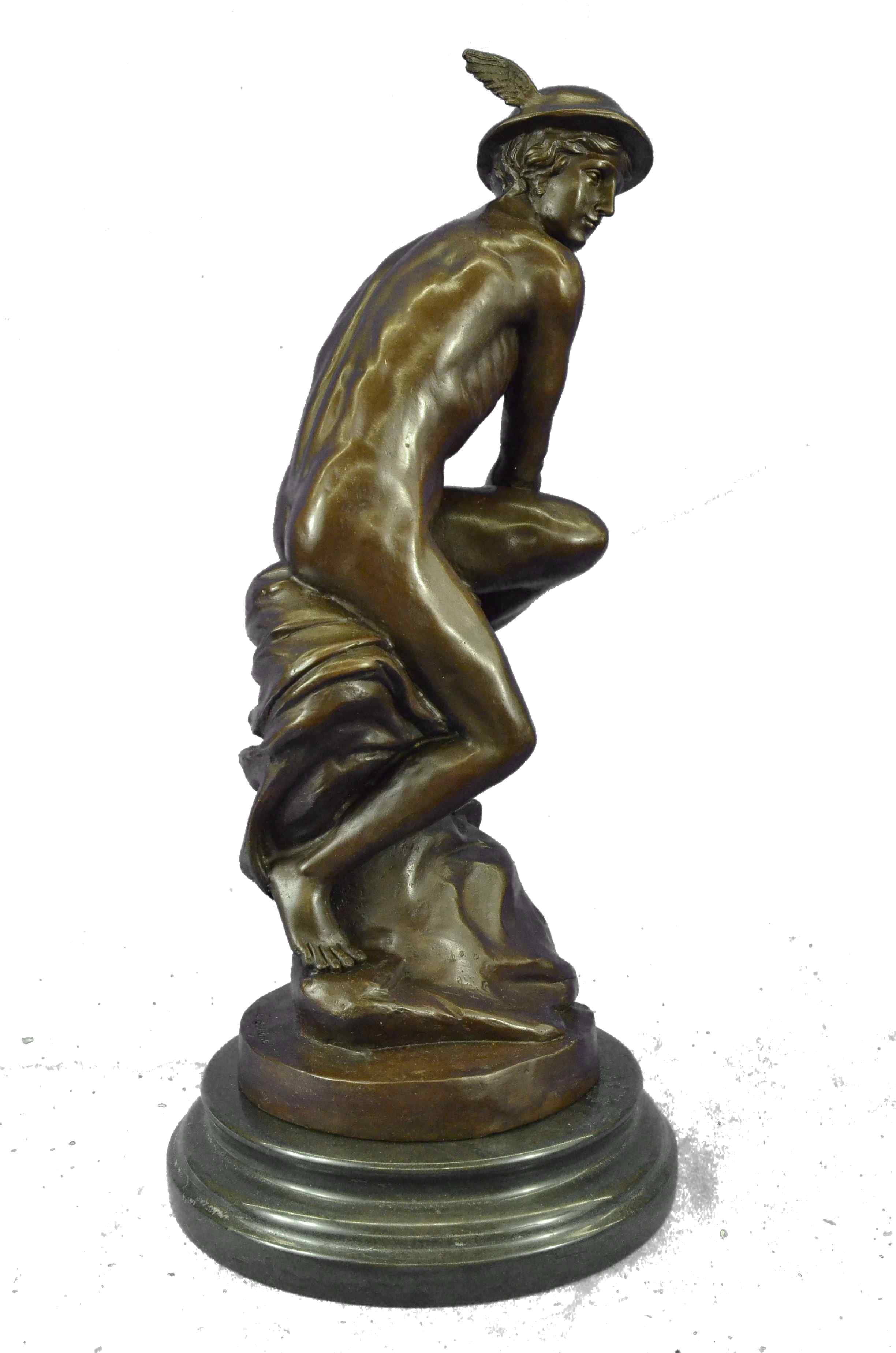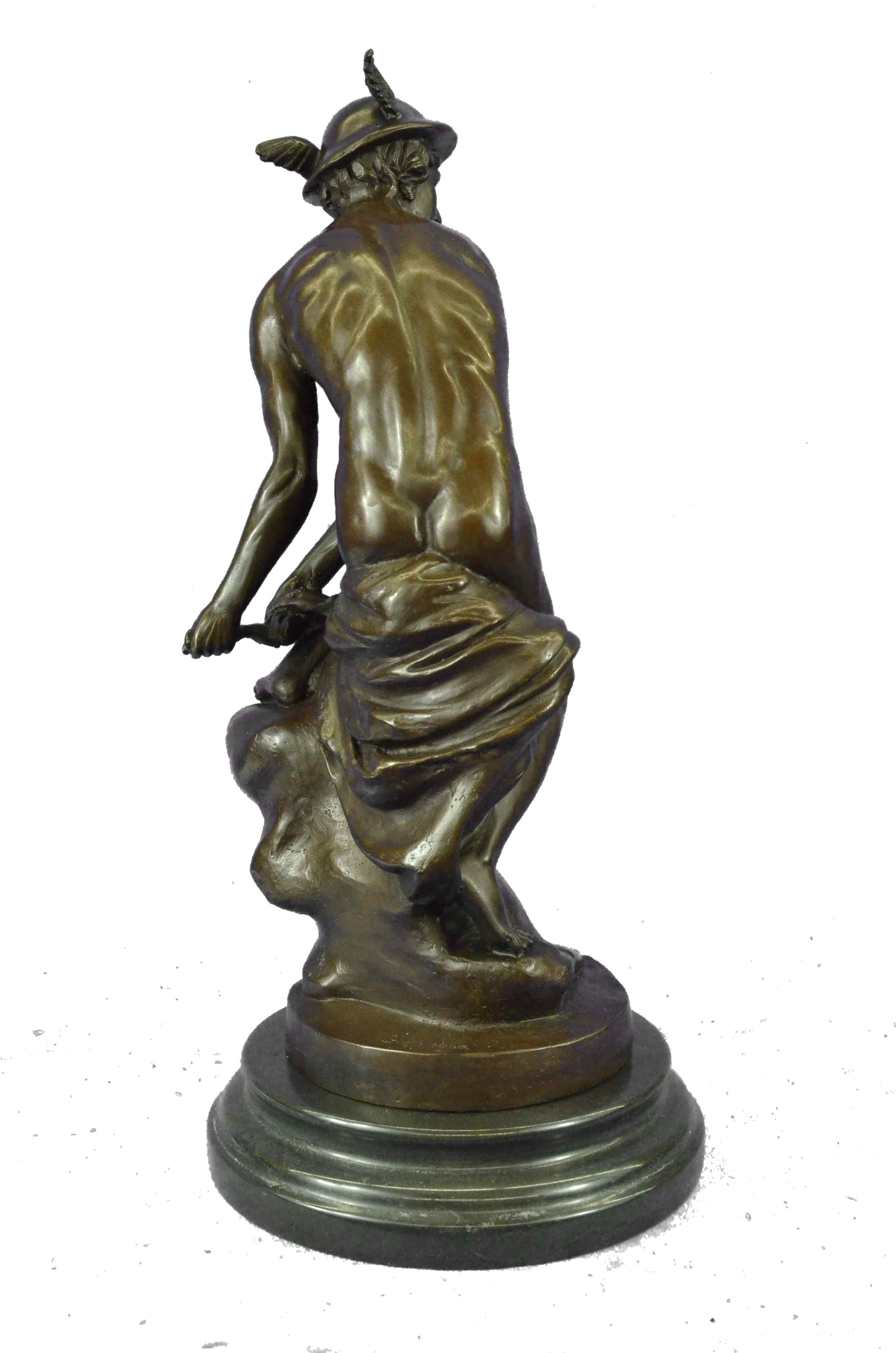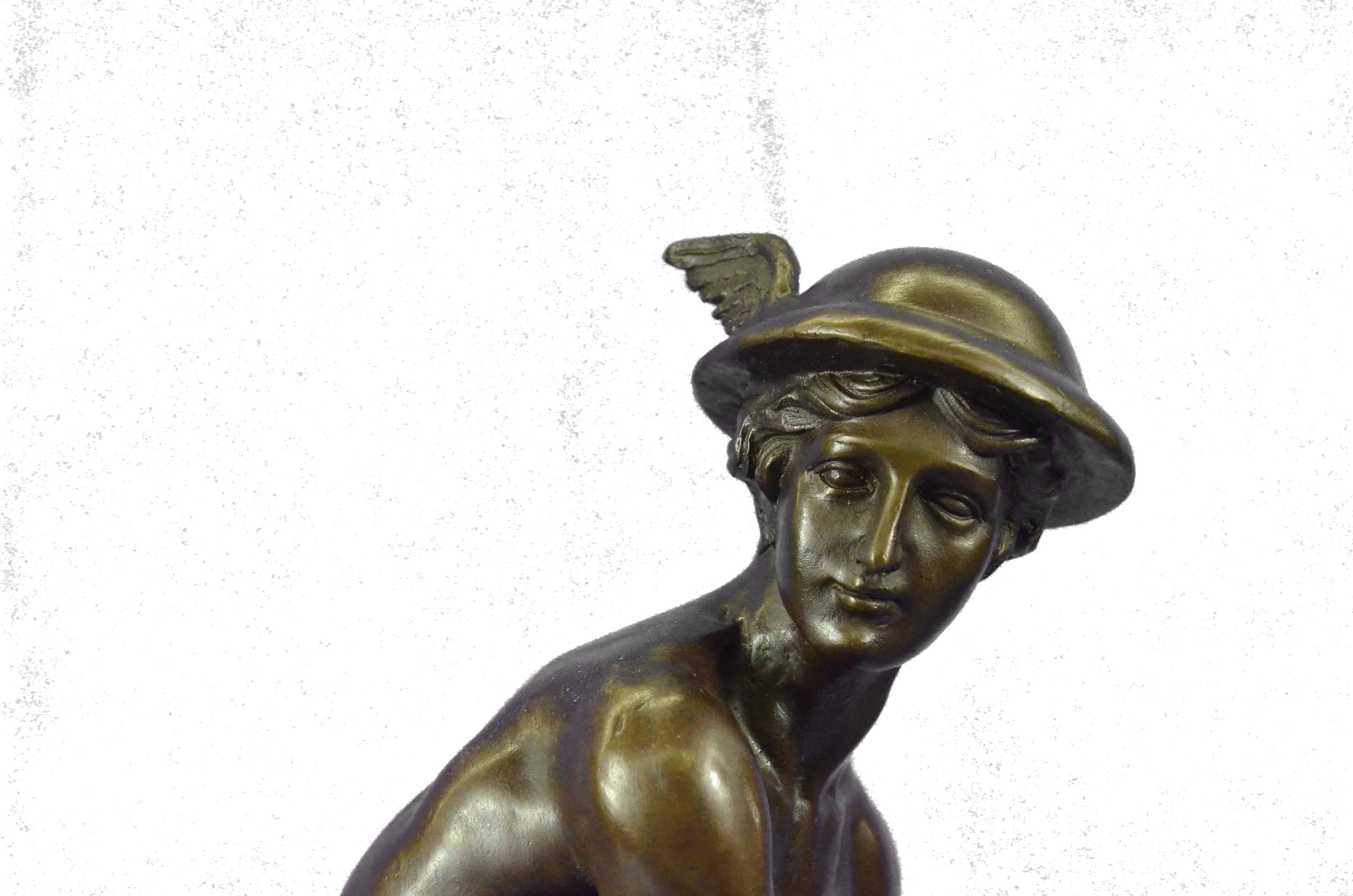 Roman Mythology Grand Tour Mercury Bronze Statue Figurine Marble Base Home Decor