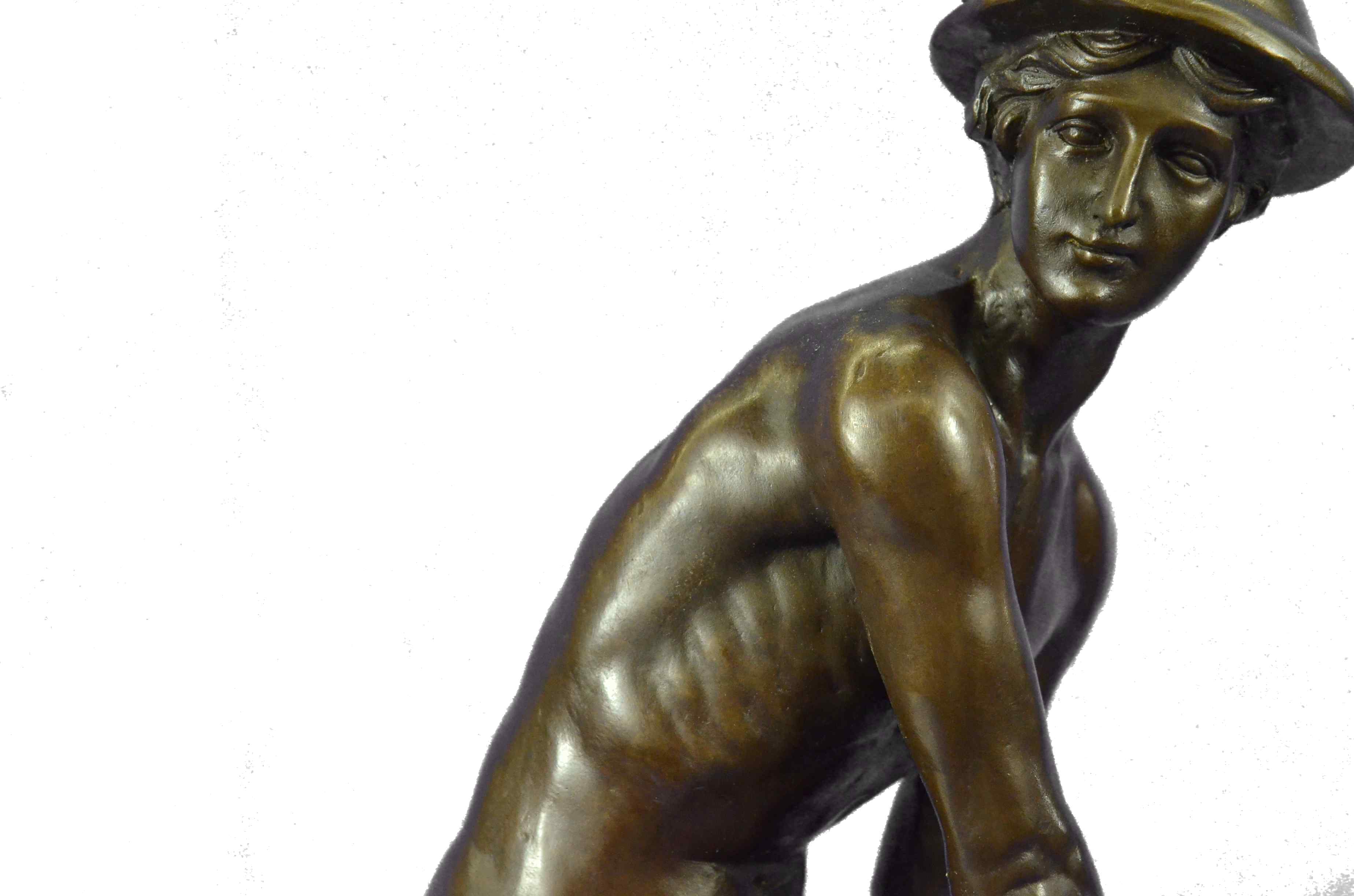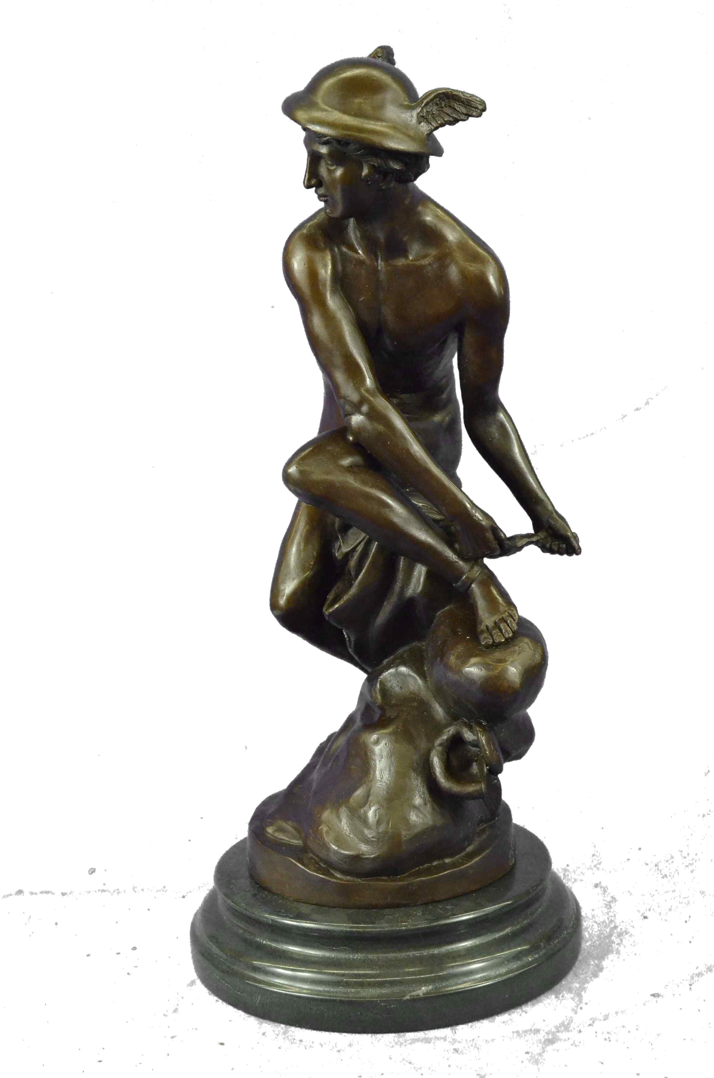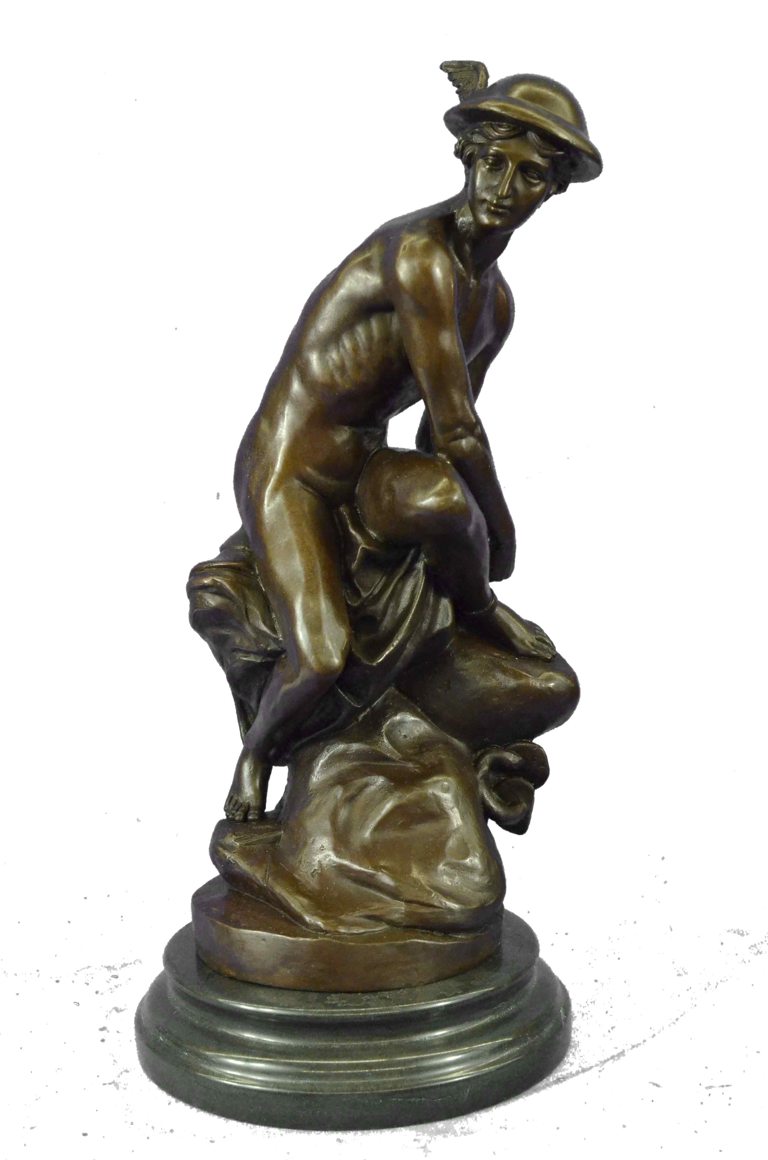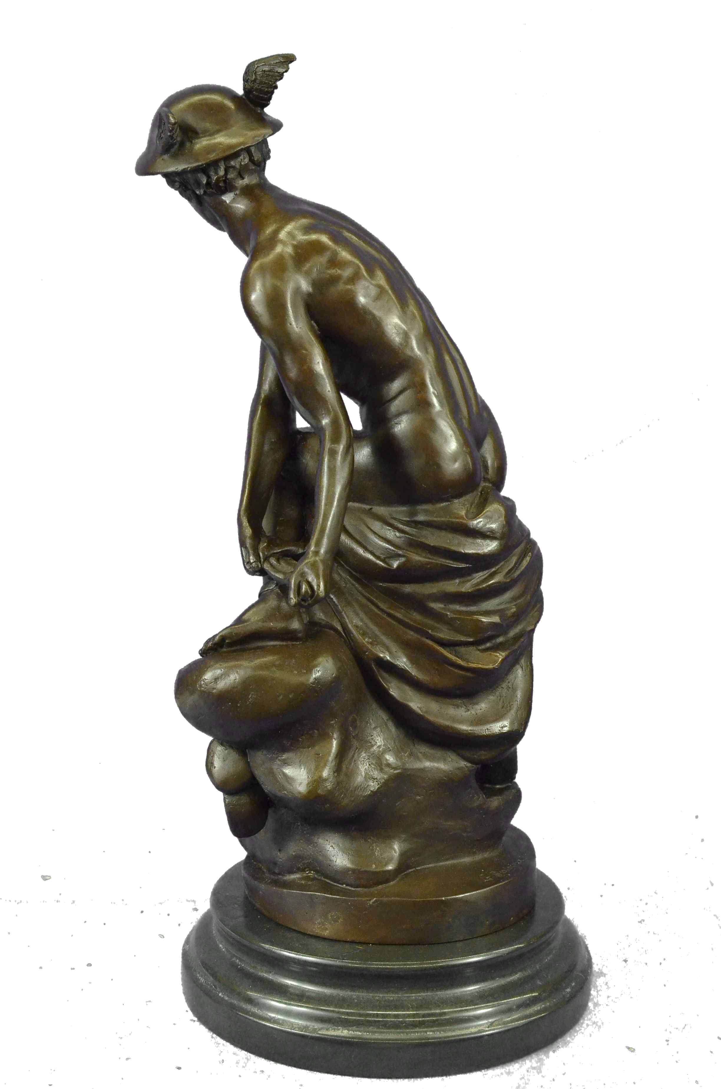 Roman Mythology Grand Tour Mercury Bronze Statue Figurine Marble Base Home Decor