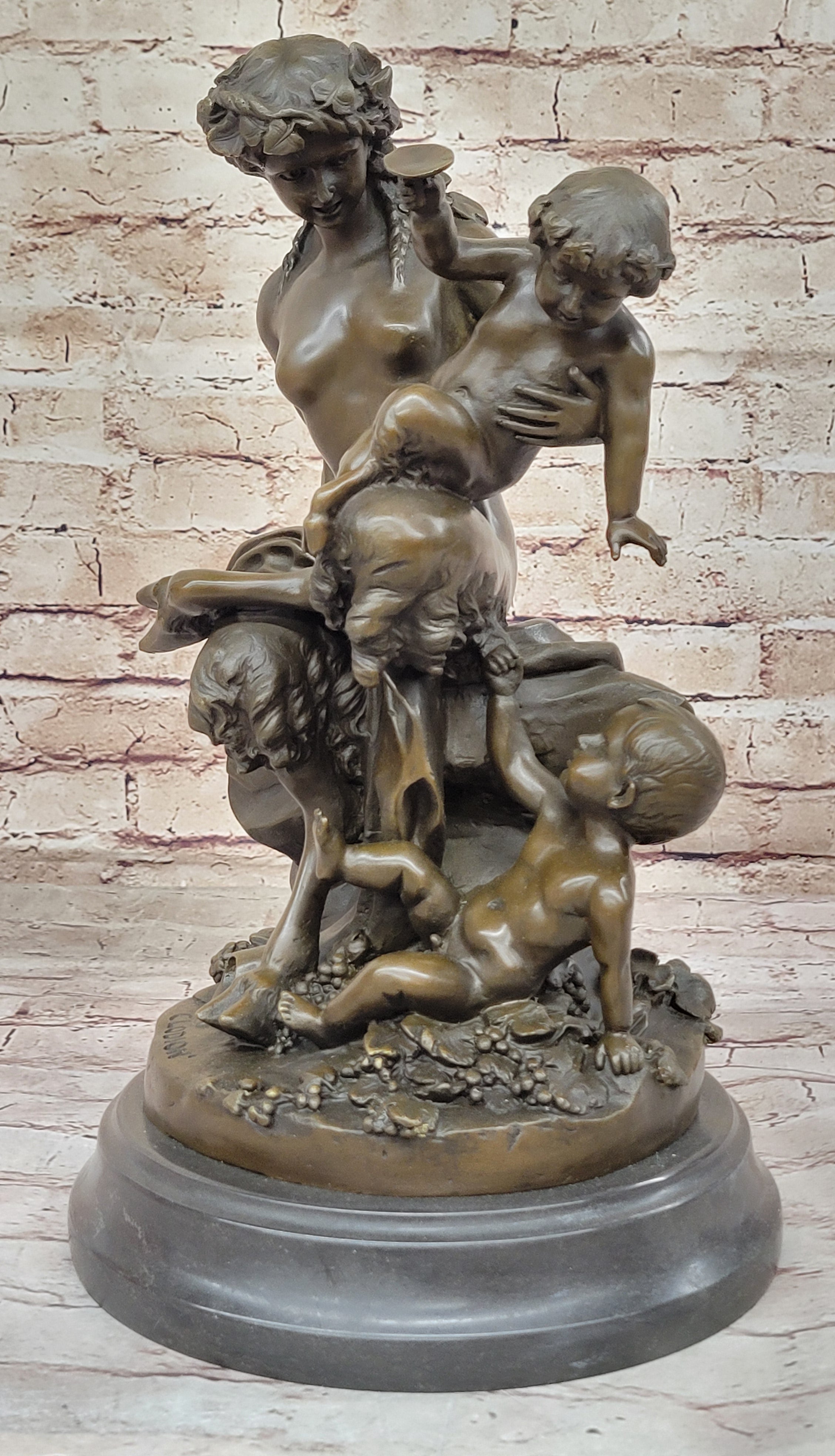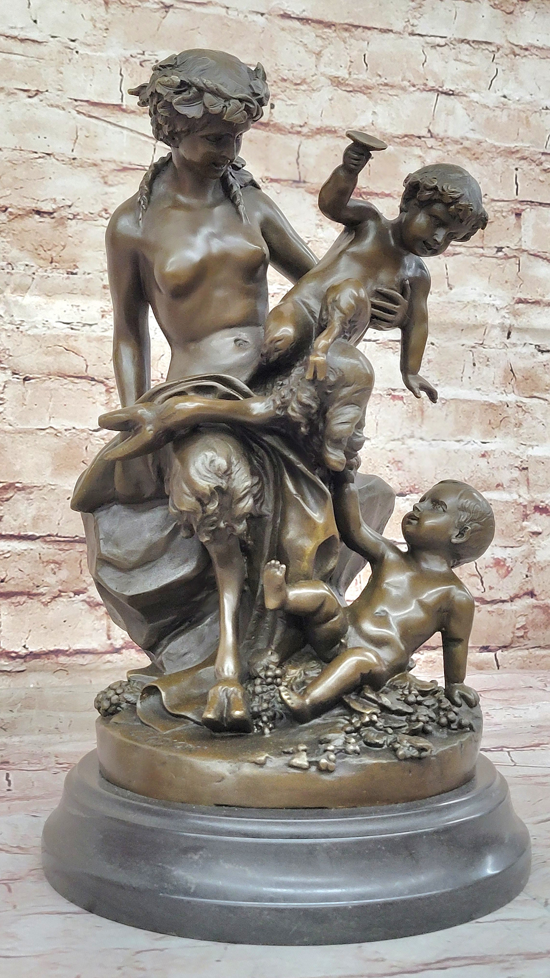 Satyr Fawn Faun and Children - Greek Mythology Bronze Sculpture Statue by Clodion