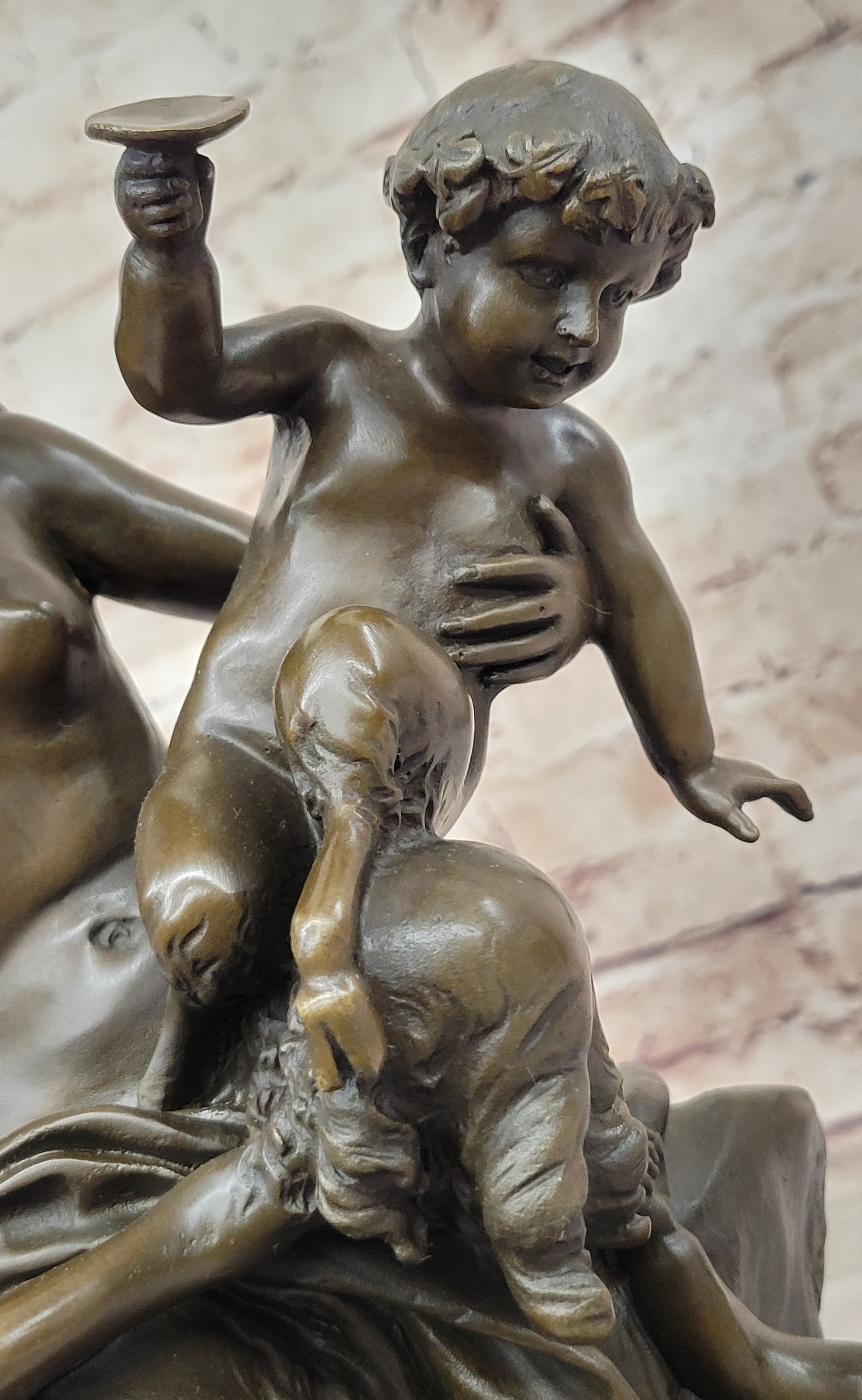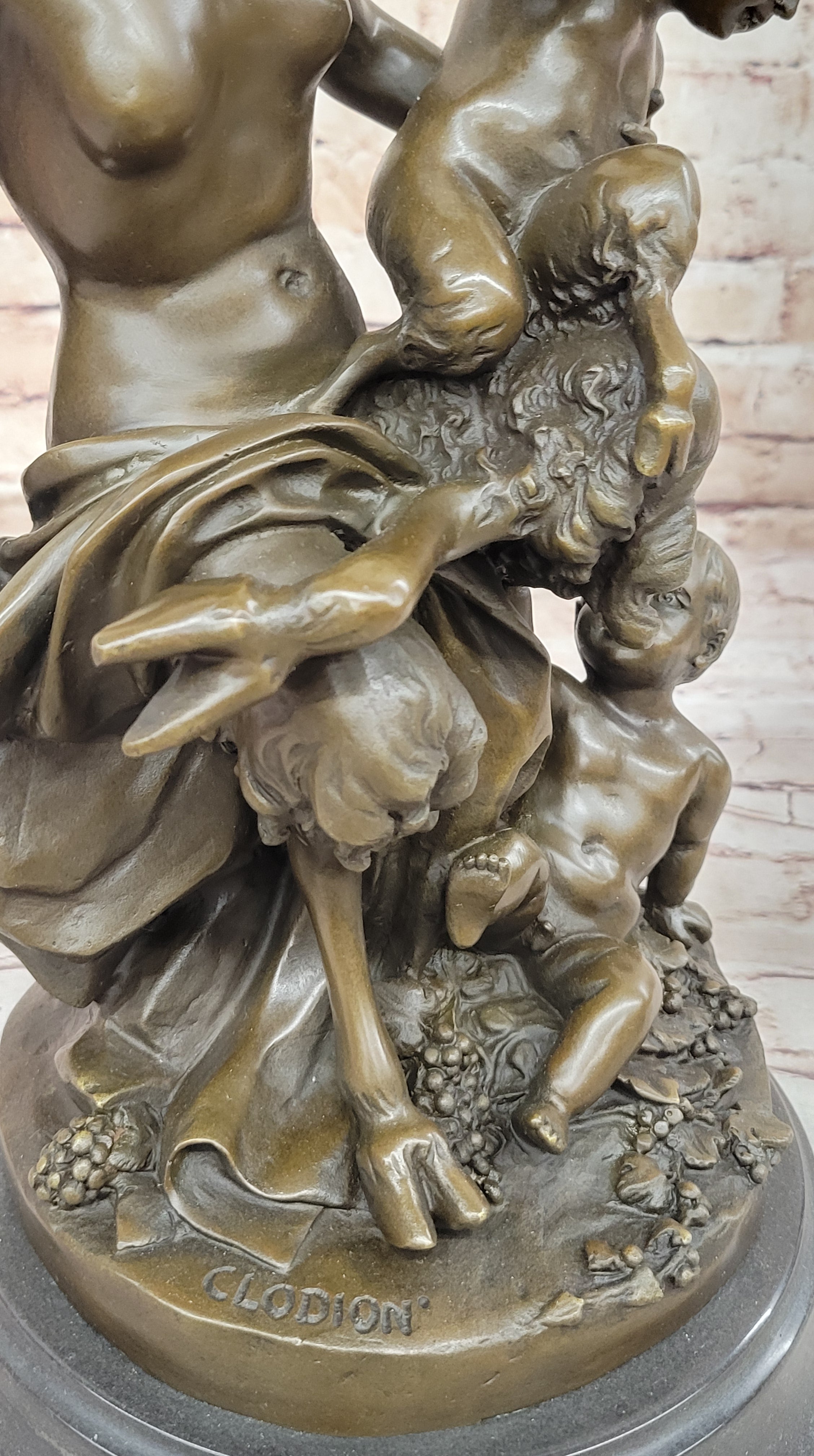 As a genuine work of art, this Clodion bronze sculpture is not only a decorative addition to any space but also a testament to the rich tradition of French artistry. Its portrayal of mythical creatures and the artist's signature make it a valuable and cherished piece for collectors and enthusiasts alike.Bronze Dimensions with Marble Base: Height 14.5" X Width 9"