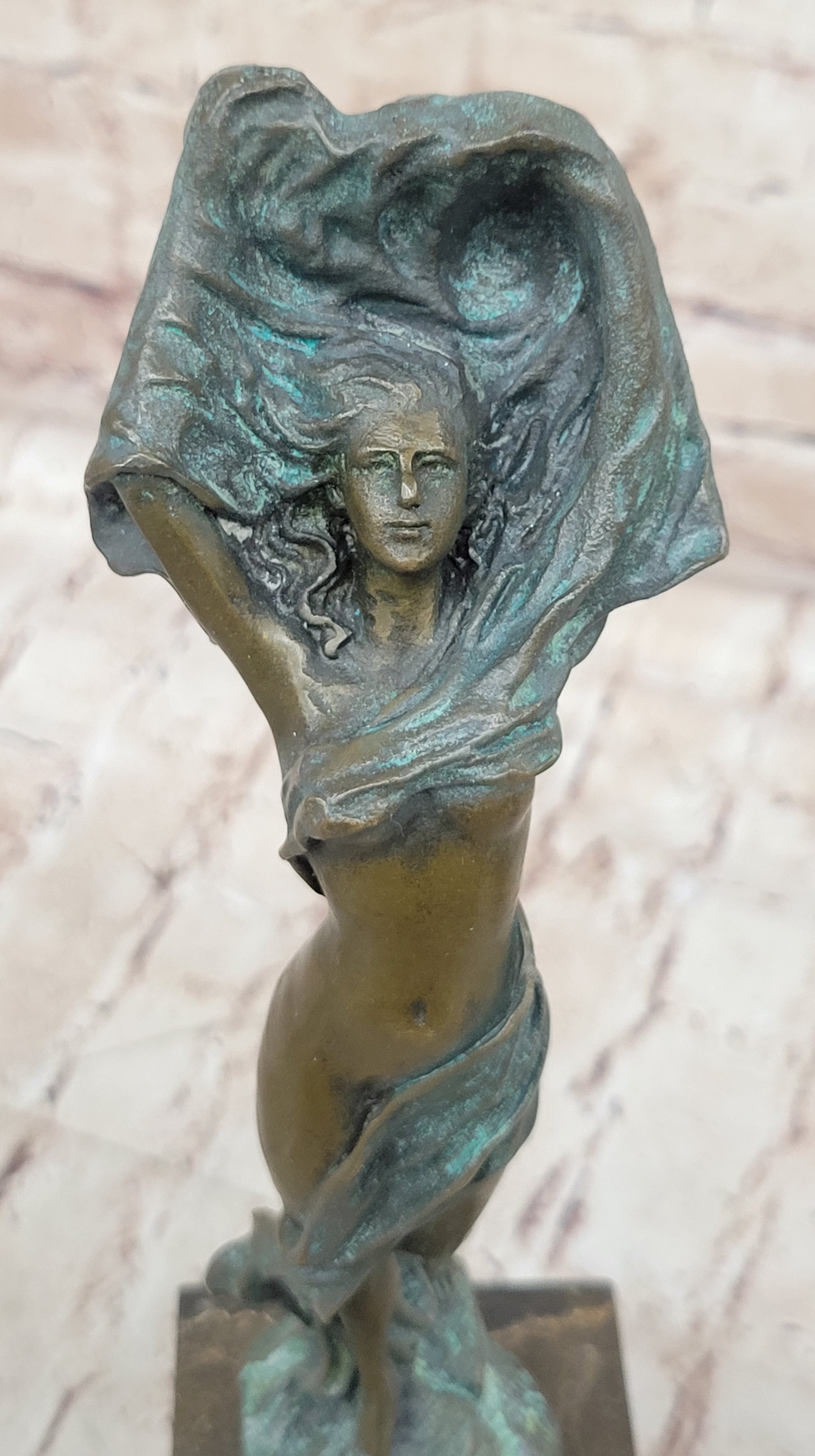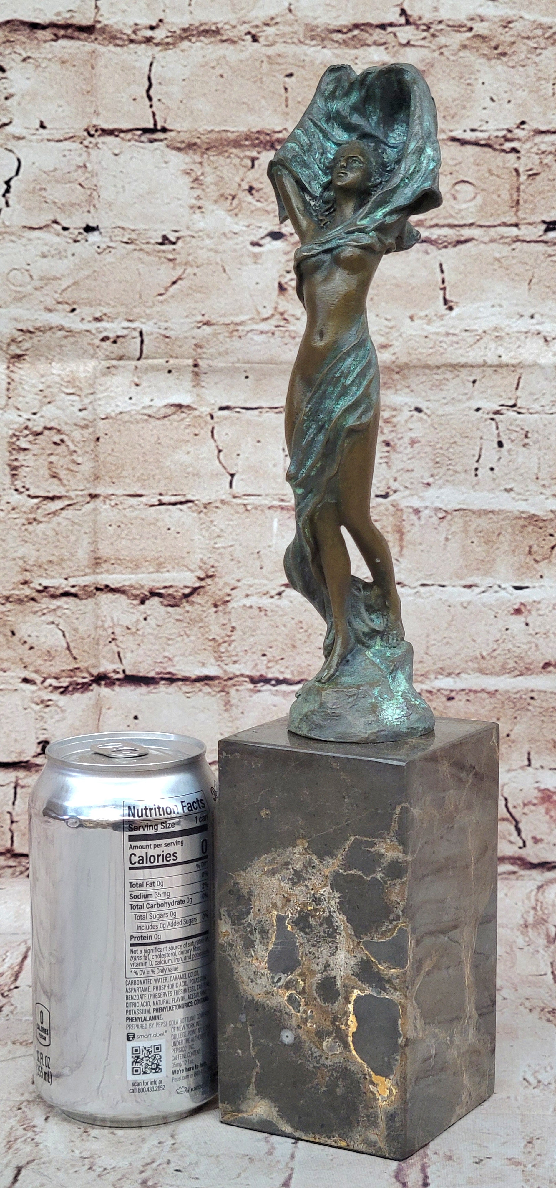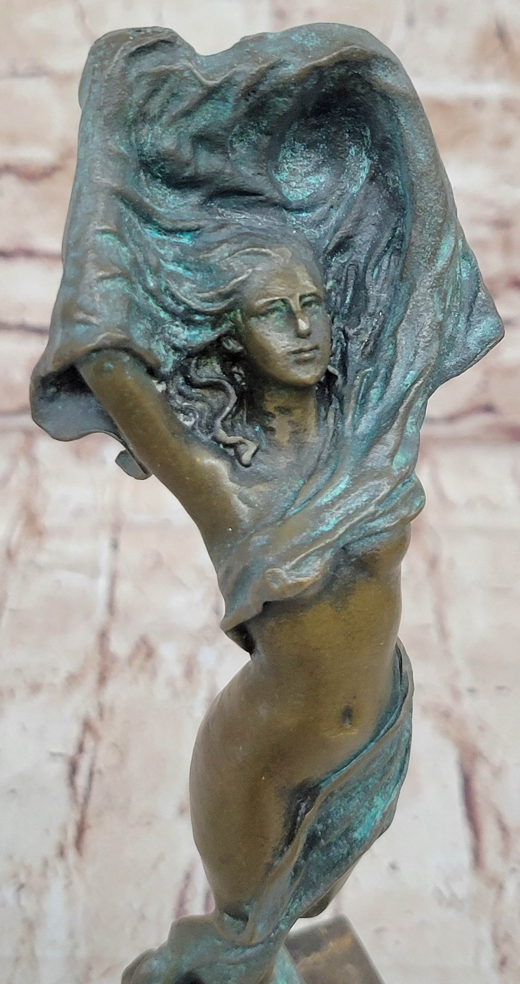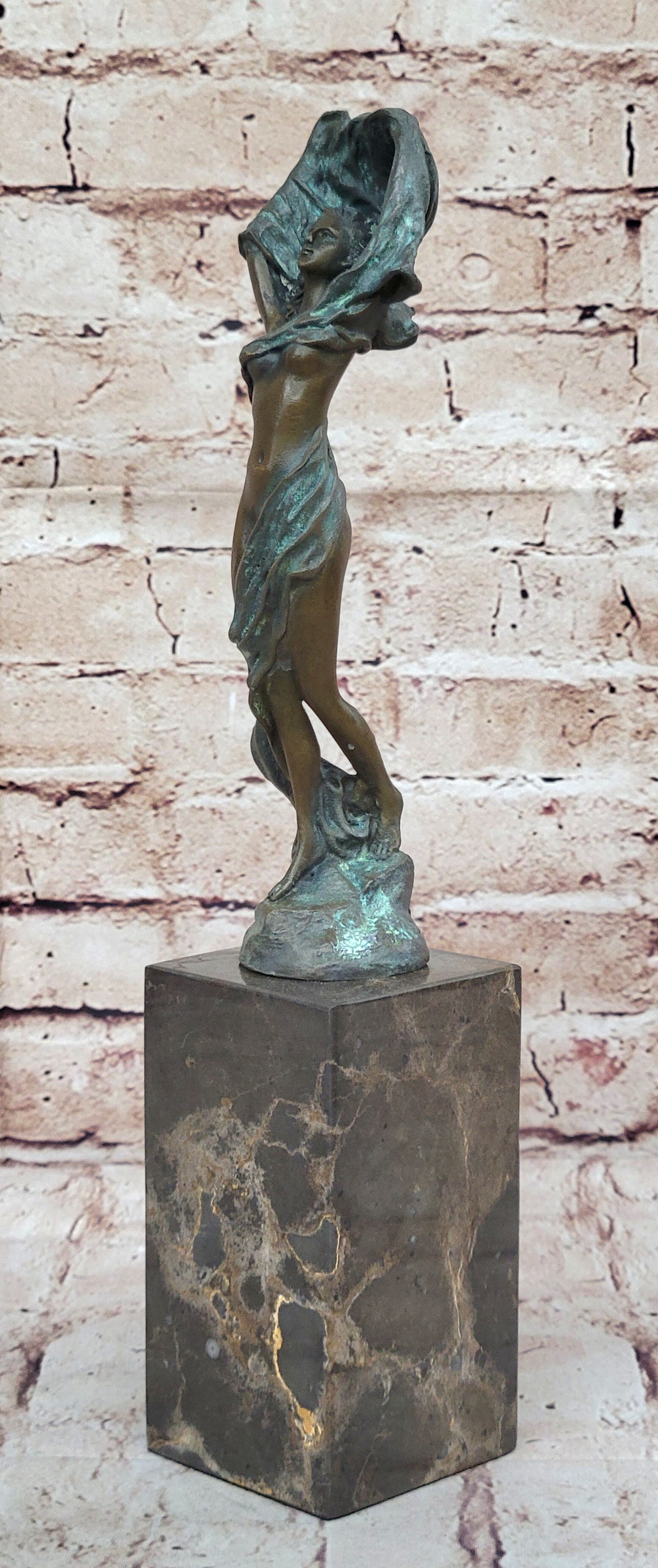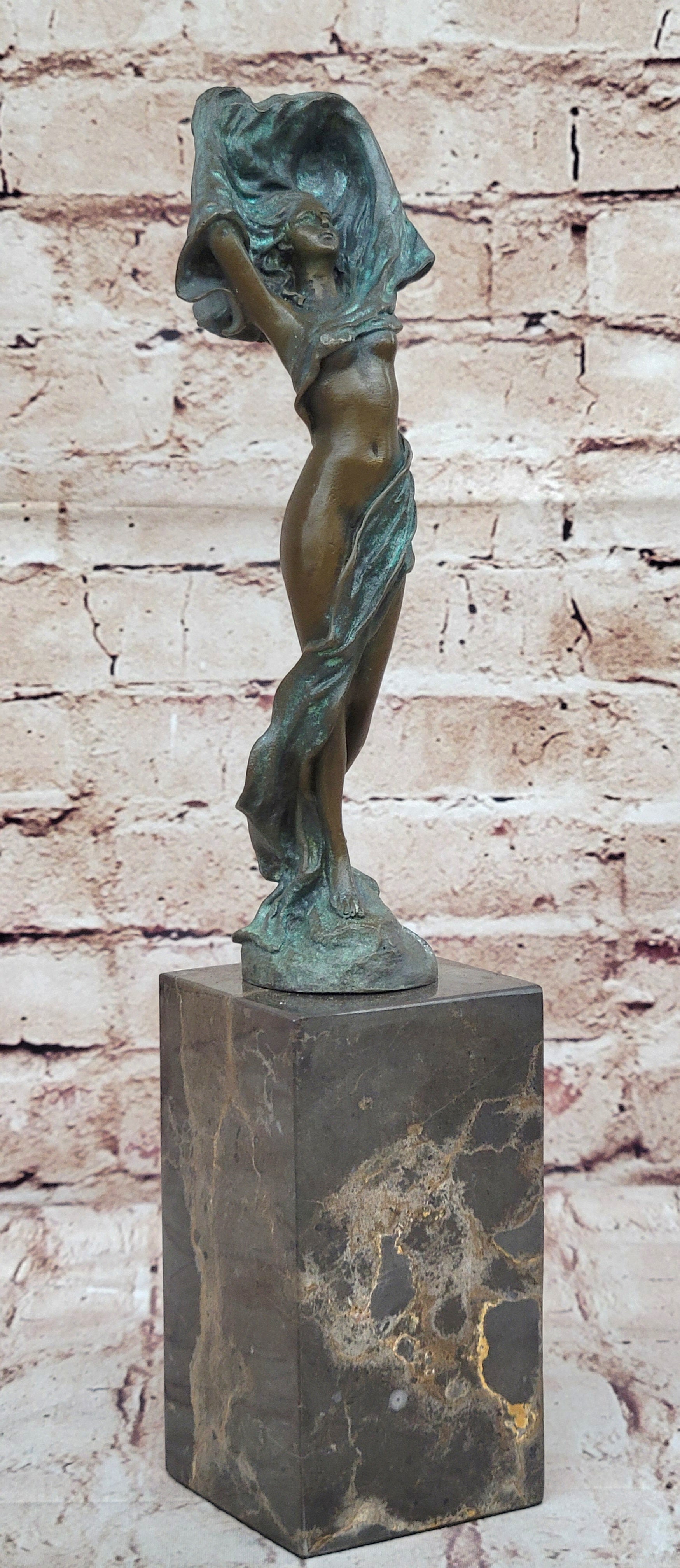 Hand Made by the lost wax method, this stunning bronze sculpture by J. Erte depicts a gorgeous nude woman, capturing the elegance and allure characteristic of Erte's renowned style. The intricate detailing and lifelike representation showcase the artist's exceptional skill and dedication to his craft. The sculpture exudes a sense of grace and poise, making it a captivating piece for any art lover.