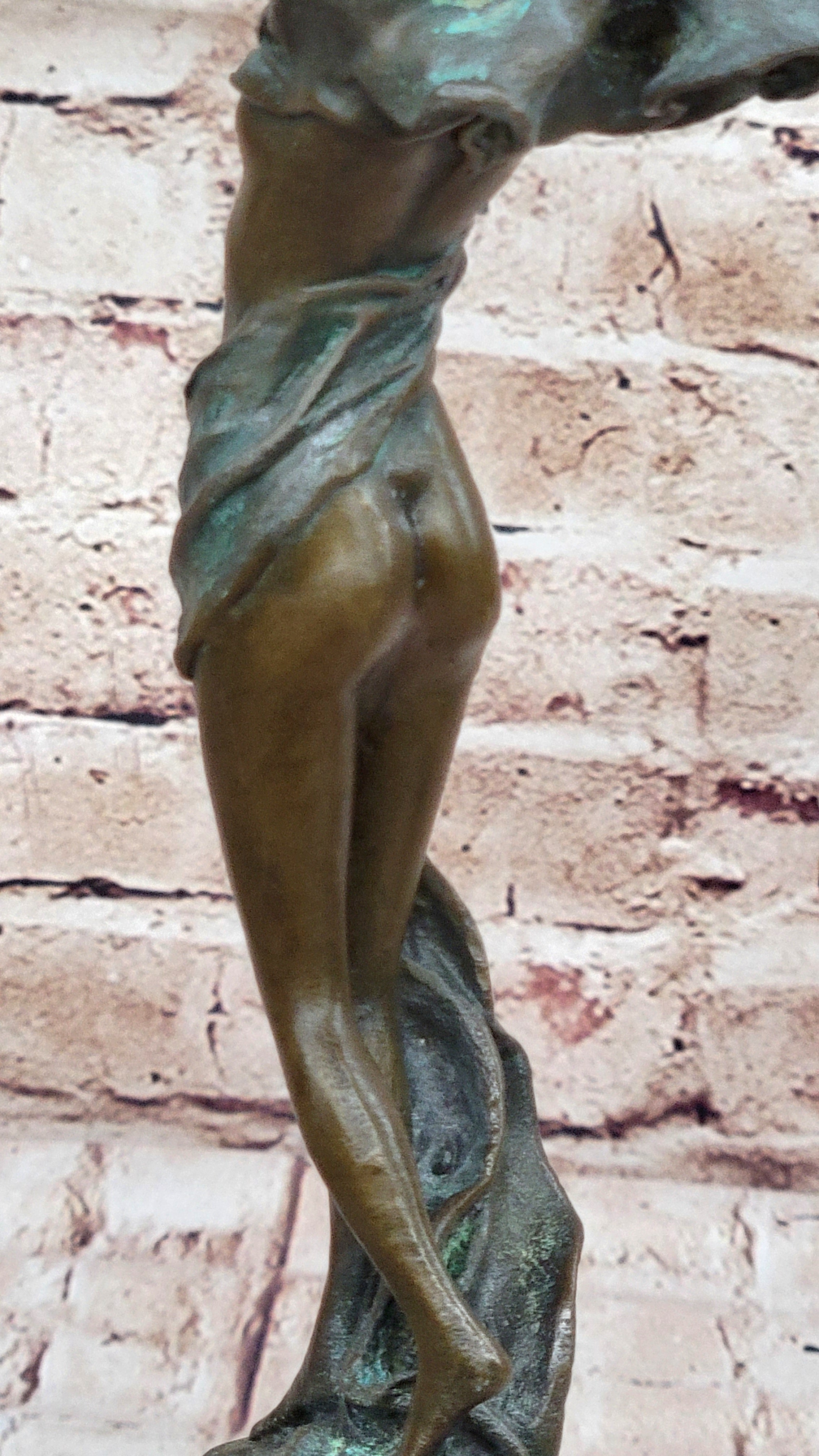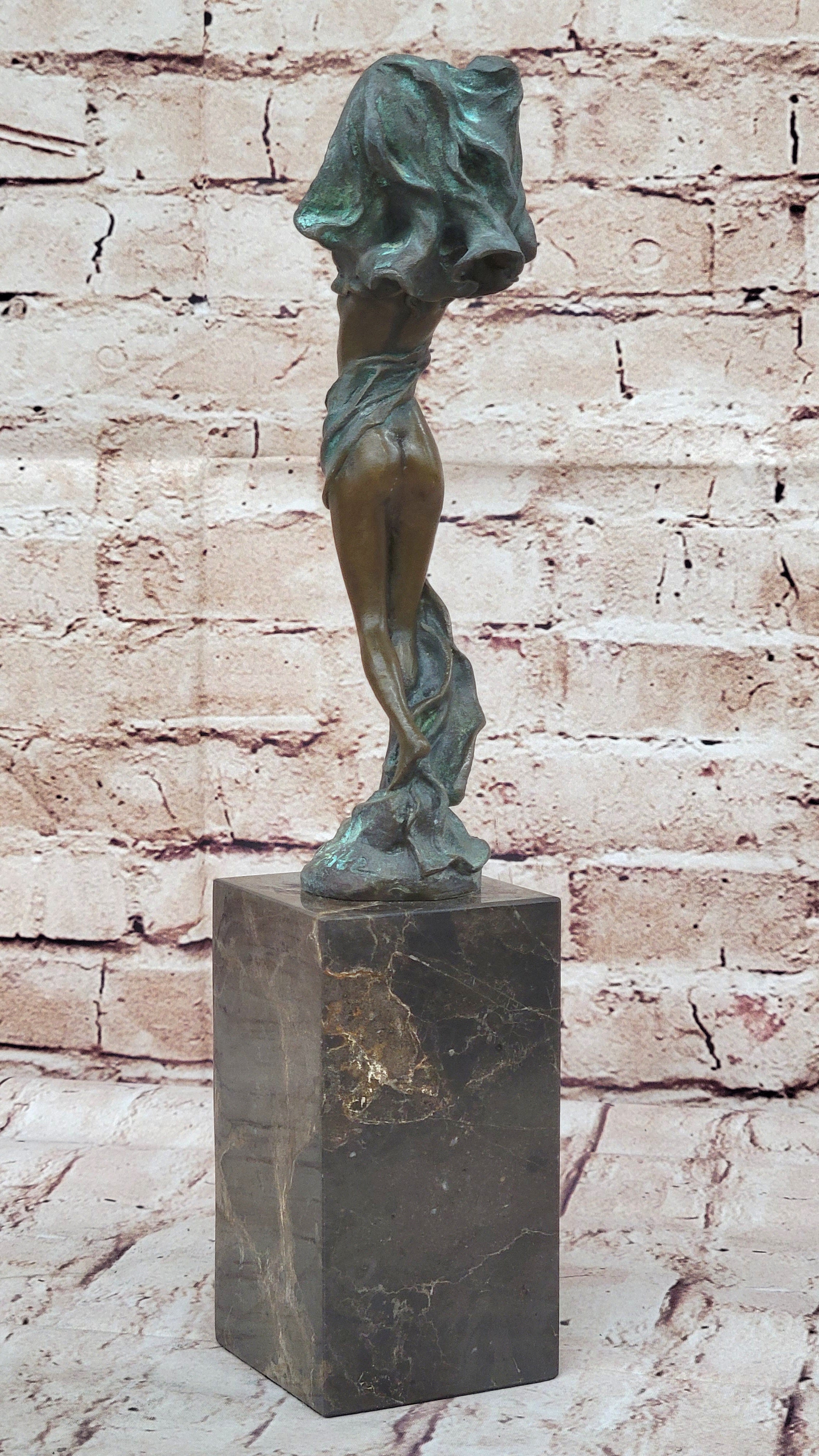 Semi Nude Figure of Girl Removing Her Shirt - Bronze Figure Sculpture J. Erte Art Deco