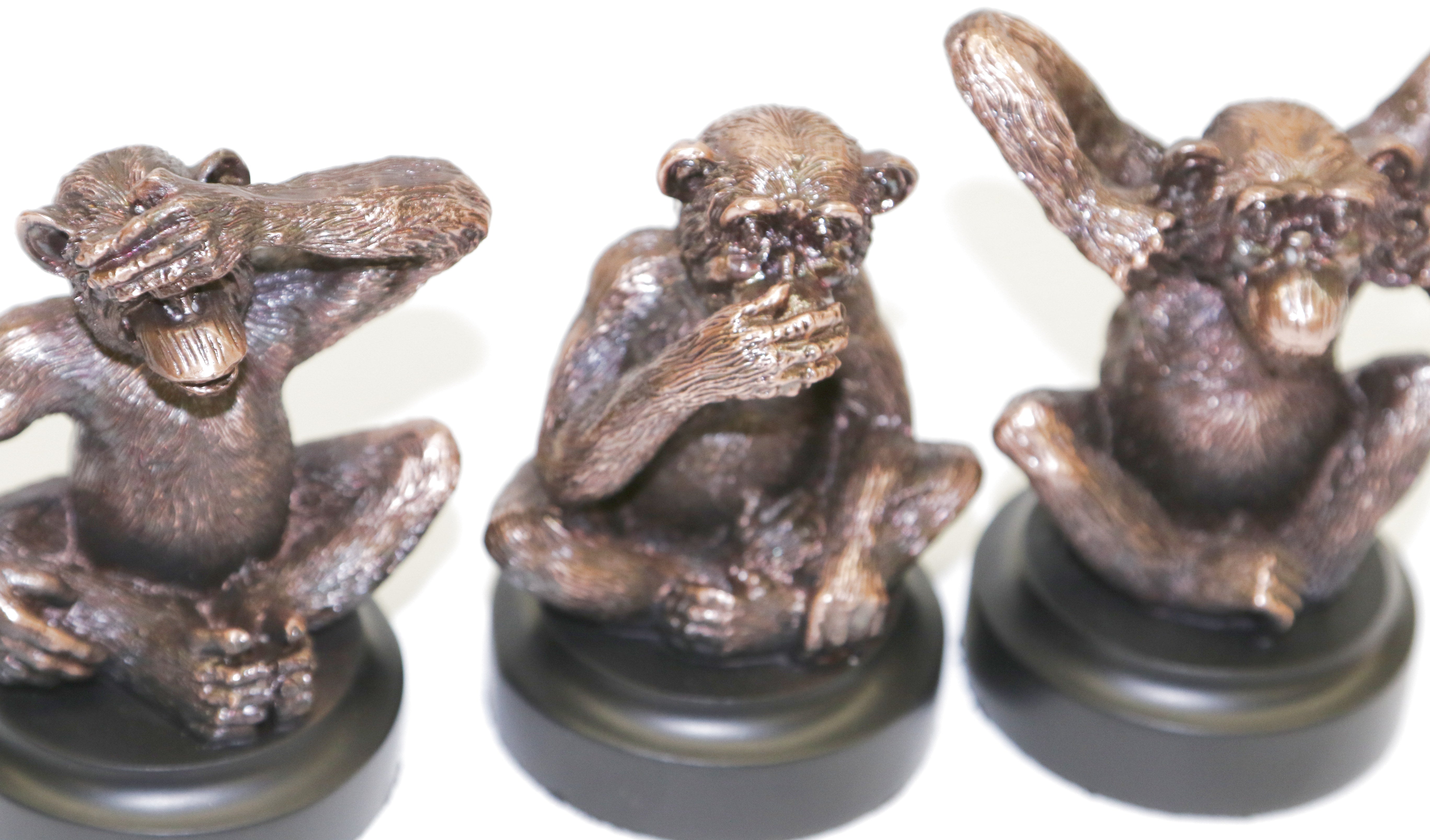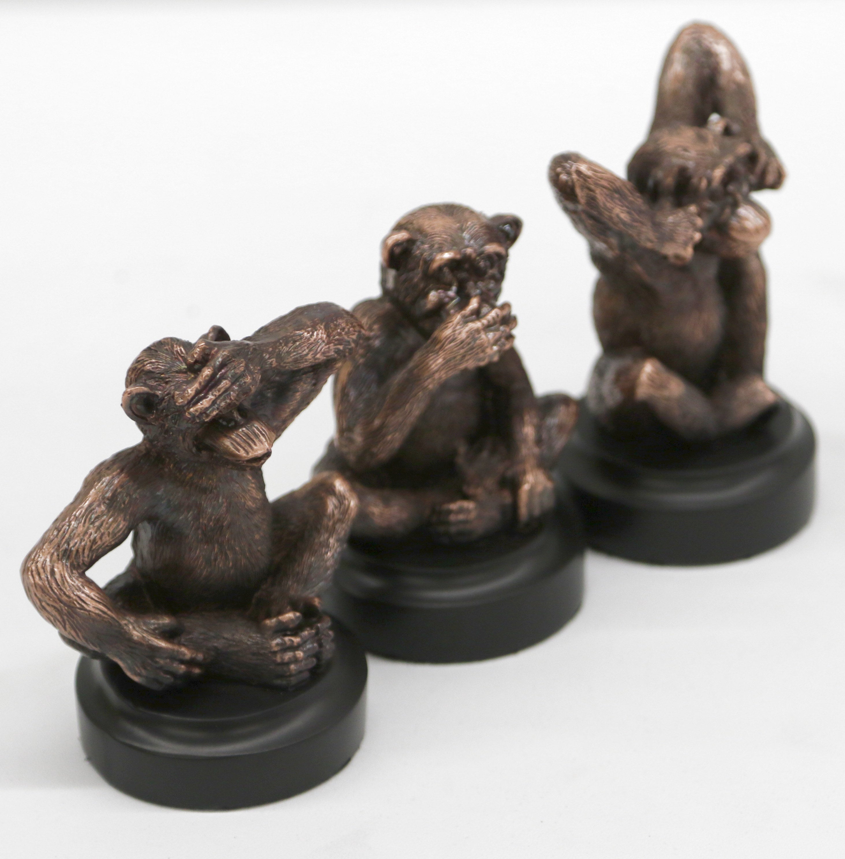 Set of 3 See No Evil, Hear No Evil,Speak No Evil Faux Bronze Sculpture Figurine