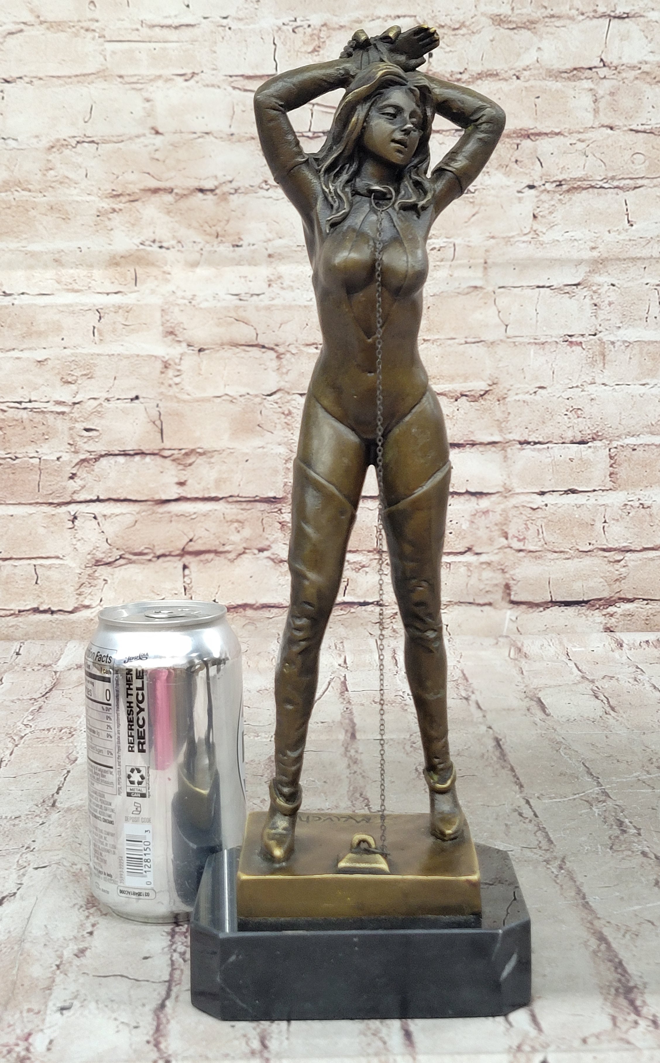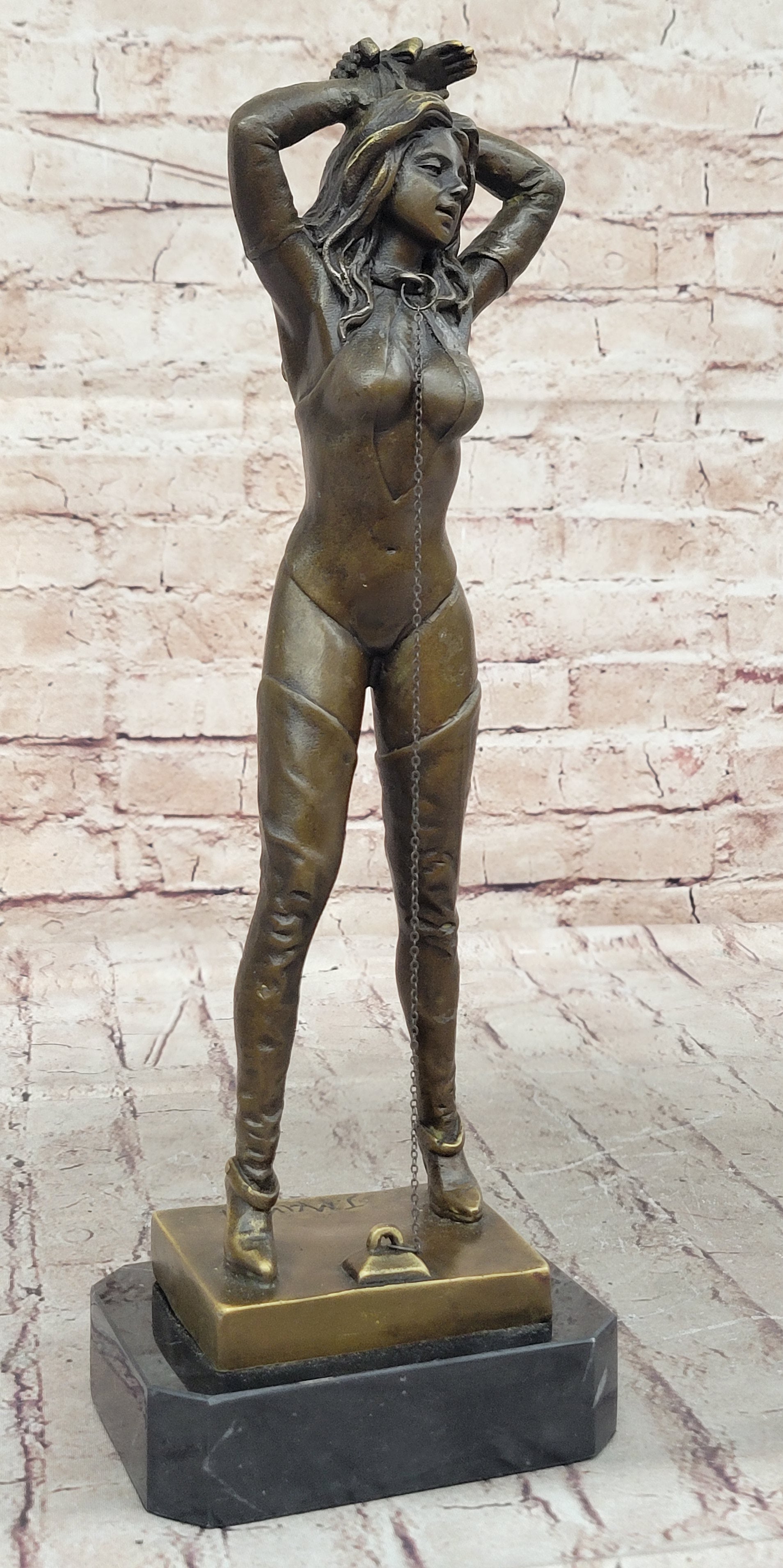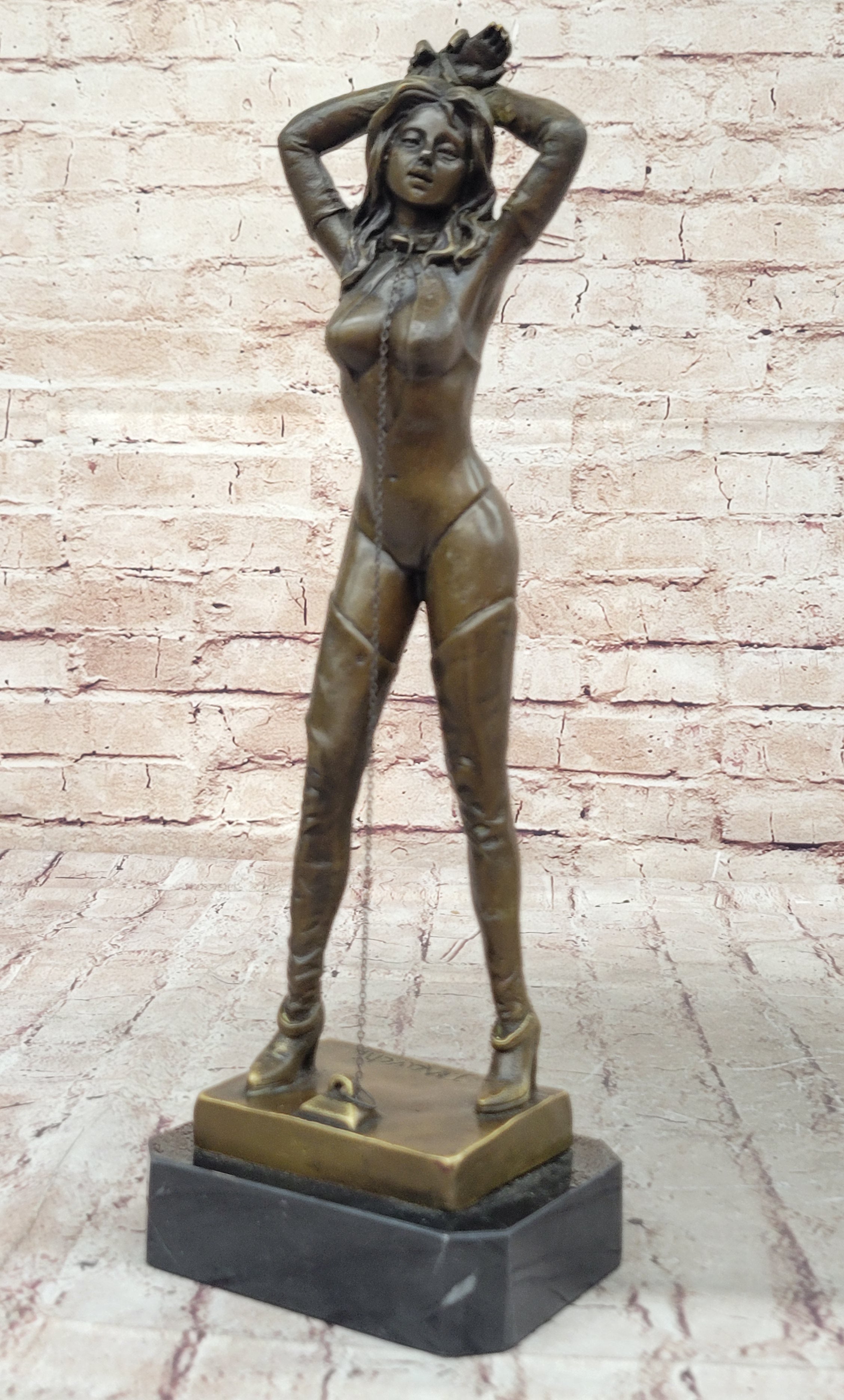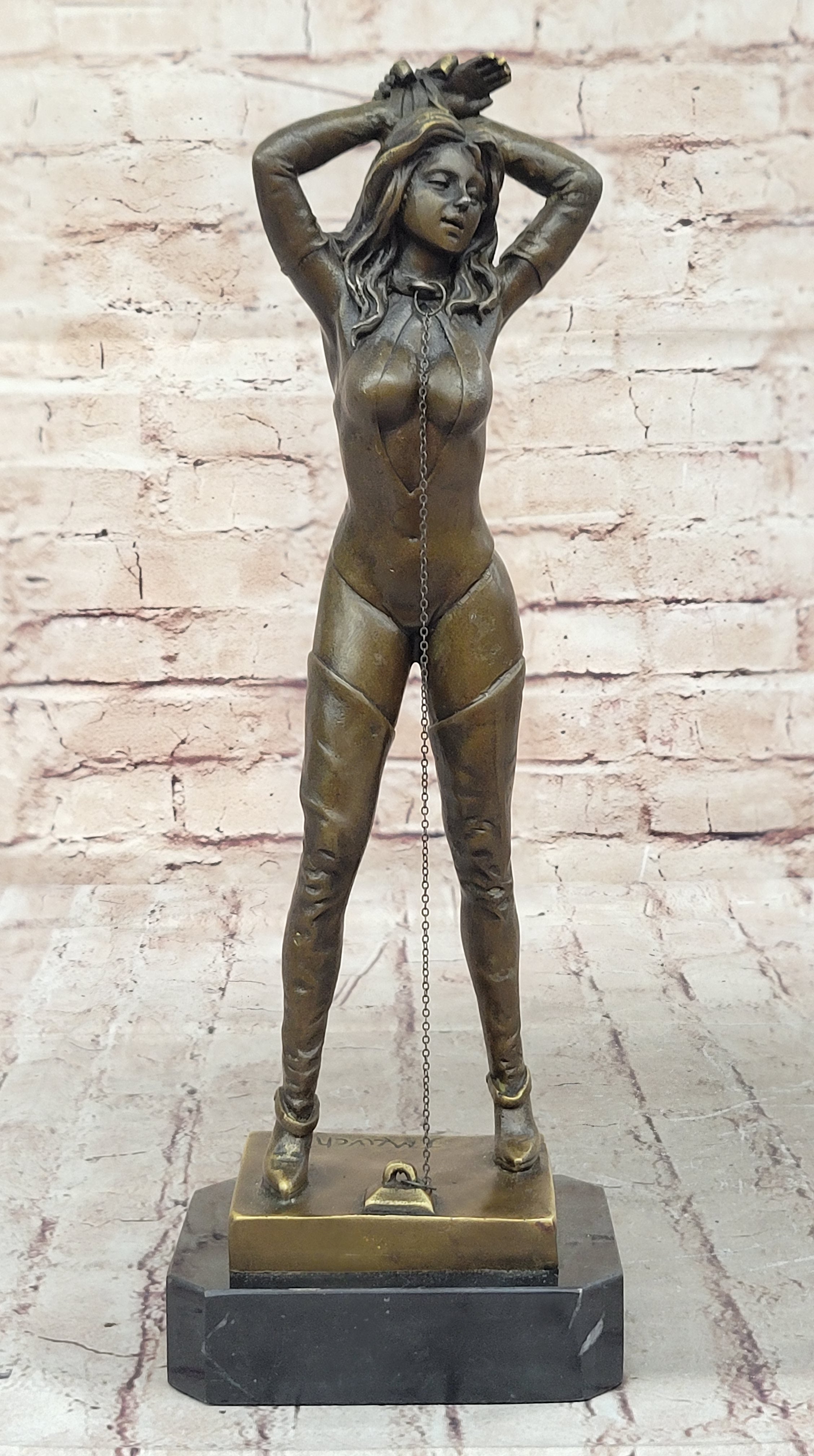 Sexy Chained Up Bondage Girl in High Boots - Bronze Metal Sculpture Figure by Preiss