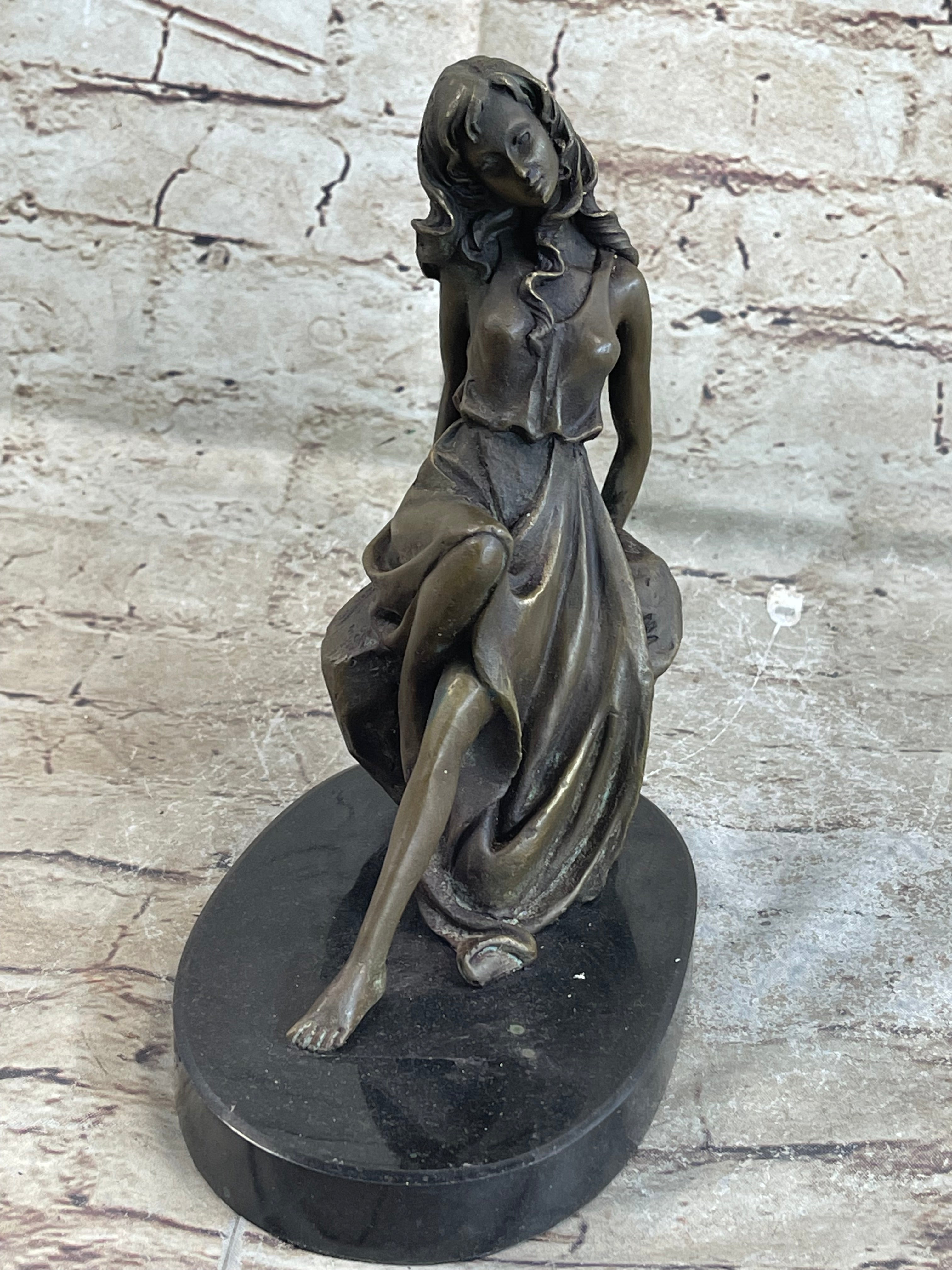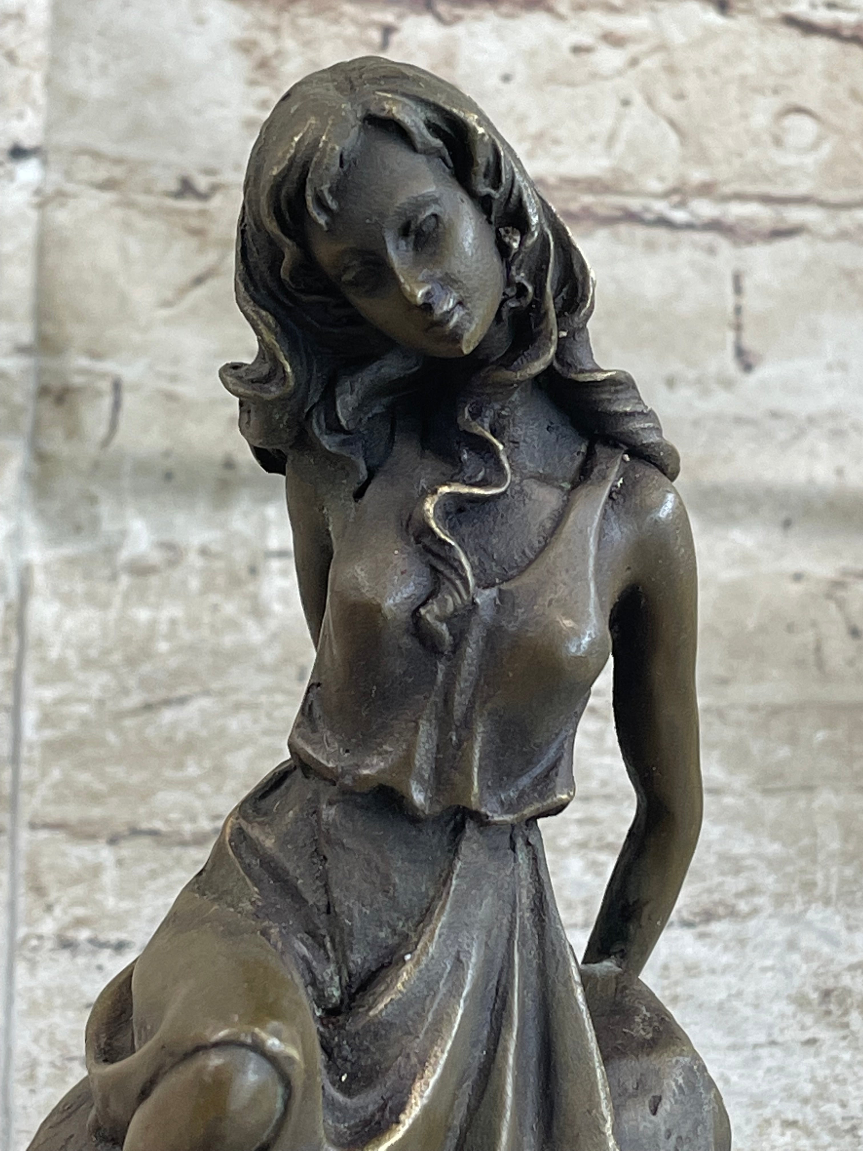 Young Girl Laying Against Rock Bronze Figure Statue Sculpture Decor 8" x 6"