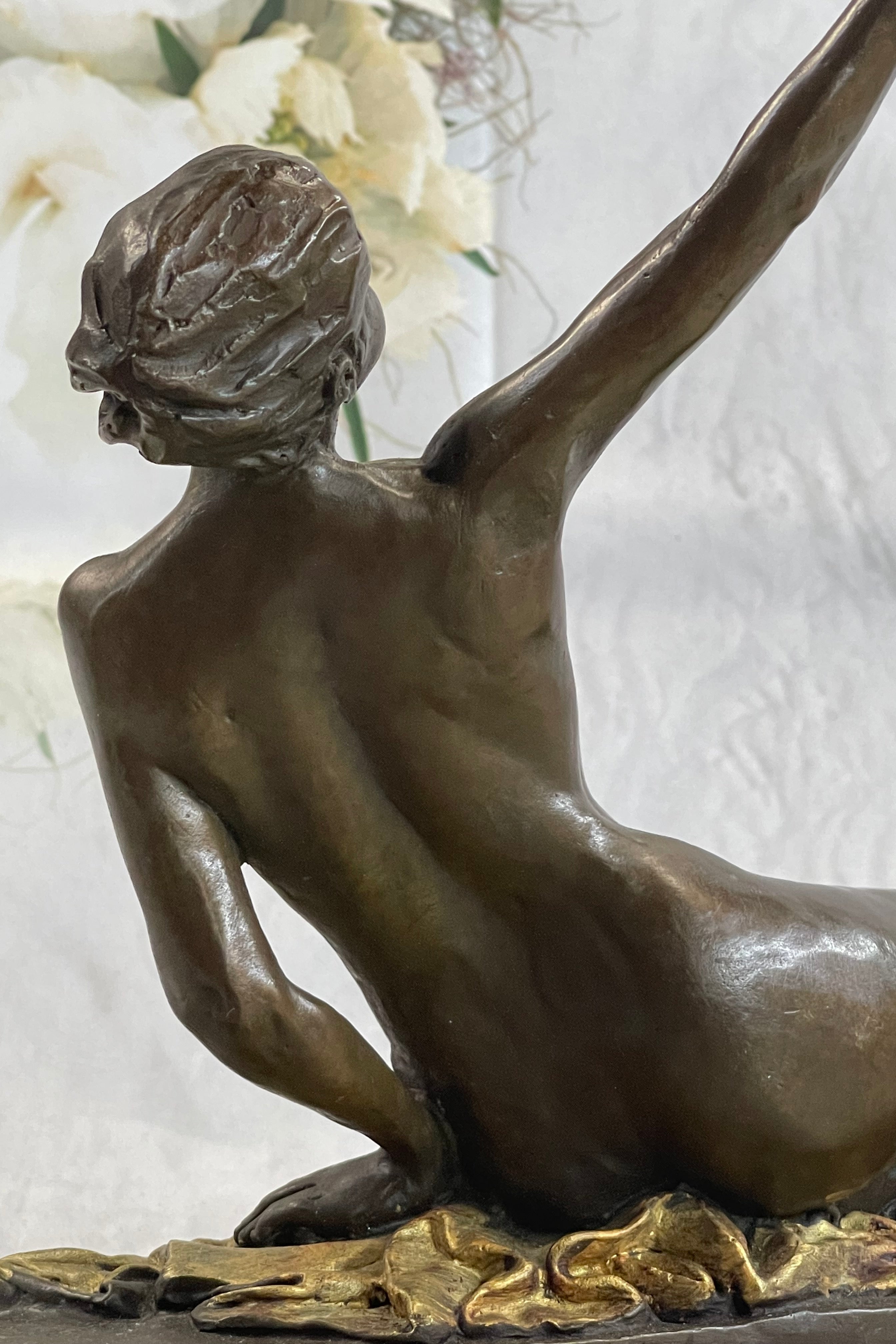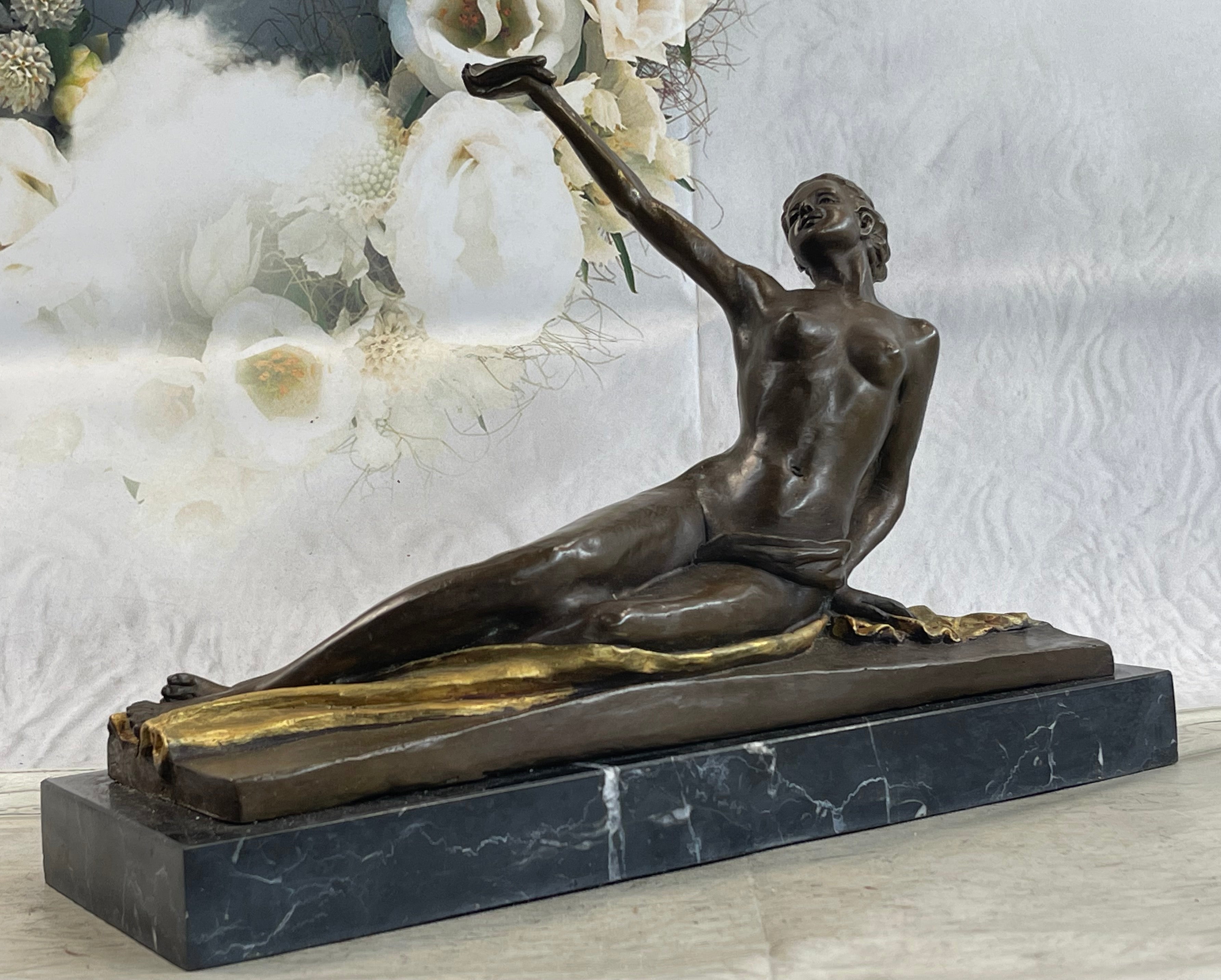 Sexy Nude Girl Naked Woman Holding a Bird - Handmade Bronze Sculpture Statue