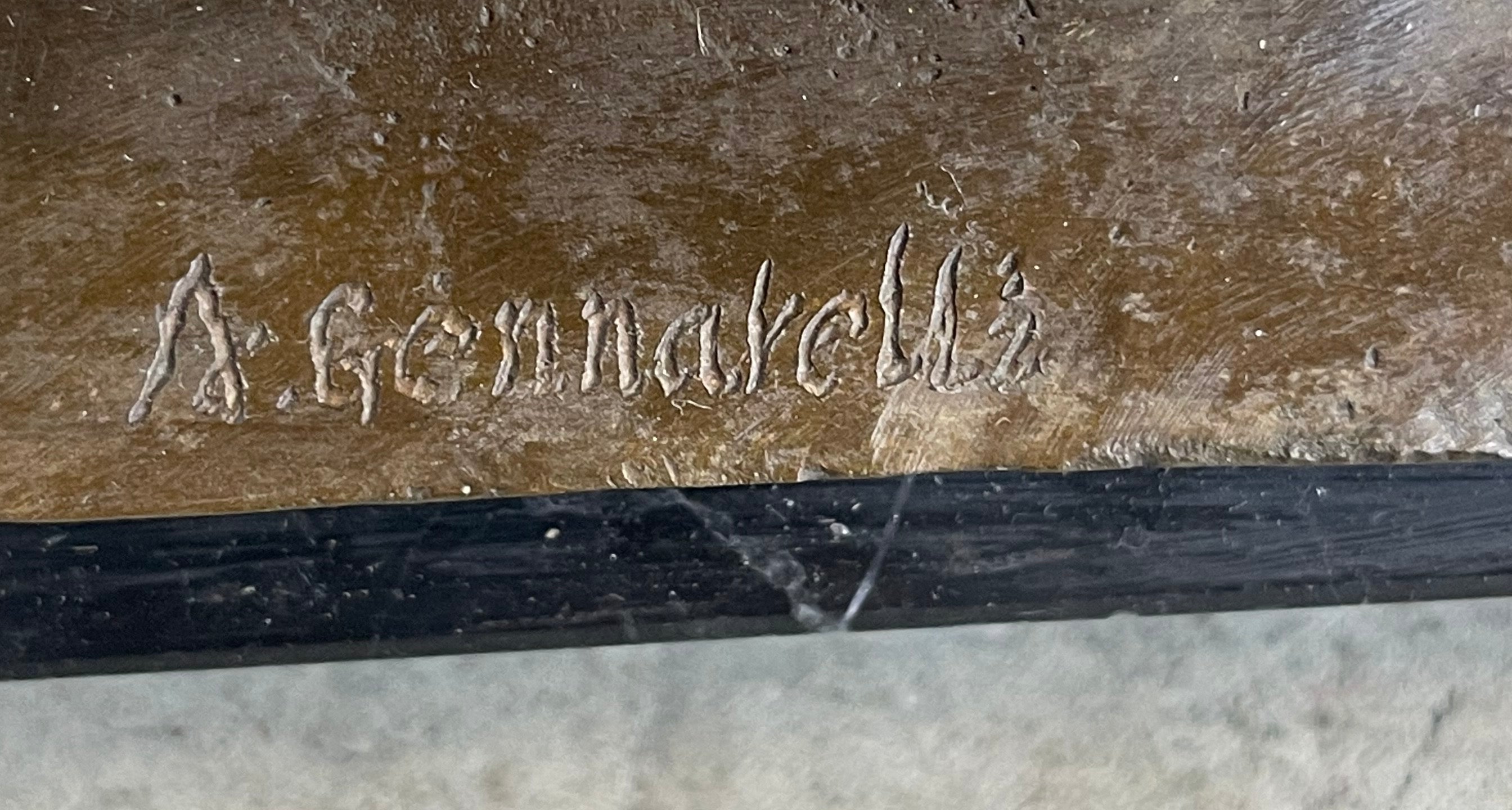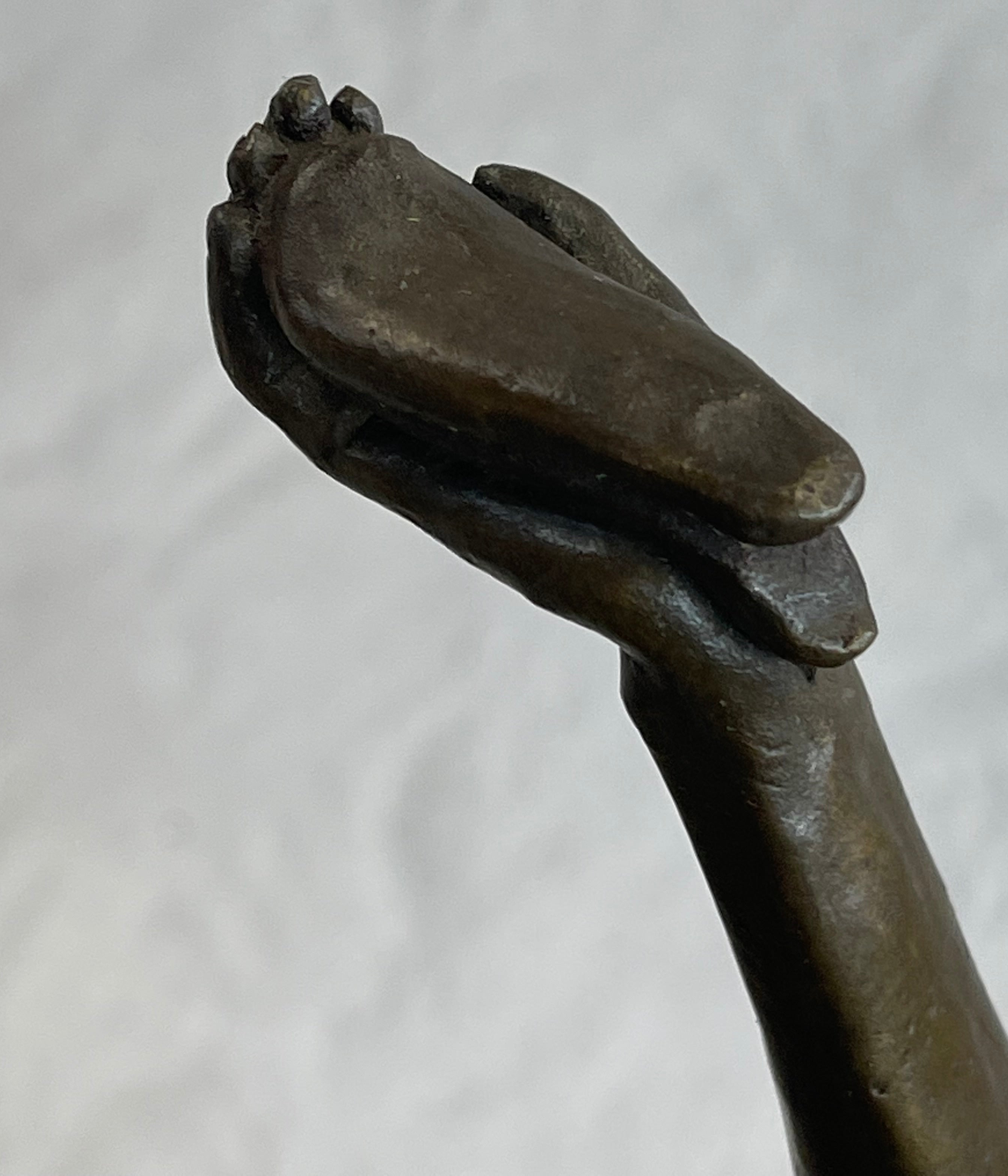 Made from the finest bronze material and meticulously cast in the foundry, "The Bird in Hand" is a true-to-original representation of A. Gennarelli's artistry. The artist's signature on the side of the bronze socket adds an artistic touch, affirming the sculpture's provenance. Whether displayed in an art exhibition or cherished in a private collection, this sculpture stands as an absolute eye-catcher. It holds appeal for bronze sculpture enthusiasts, Art Deco collectors, and anyone drawn to the captivating artistry of A. Gennarelli.Bronze Dimensions with Marble Base: Height 10" X Width 13"