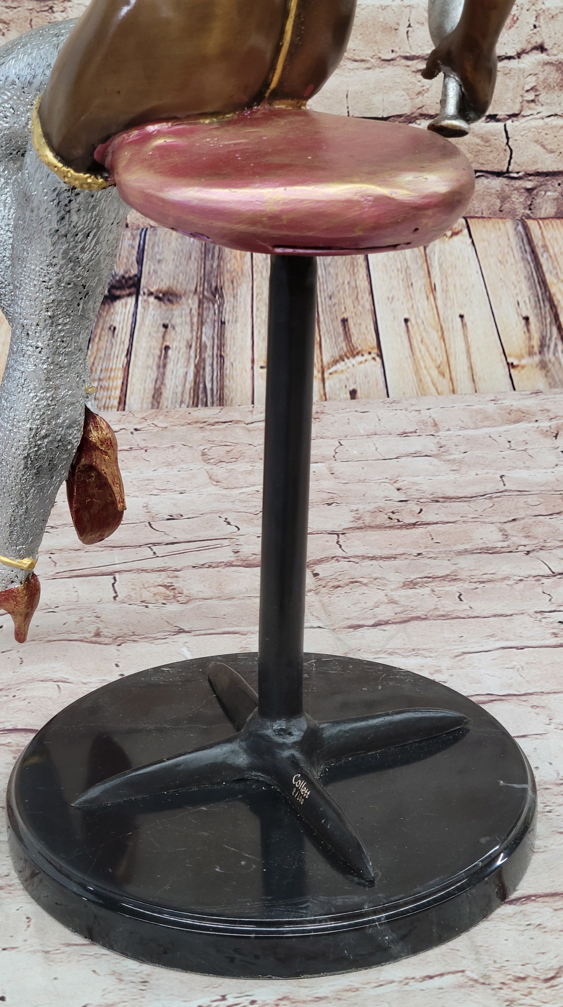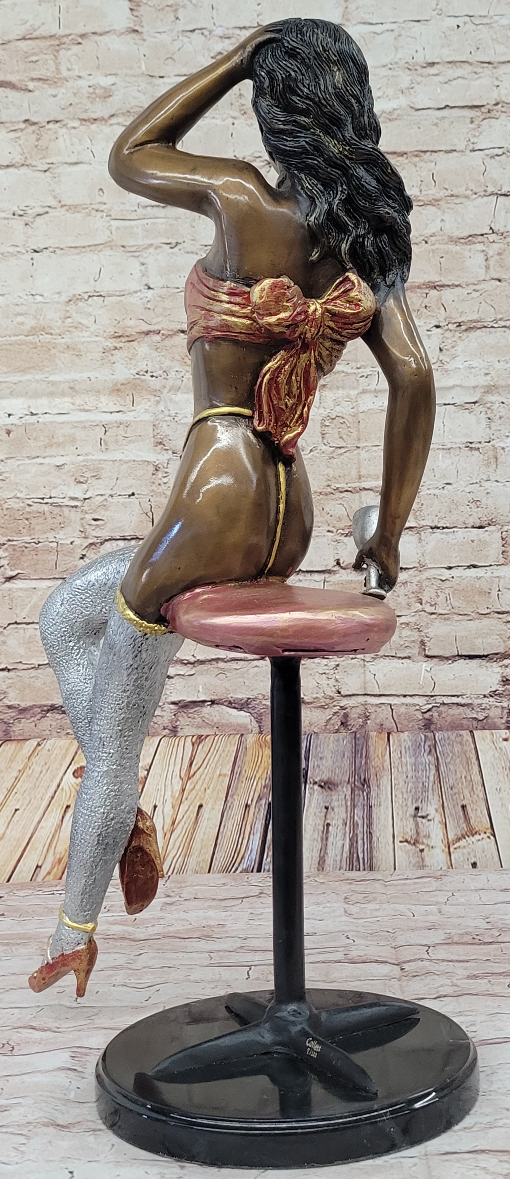 This limited edition bronze statue, signed and numbered by the artist Collett, is a true testament to the artist's vision and artistry. Its tasteful and refined depiction makes it a versatile and elegant addition to any home or art collection, infusing the space with a sense of grace and sophistication. Whether displayed as a focal point or integrated into a curated art display, this exquisite bronze statue is sure to captivate and inspire admiration from all who encounter it.Bronze Dimensions with Marble Base: Height 25" x Width 14"